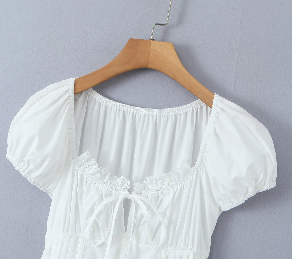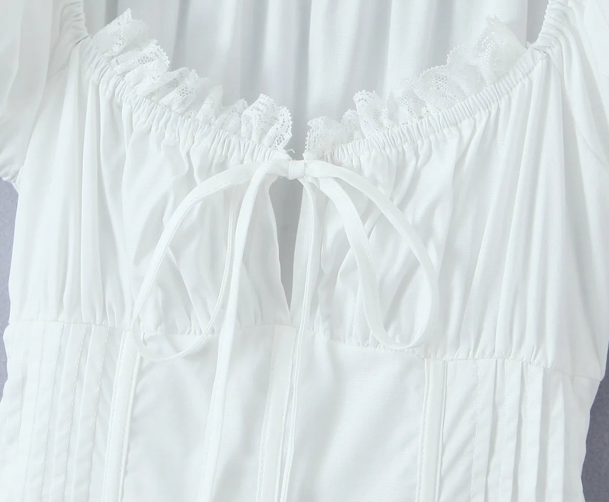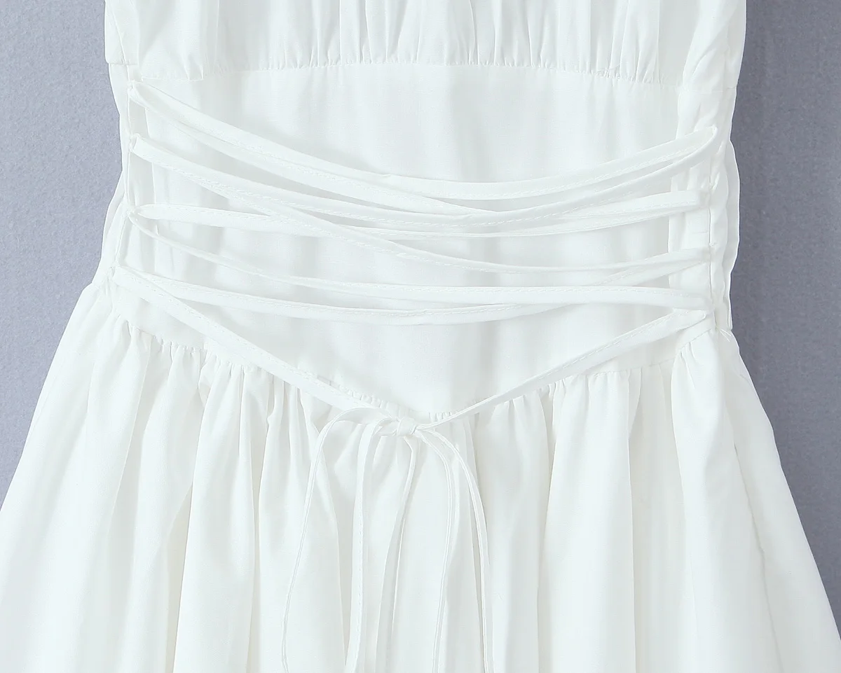 KYLETHOMASW - Sweet Women Ruched Chest Fish bow Waist Corset Style Dress Short Sleeve Cross Bandage Lacing up Back Bodycon Mini Party Robe