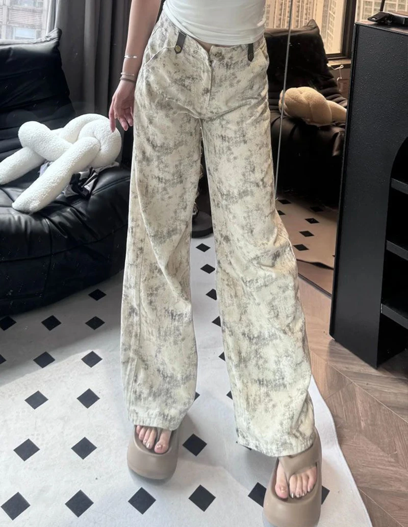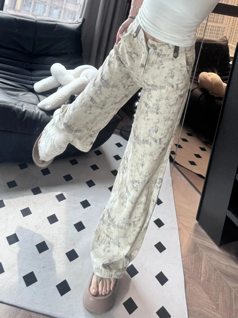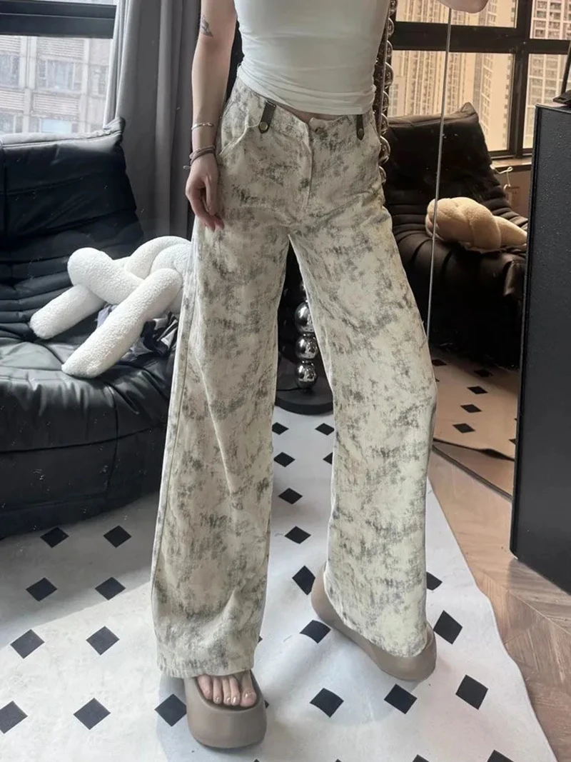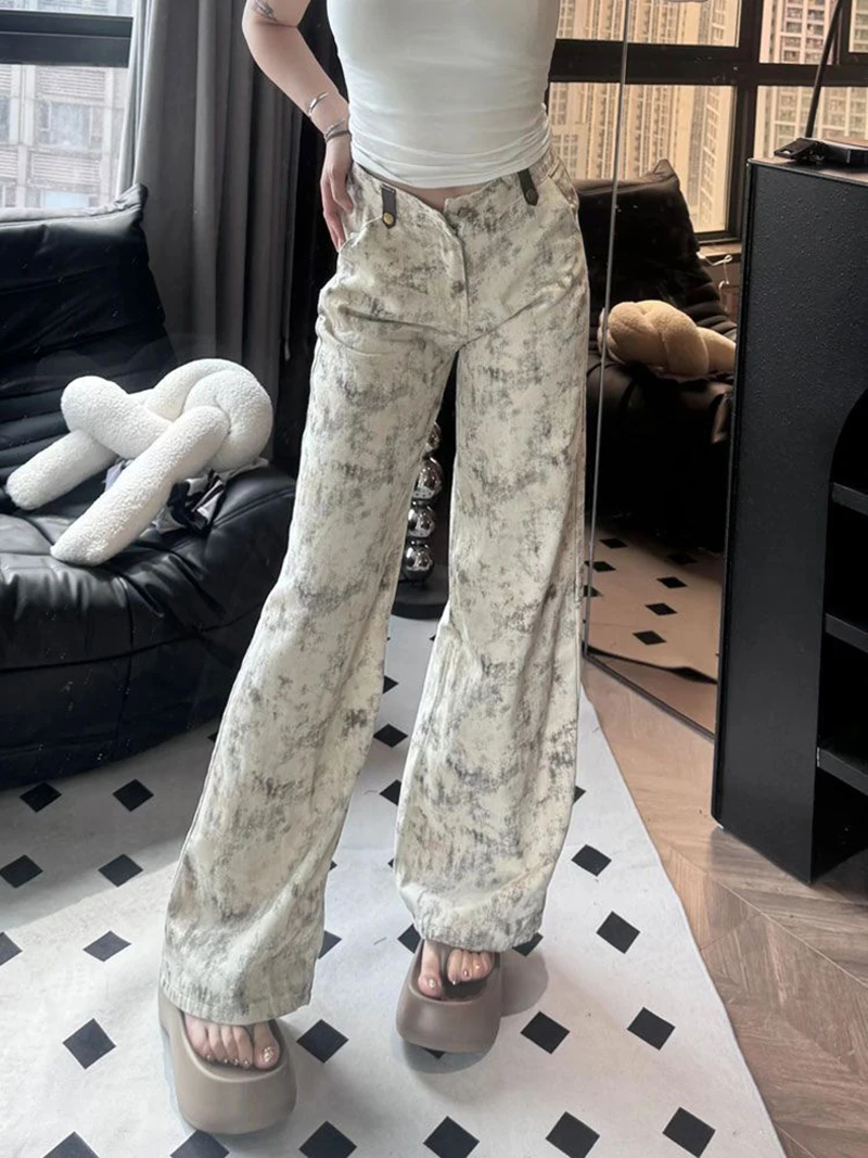 KYLETHOMASW - Vintage Tie Dye Jeans Women Y2K High Waist Casual Baggy Denim Pants American Retro Streetwear Fashion Wide Leg Trousers New