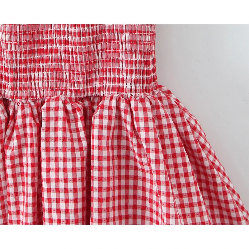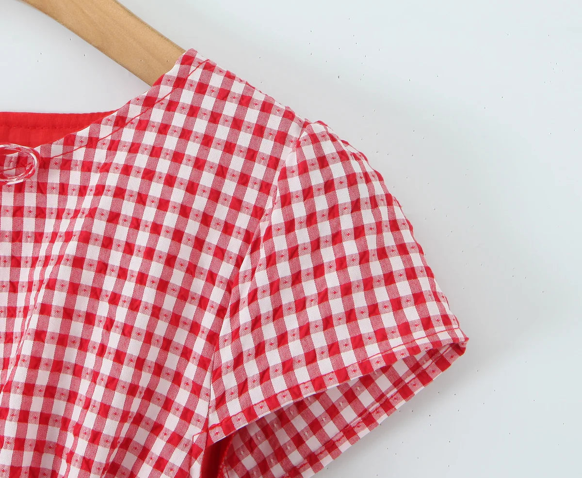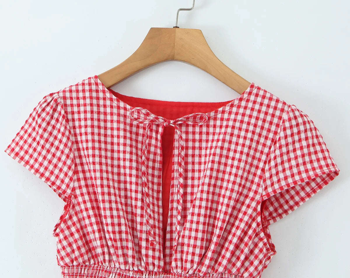 KYLETHOMASW - Women O Neck Short Sleeve A-line Slim Plaid Mini Dresses Casual Holiday Summer Dress 2025 Robe