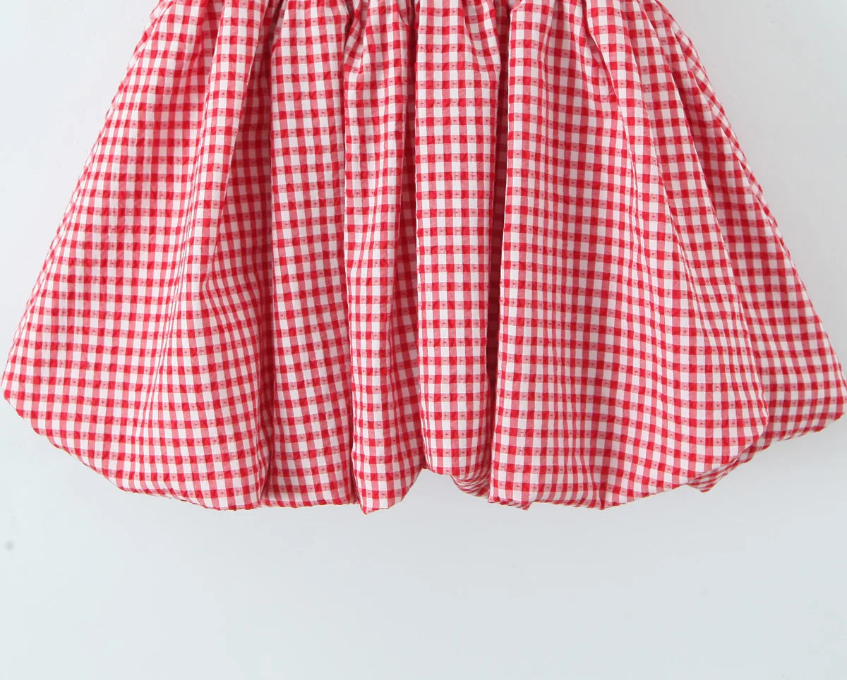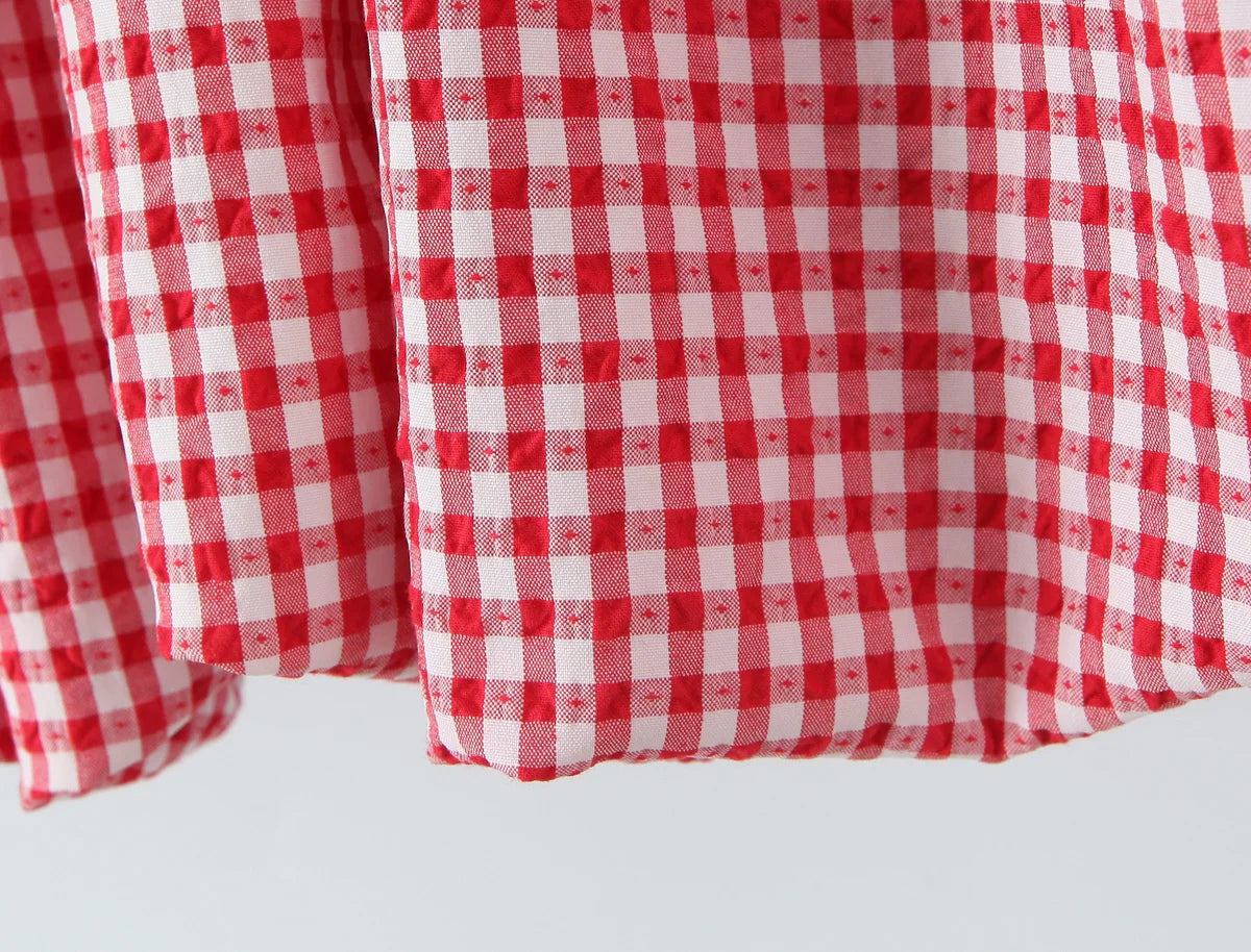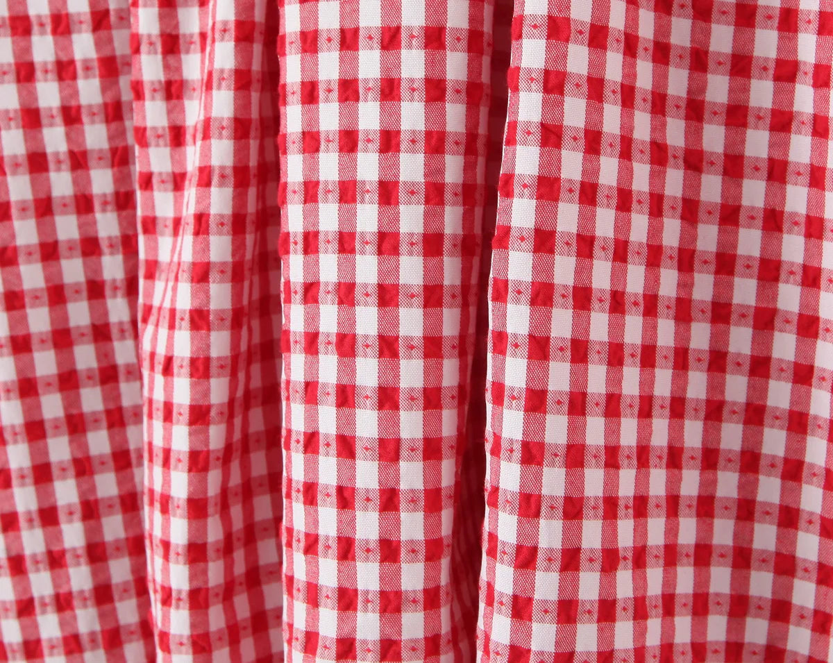 KYLETHOMASW - Women O Neck Short Sleeve A-line Slim Plaid Mini Dresses Casual Holiday Summer Dress 2025 Robe