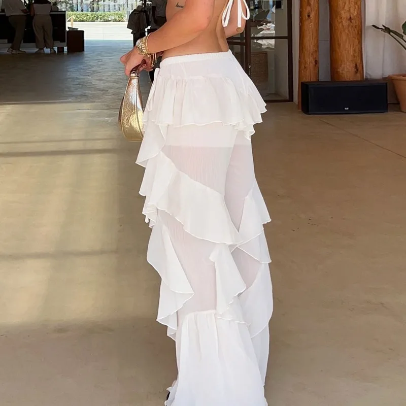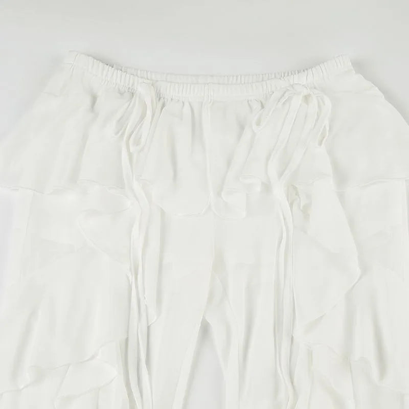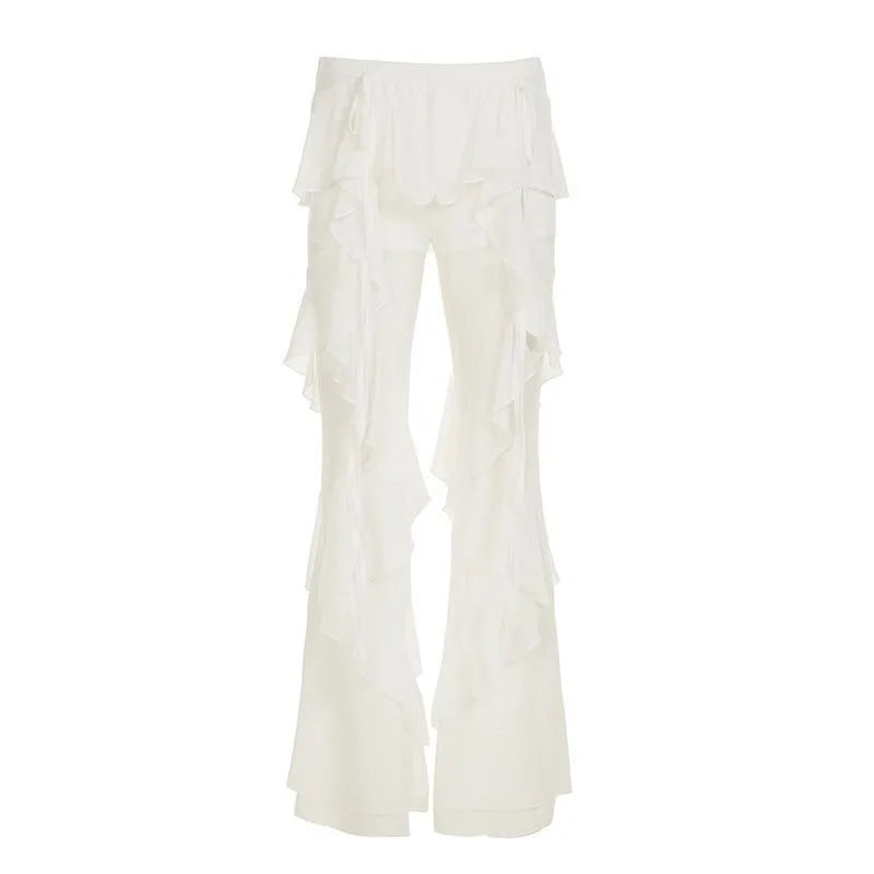 KYLETHOMASW - Women Pants Ruffles Patchwork Meash Bandage Slim Irregular Sexy Flare Long Trouser Streetwear Ladies Casual Jogger