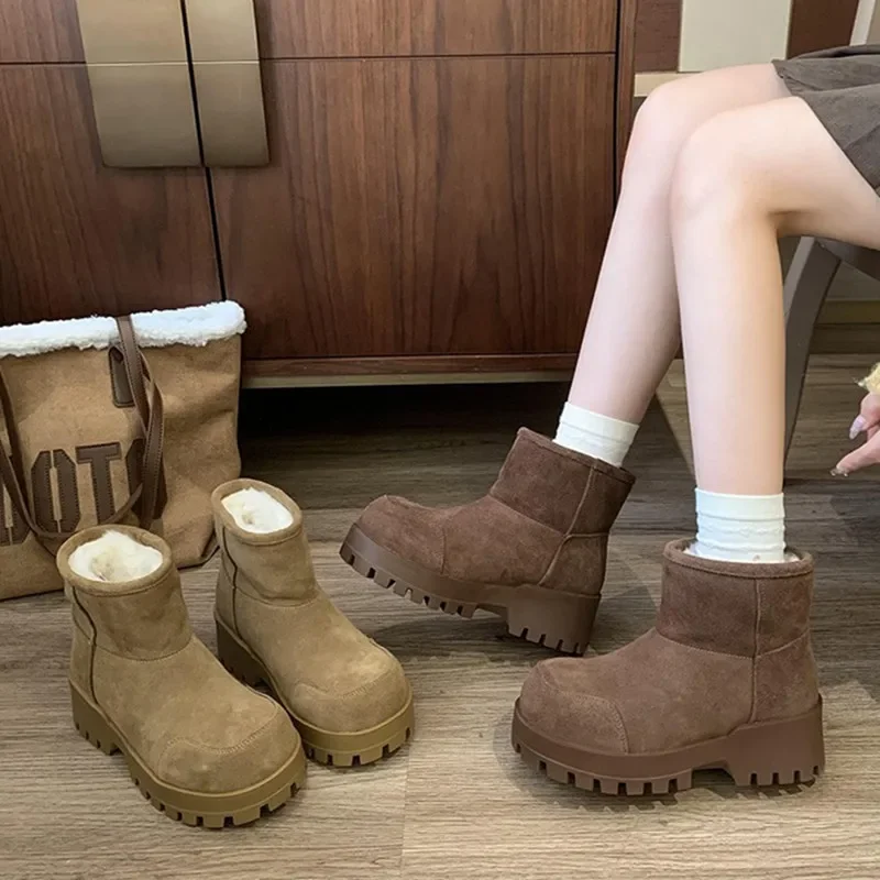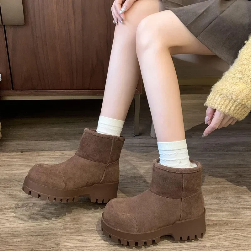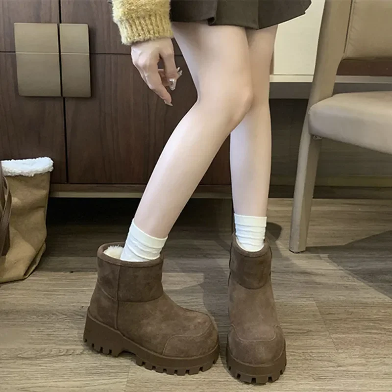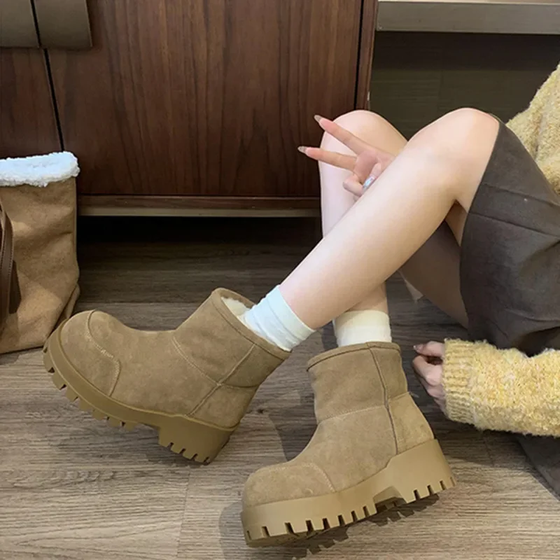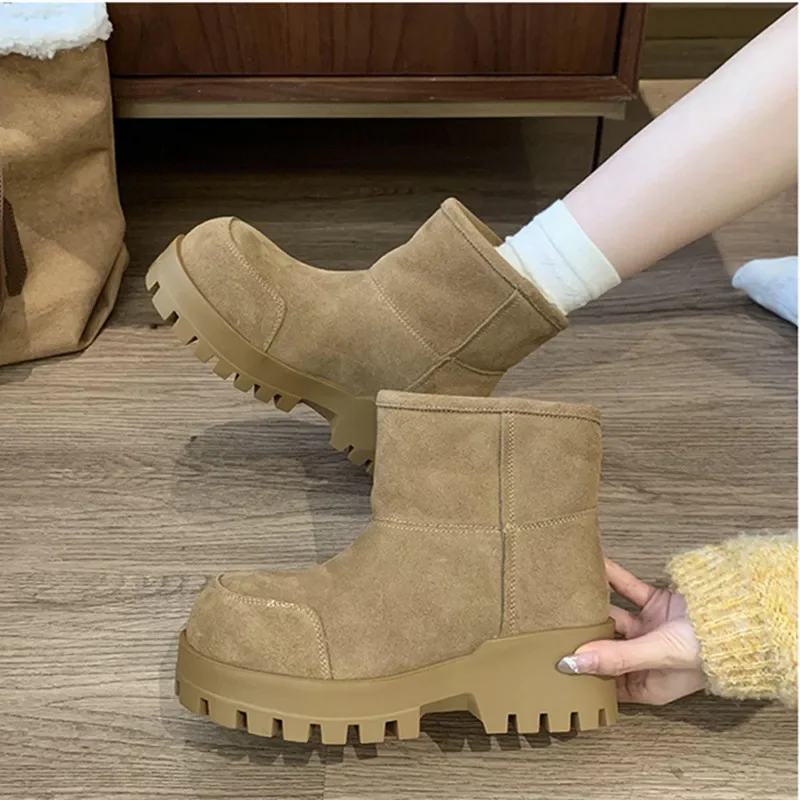 KYLETHOMASW - Women Winter Ankle Boots Thick Bottom Non-slip Platform Boots Faux Suede Plush Warm Waterproof Snow Boots for Women Botas Mujer