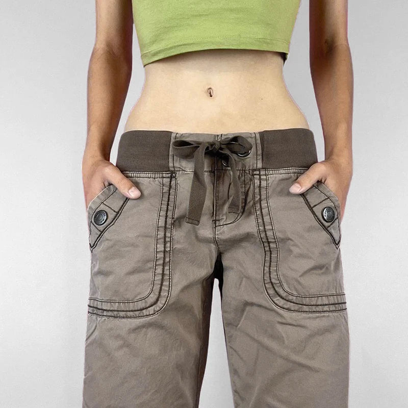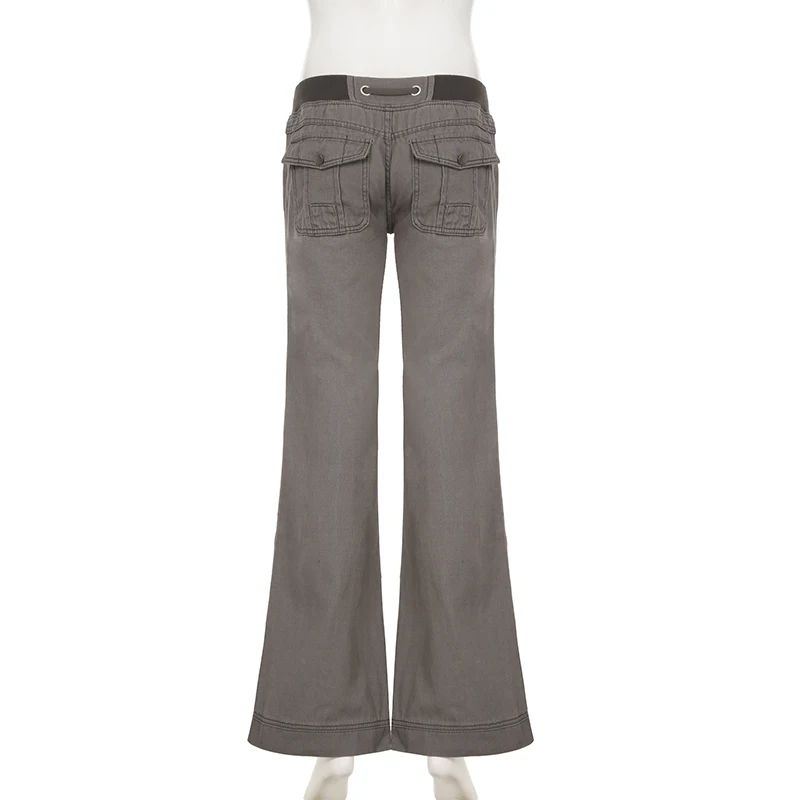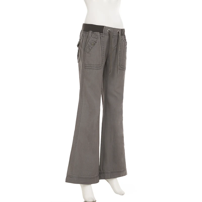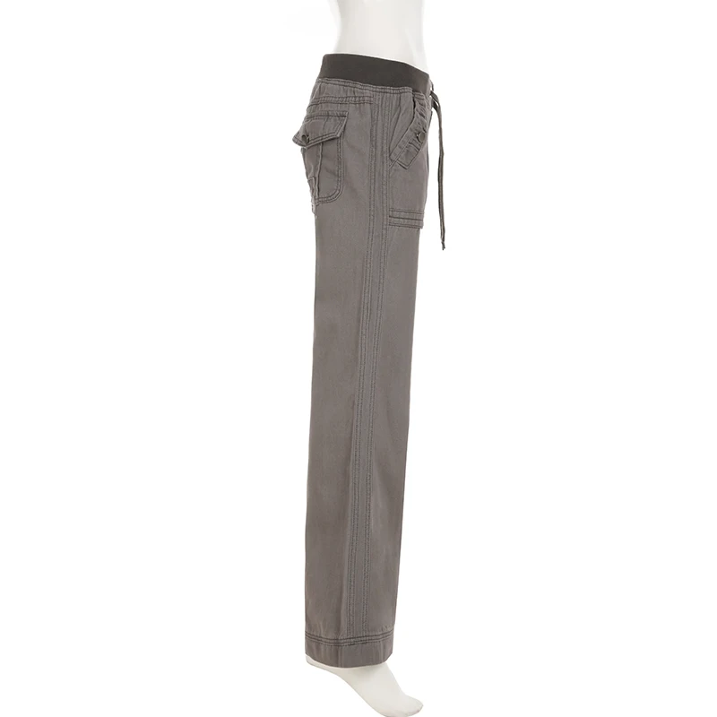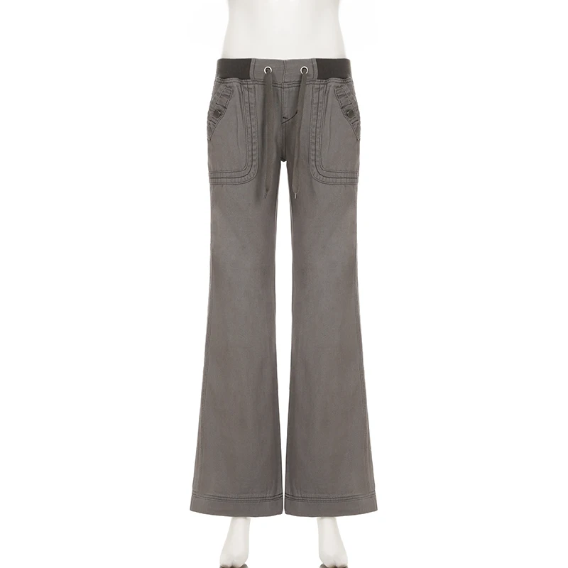 KYLETHOMASW - Women's Retro Low Rise Pants Streetwear Lace-Up Patchwork Loose Chic Trousers Harajuku Straight Leg Casual Pants Korean Fashion