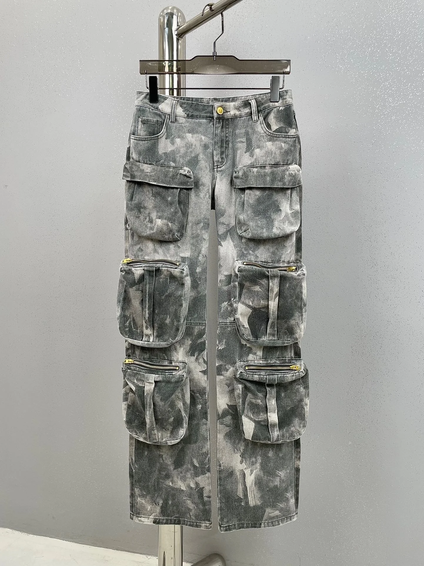 Kylethomasw Fashion Women's Jeans High Waist Multi Pocket Loose Streetwear Camouflage Denim Cargo Pants Summer New