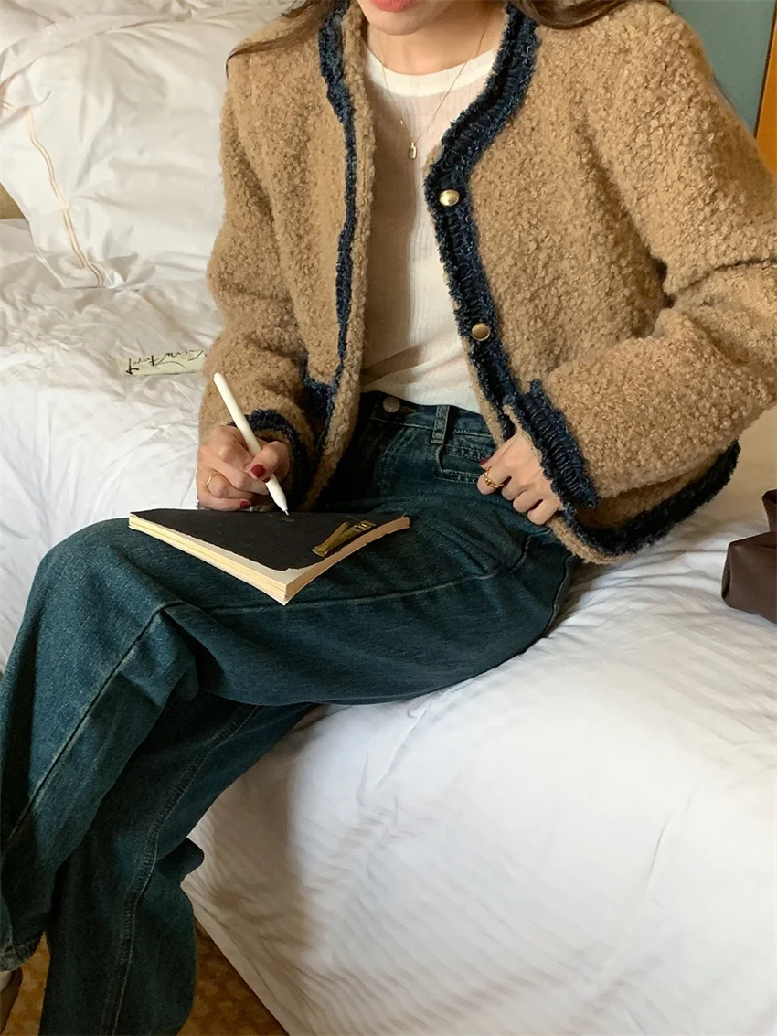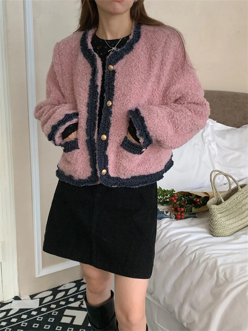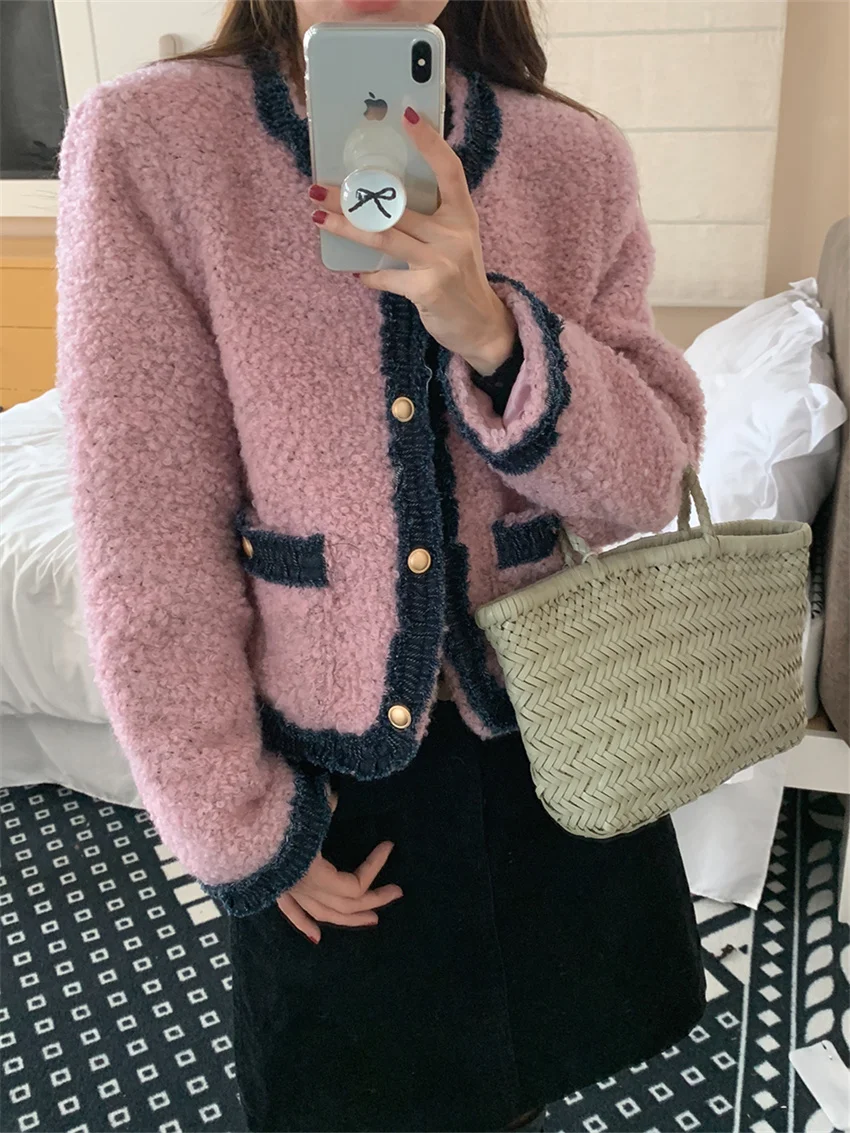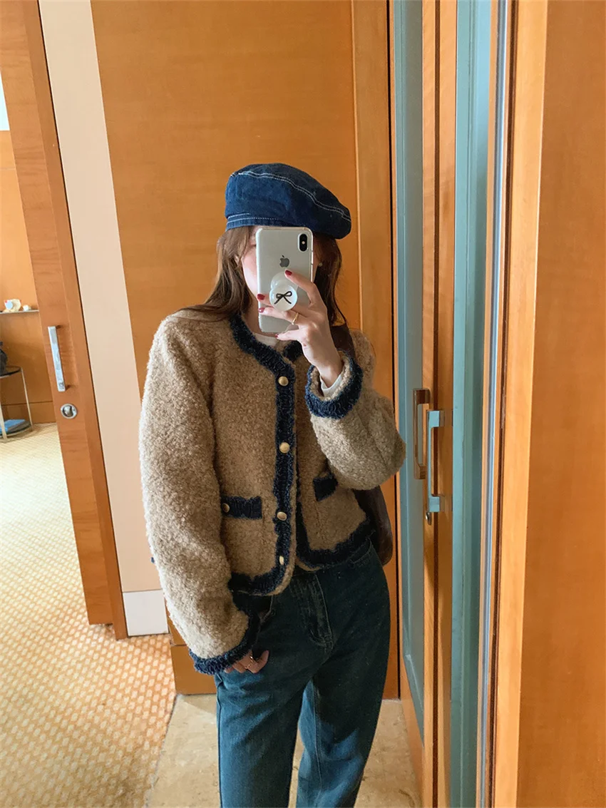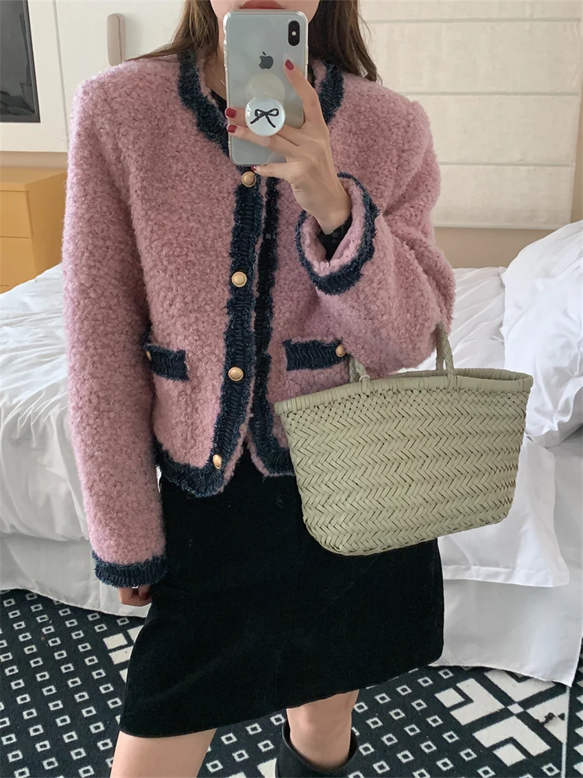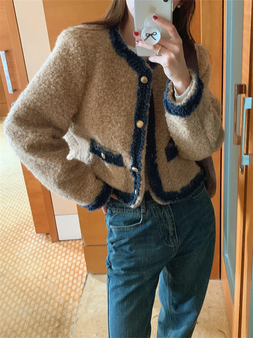 KYLETHOMASW - Office Wear Coats Women Lamb Wool Chic Gentle Winter Elegant Lady Slim New Full Sleeve Warm Casual OL Loose