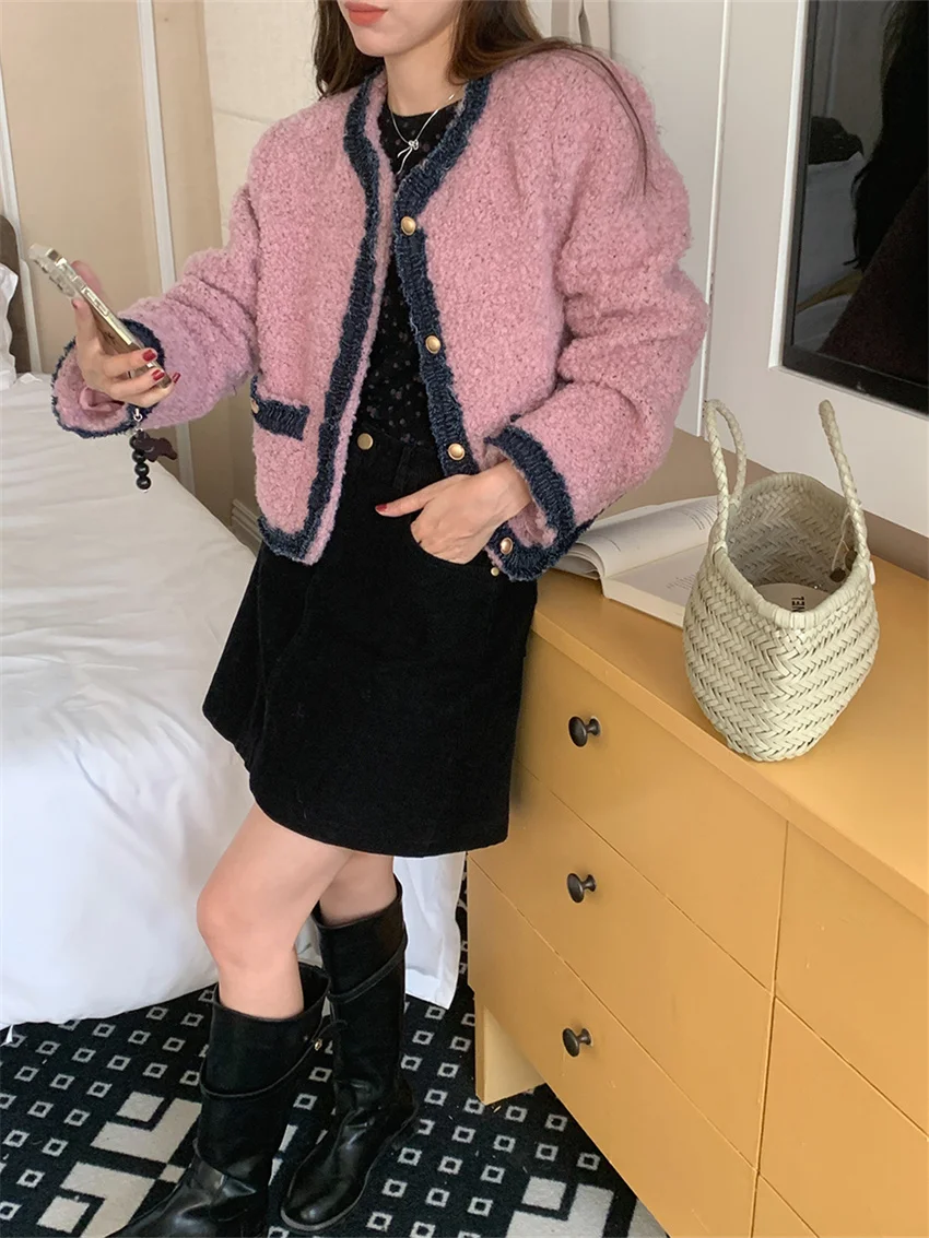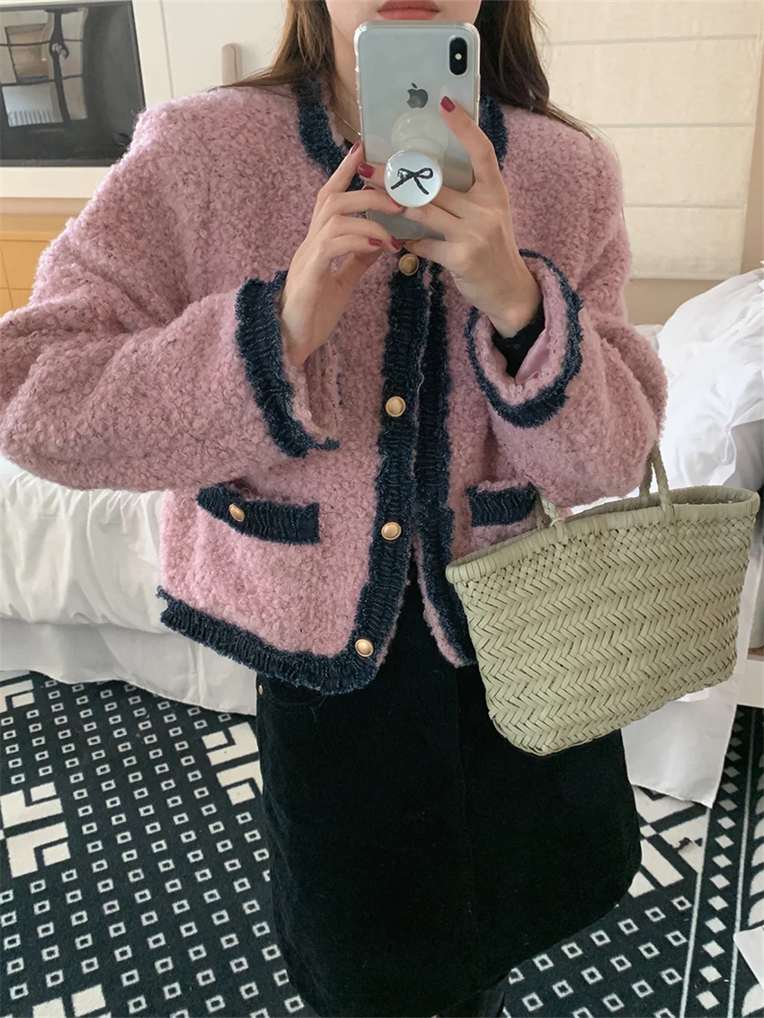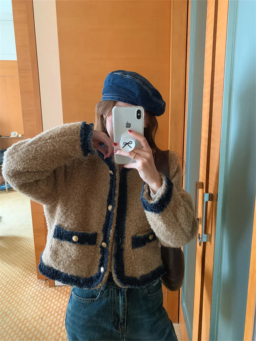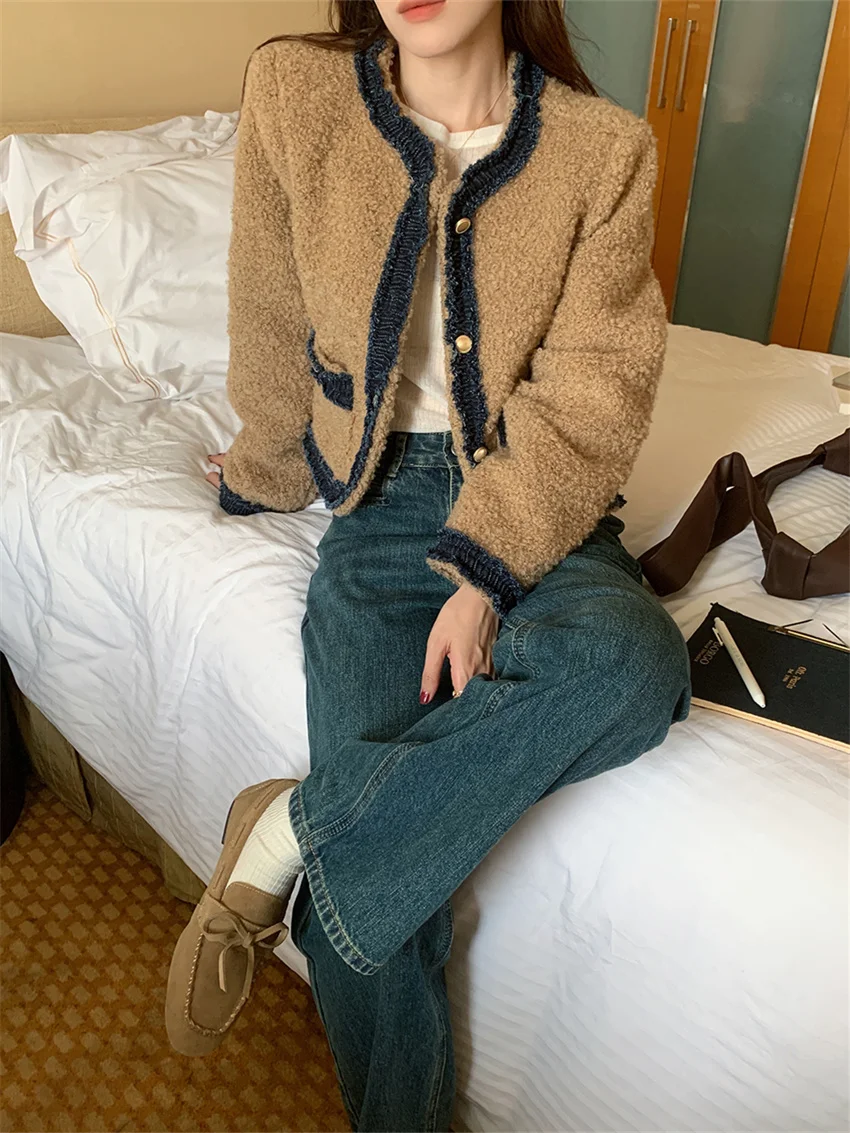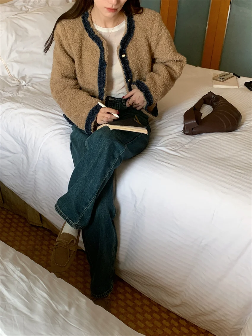 KYLETHOMASW - Office Wear Coats Women Lamb Wool Chic Gentle Winter Elegant Lady Slim New Full Sleeve Warm Casual OL Loose