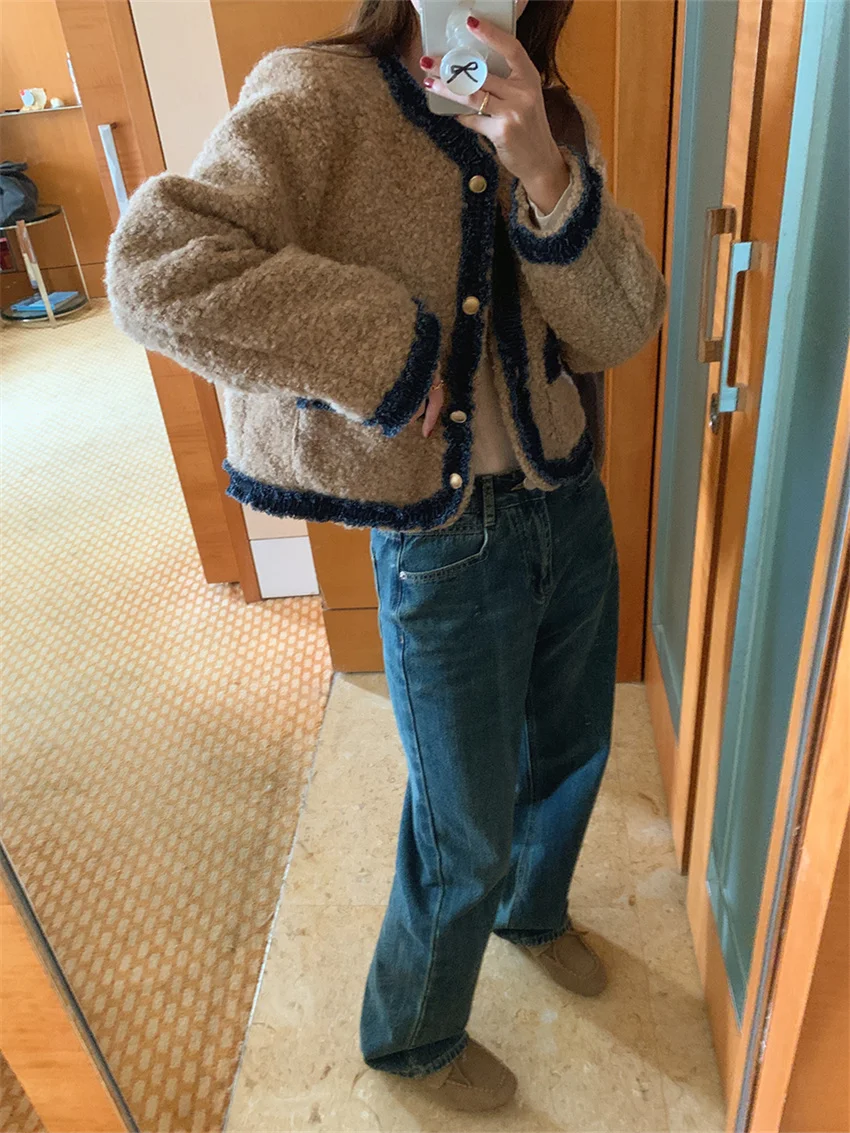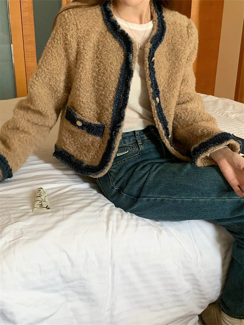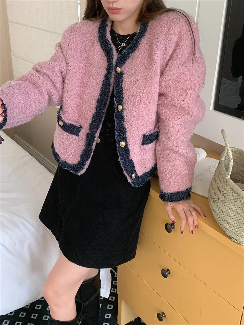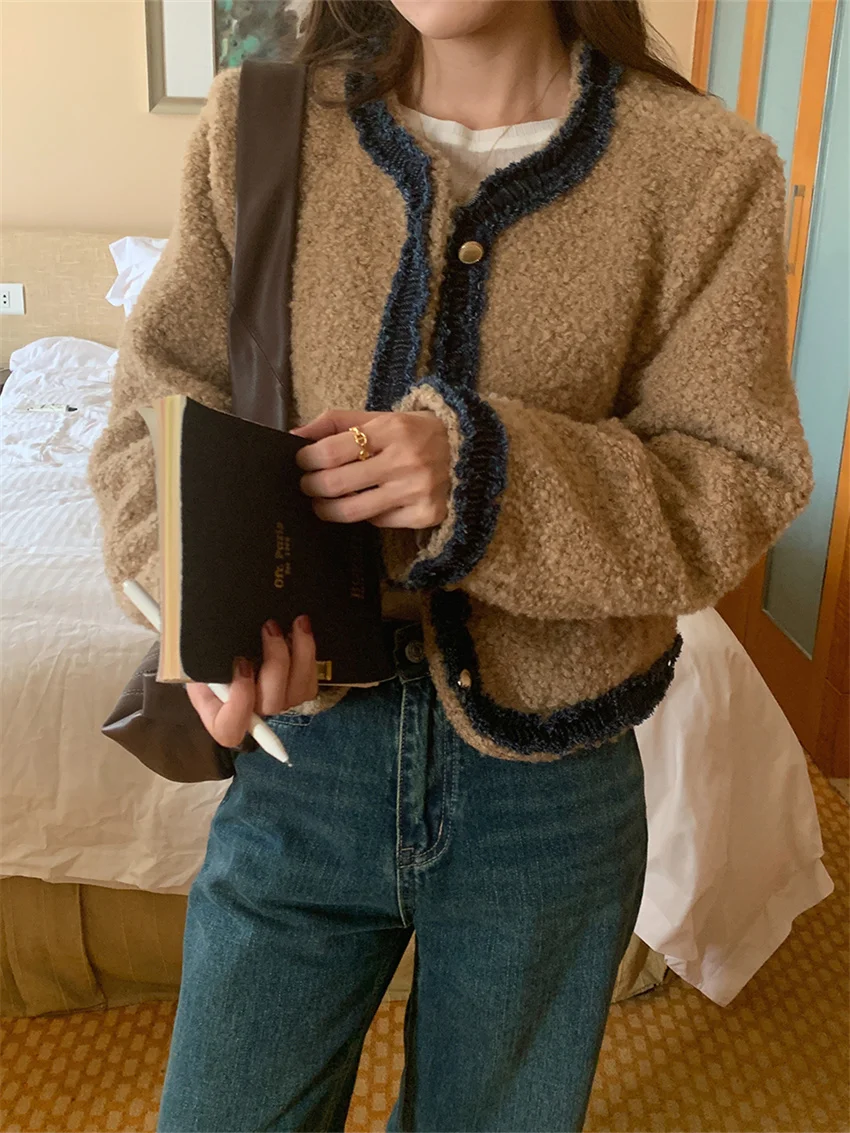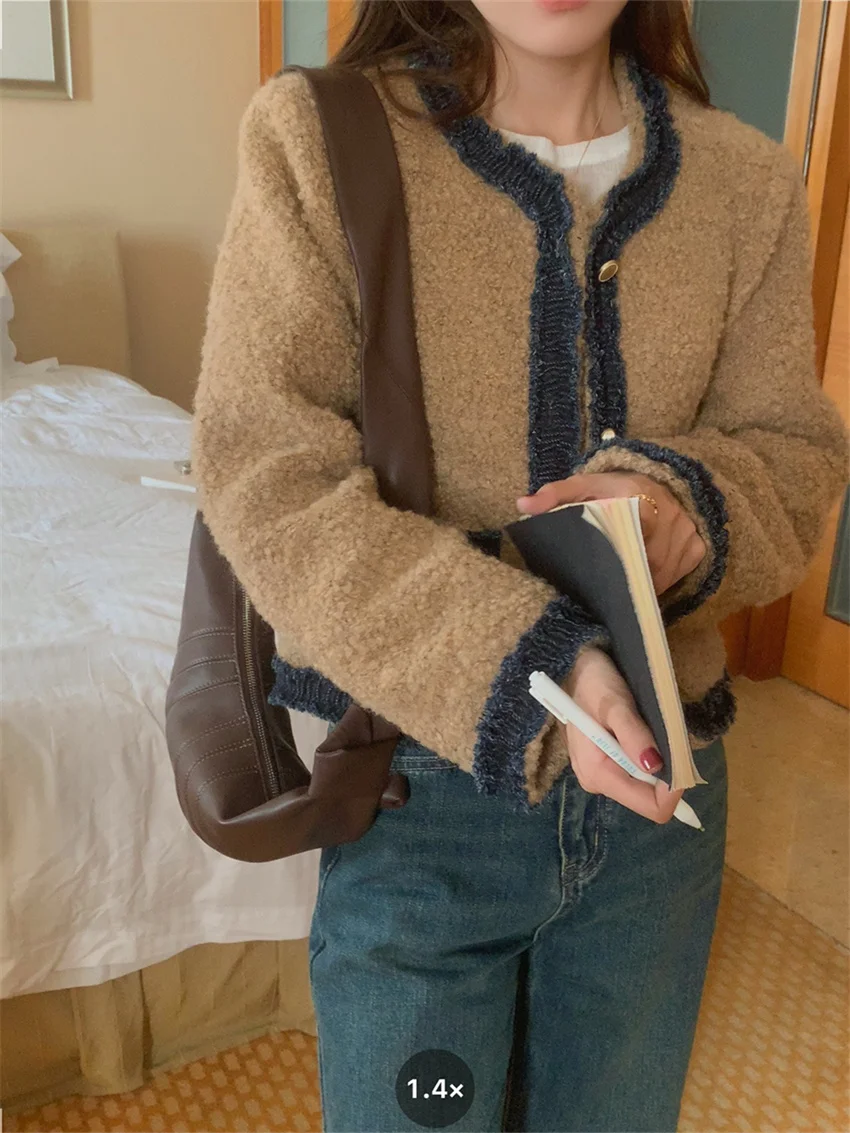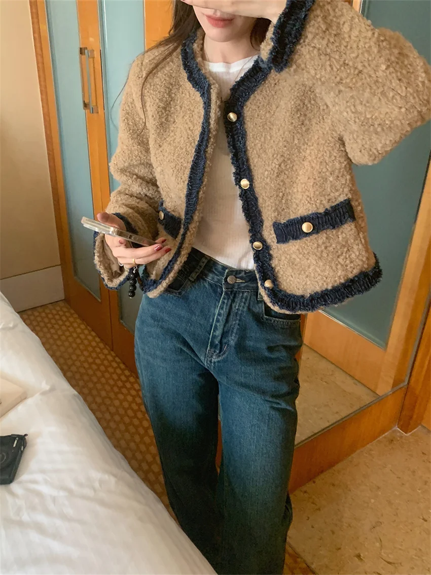 KYLETHOMASW - Office Wear Coats Women Lamb Wool Chic Gentle Winter Elegant Lady Slim New Full Sleeve Warm Casual OL Loose
