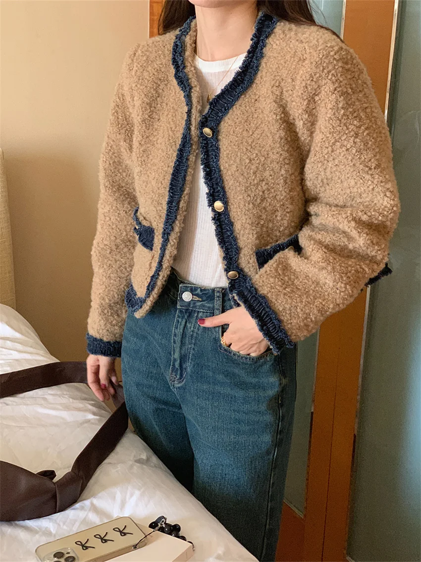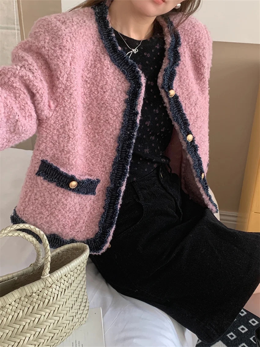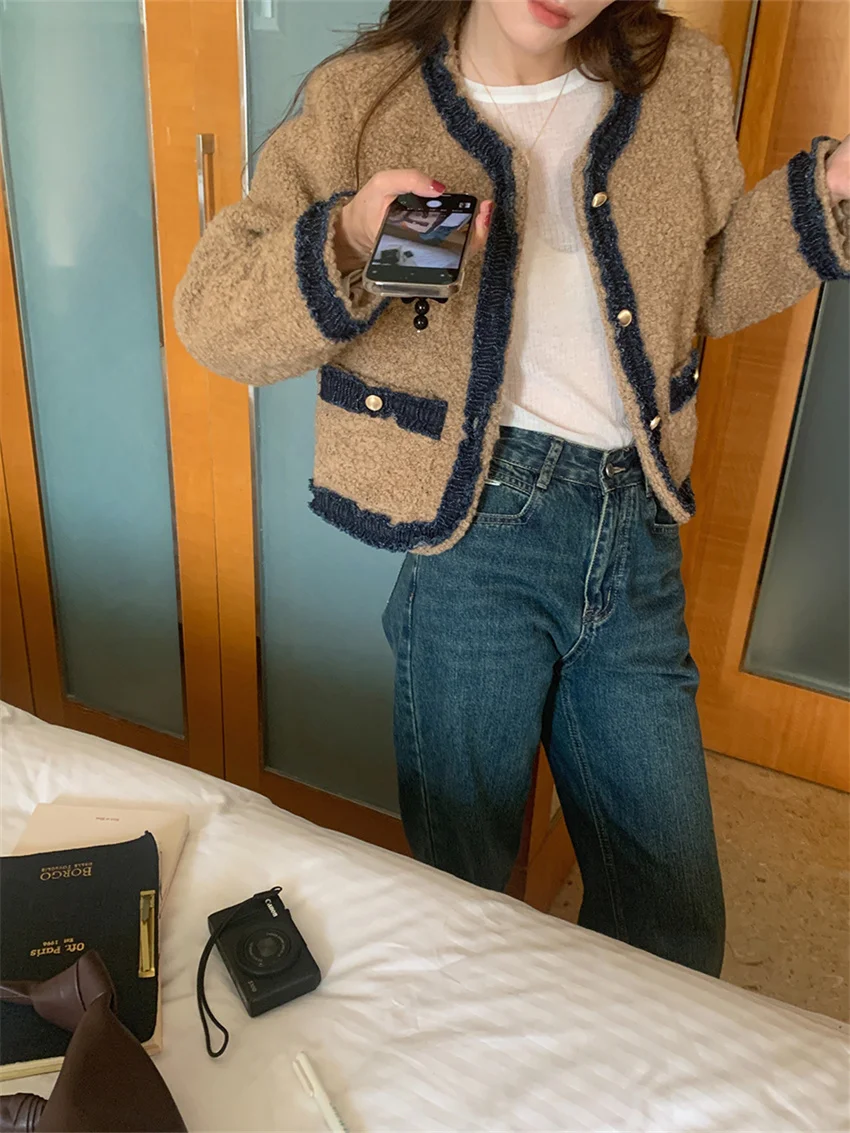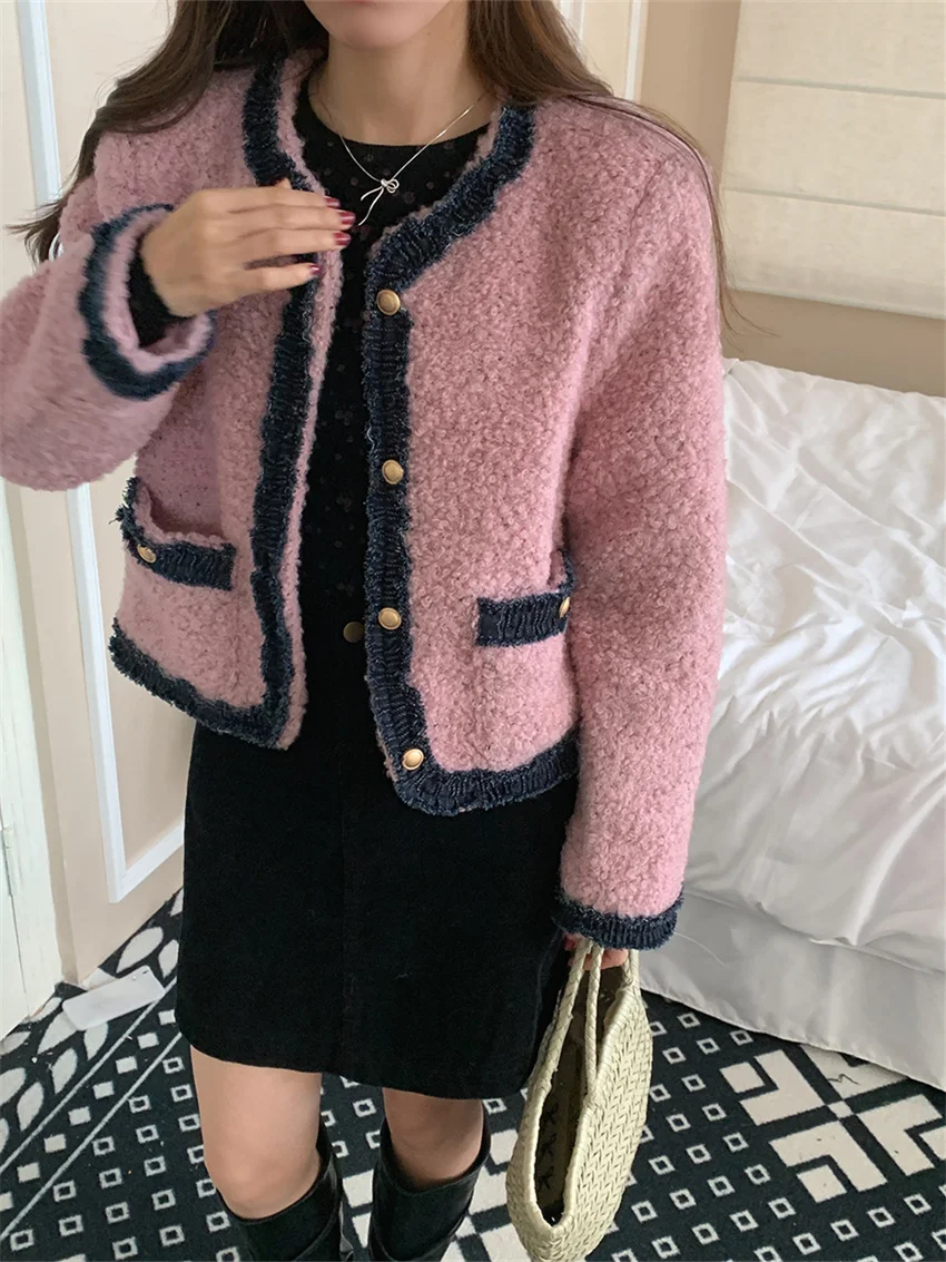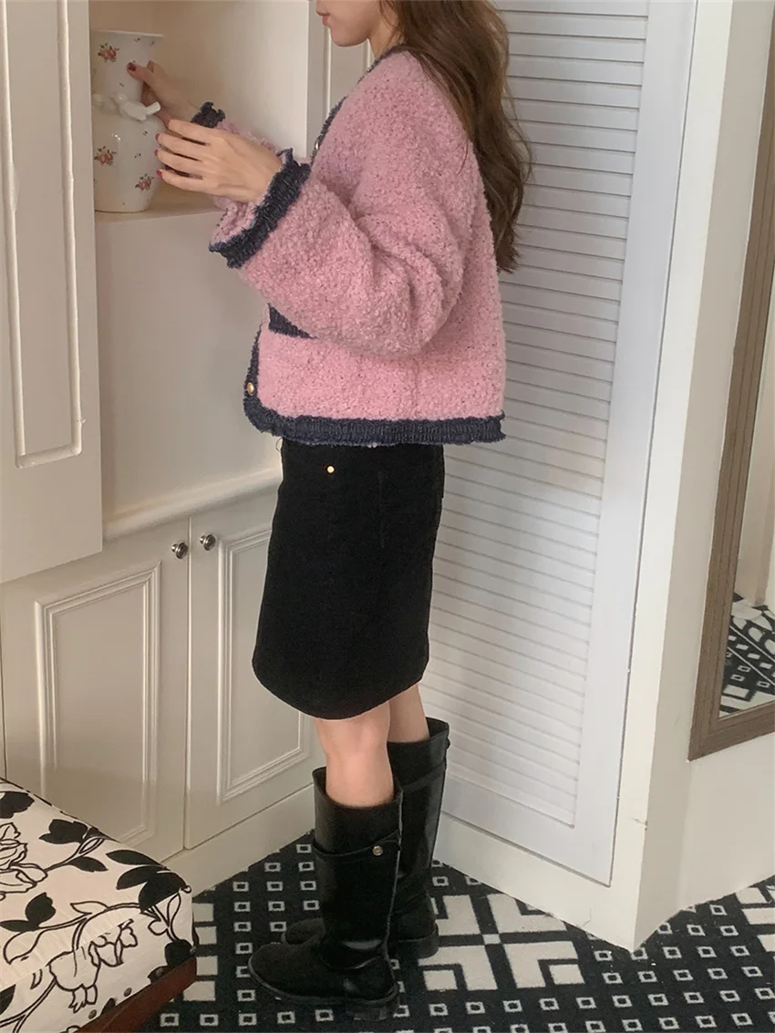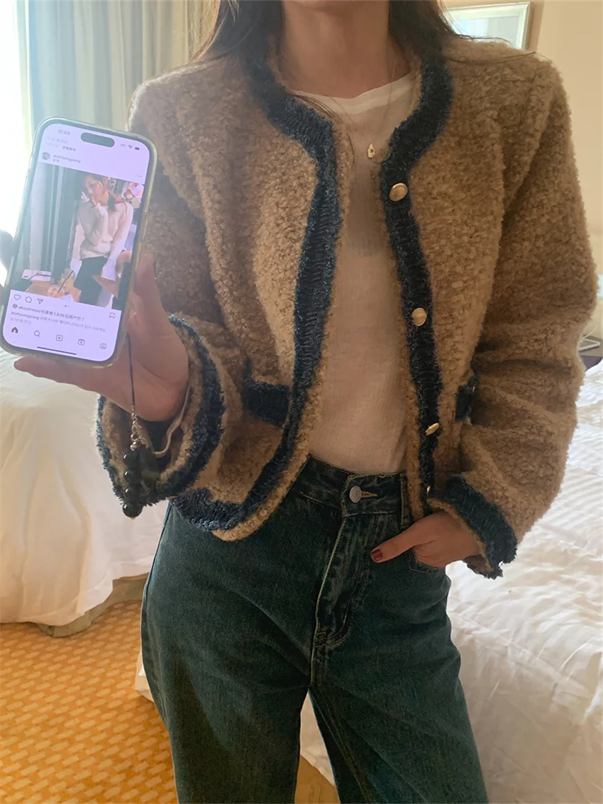 KYLETHOMASW - Office Wear Coats Women Lamb Wool Chic Gentle Winter Elegant Lady Slim New Full Sleeve Warm Casual OL Loose