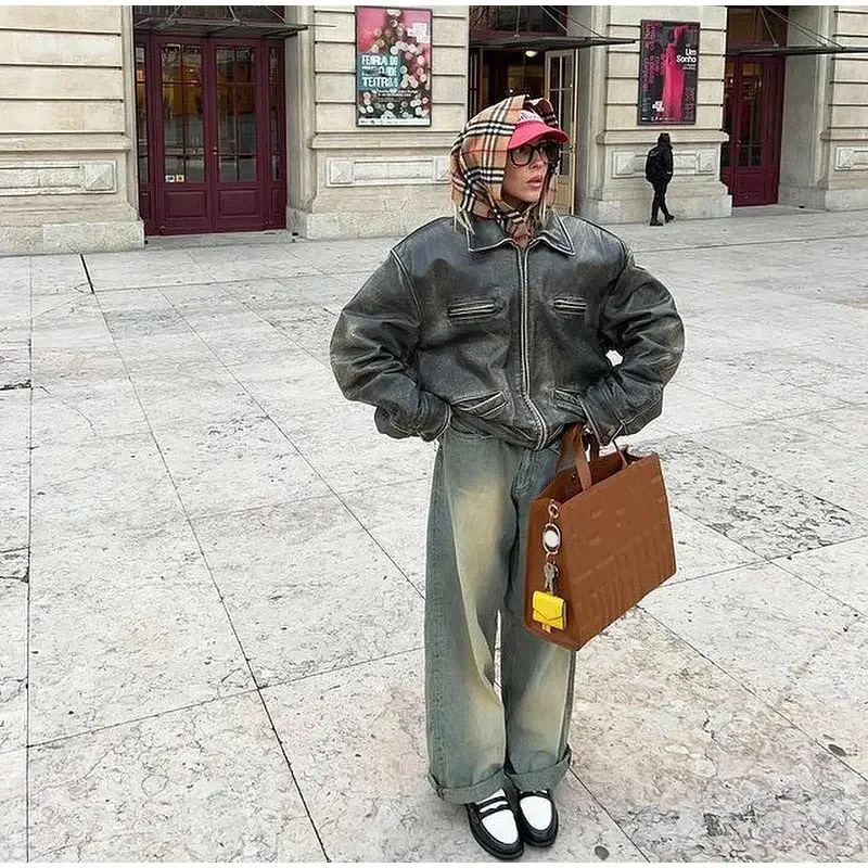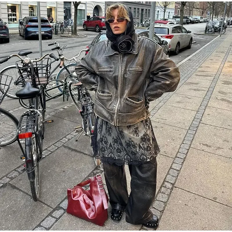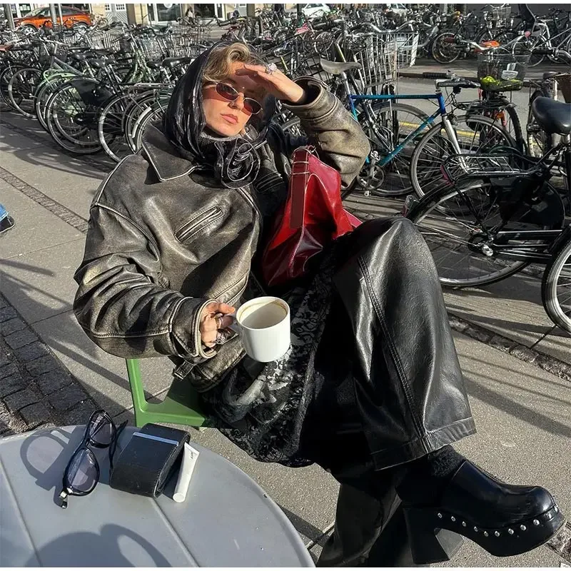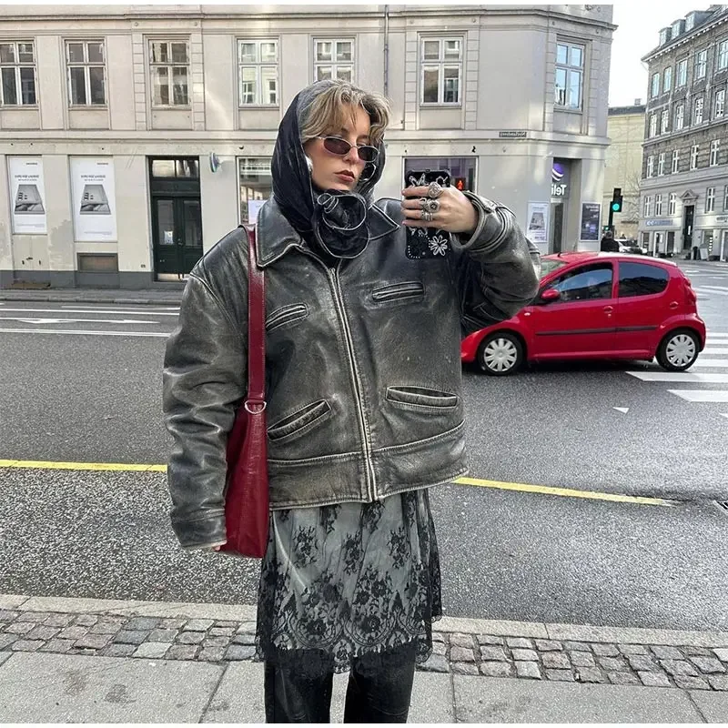Kylethomasw - Retro Pocket Lapel Zipper Long Sleeved Coats Chic Women Distress Buttoned Short Jacket 2024 Autumn High Street Ladies Outerwear