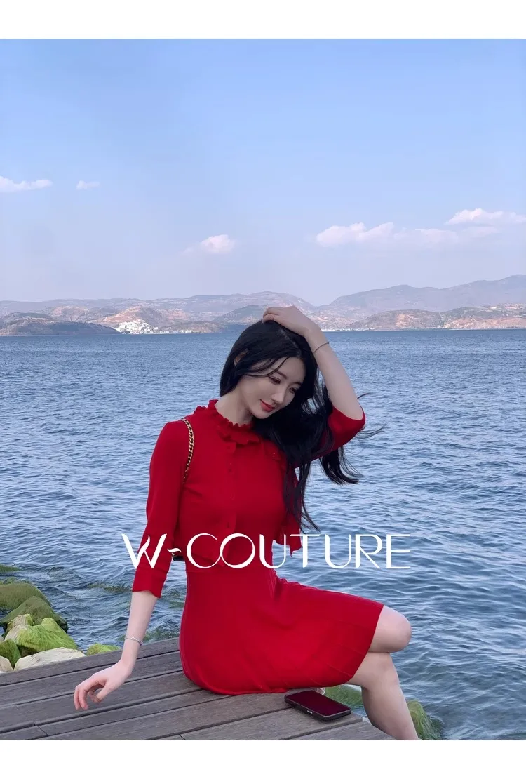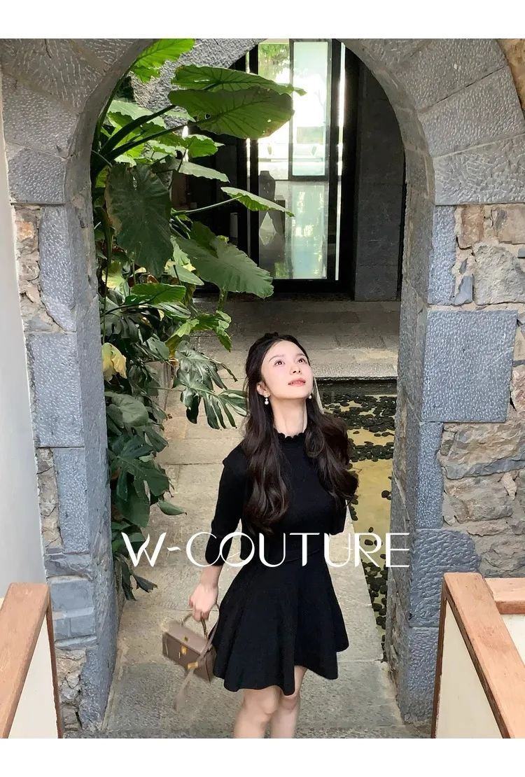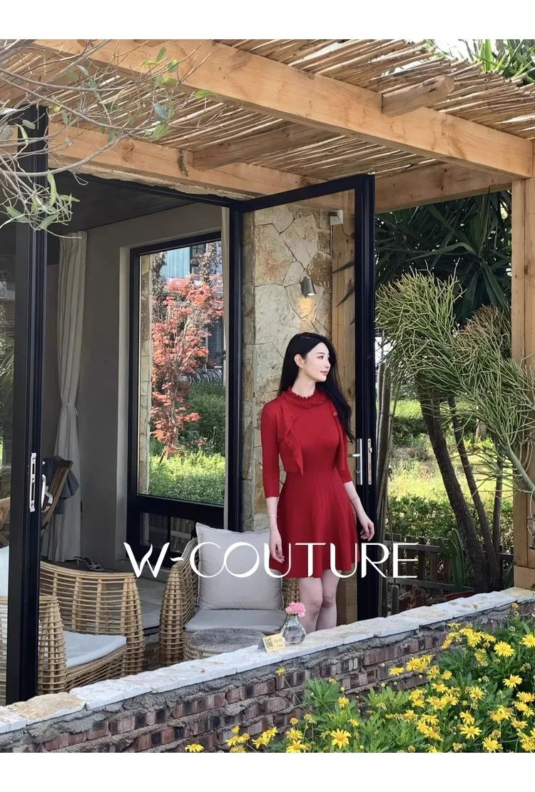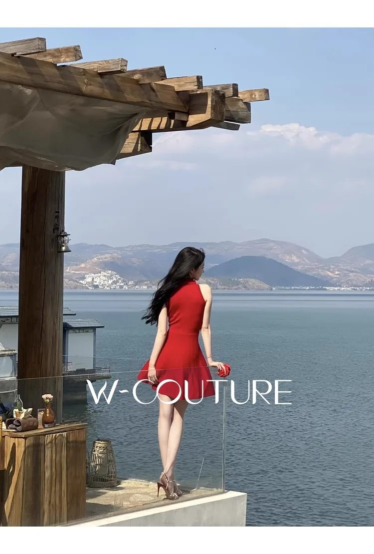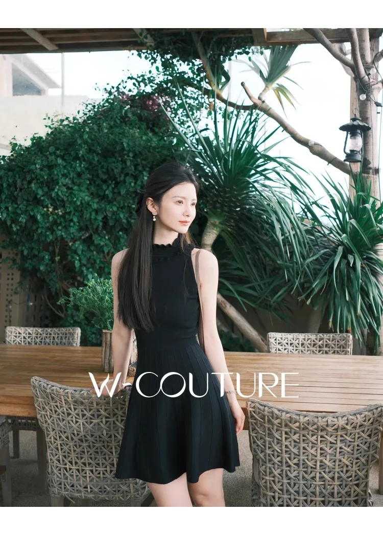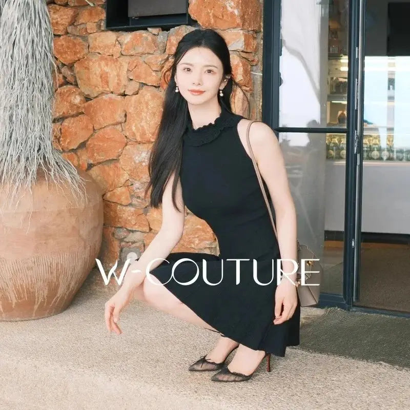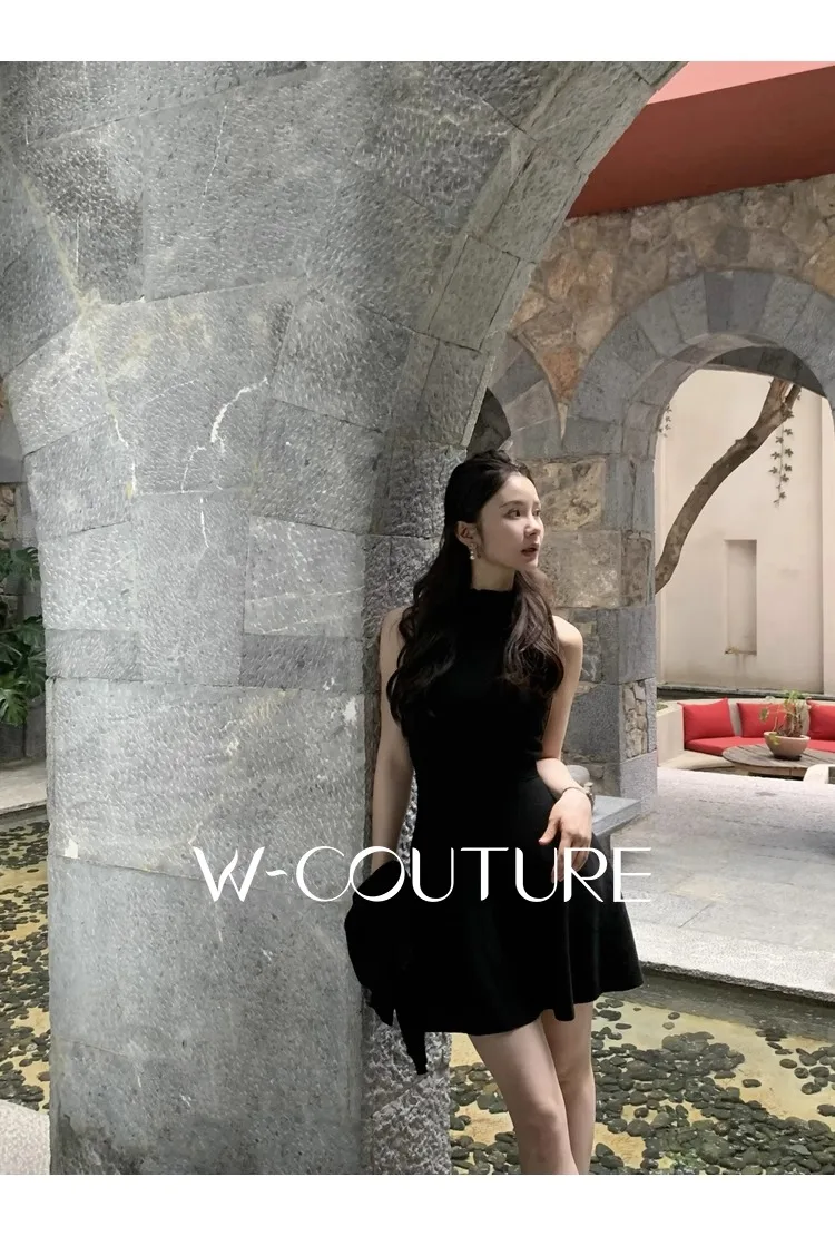 French Halter Neck Sleeveless Knitted Dress Summer Elegant Ruffle Slim Mini Dresses Women Solid Color A-Line Pleated Dress A026