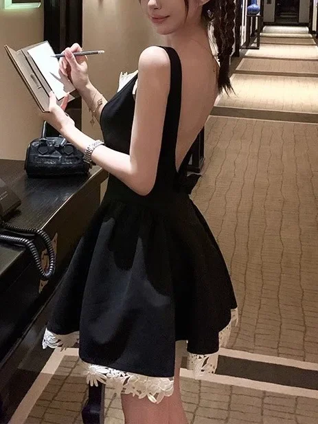 KYLETHOMASW - Black Strapless Slim Fit Women's Dress Sexy Backless Gown Elegant Minimalist Design Perfect for Spring Occasions