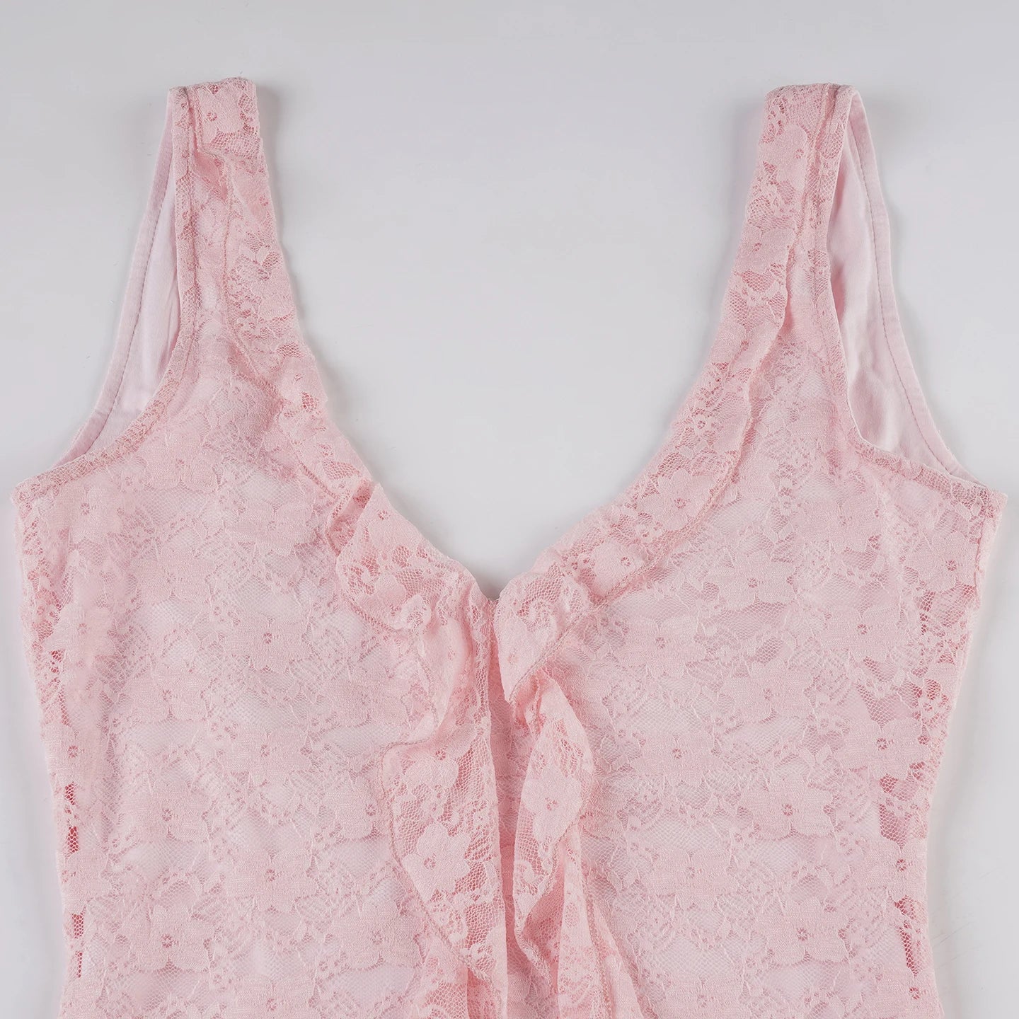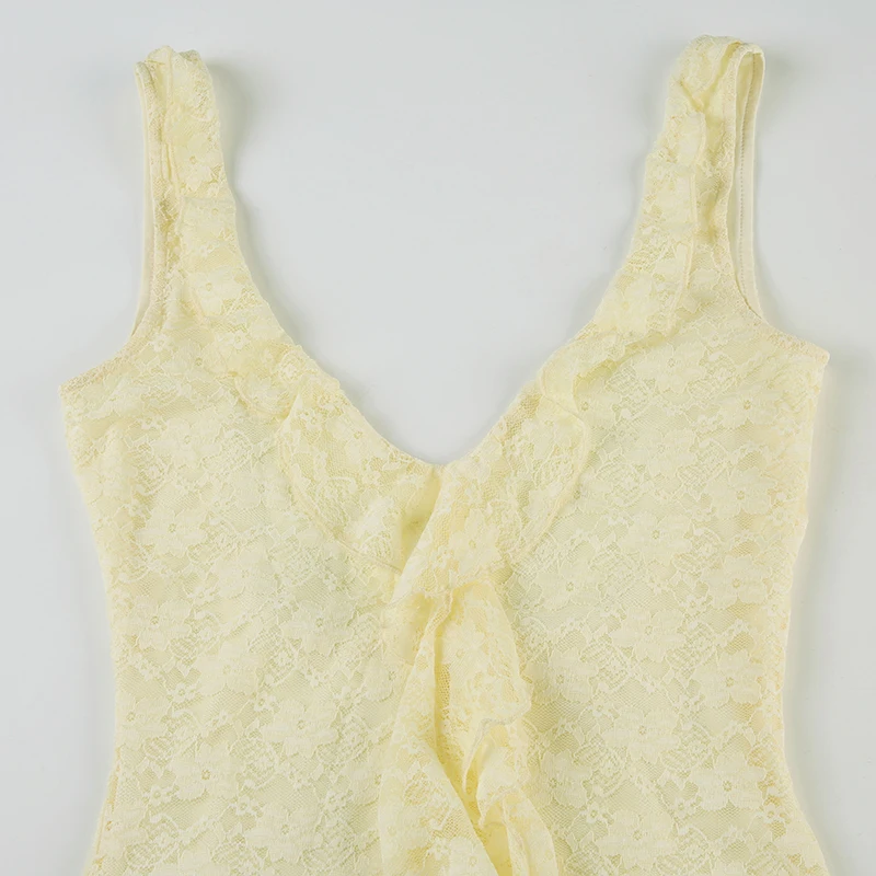 KYLETHOMASW - Fashion Lace Ruffly Skinny Sexy Backless Women Dresses Chic Summer Hottie Mini Camisole Dresses