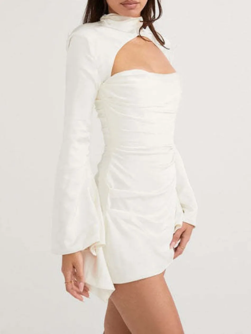 KYLETHOMASW - Fashion Sexy Gothic Bell Sleeves A-line Dress Women Cyber Punk Y2k Metal Buckle Hollow Out Halter Long Sleeve Bodycon Dresses