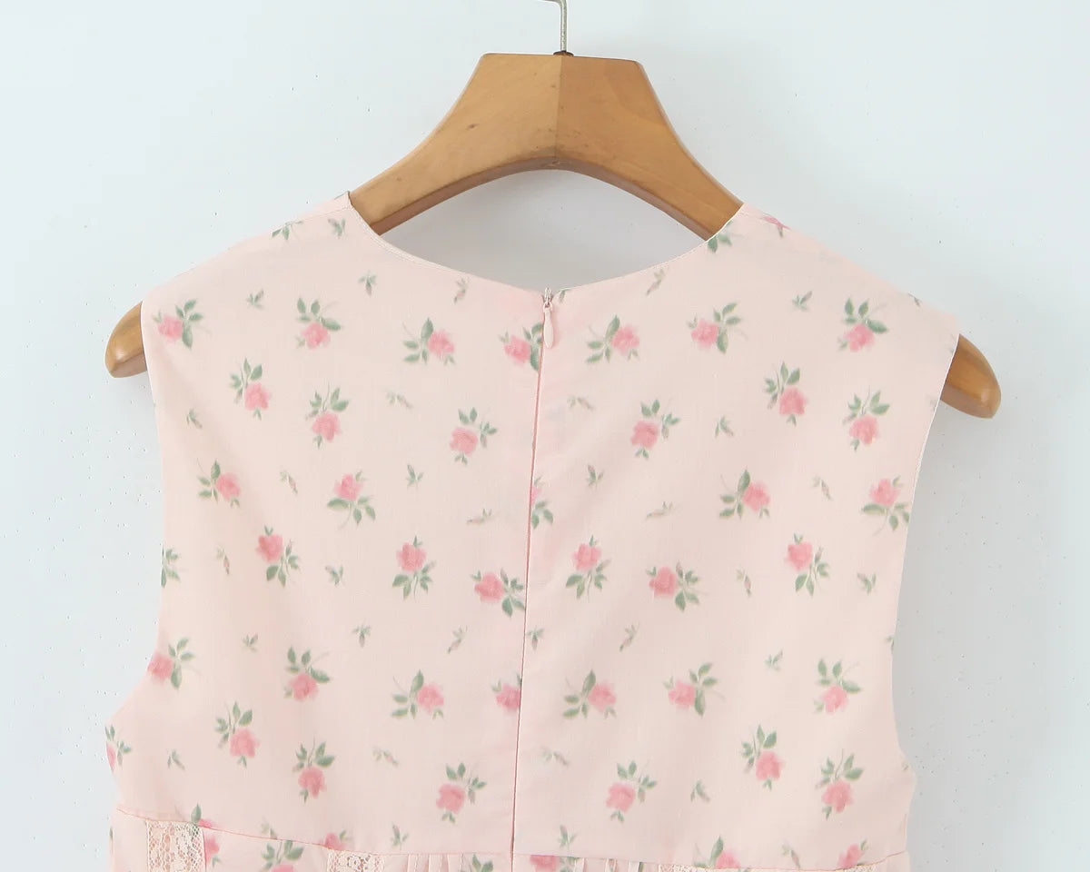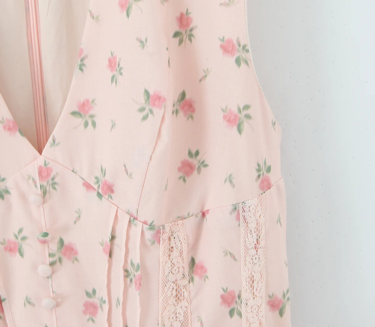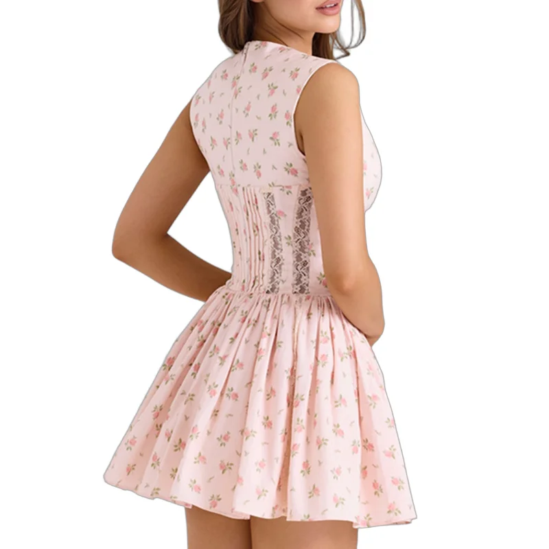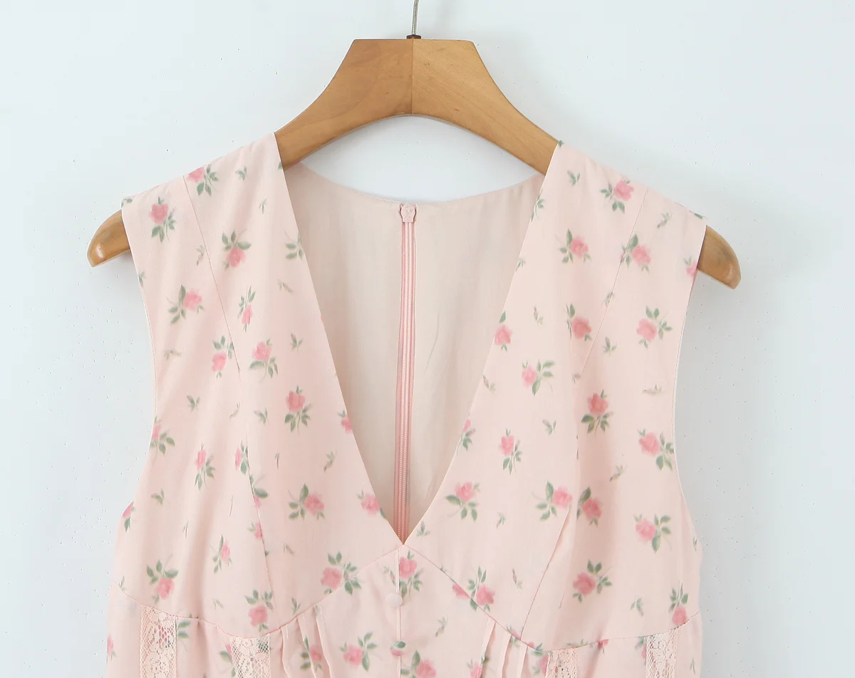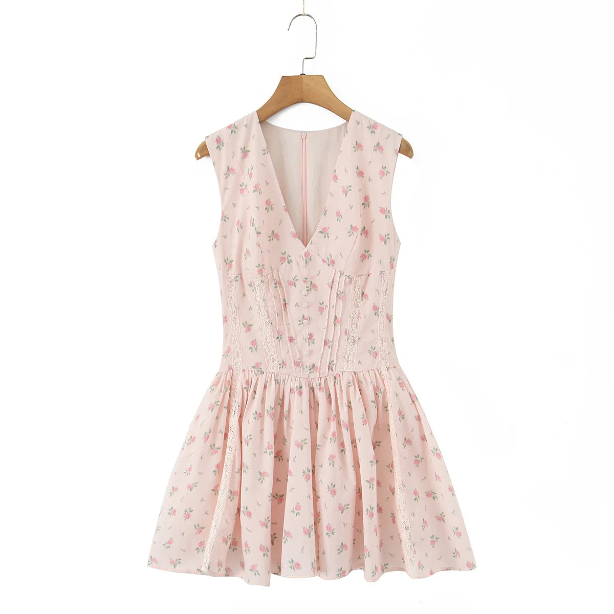 KYLETHOMASW - French Elegant Pink Floral Lace Embroidery V-neck Cotton Sleeveless Dress For Women Slim Fit Mini Party Dresses Vestido