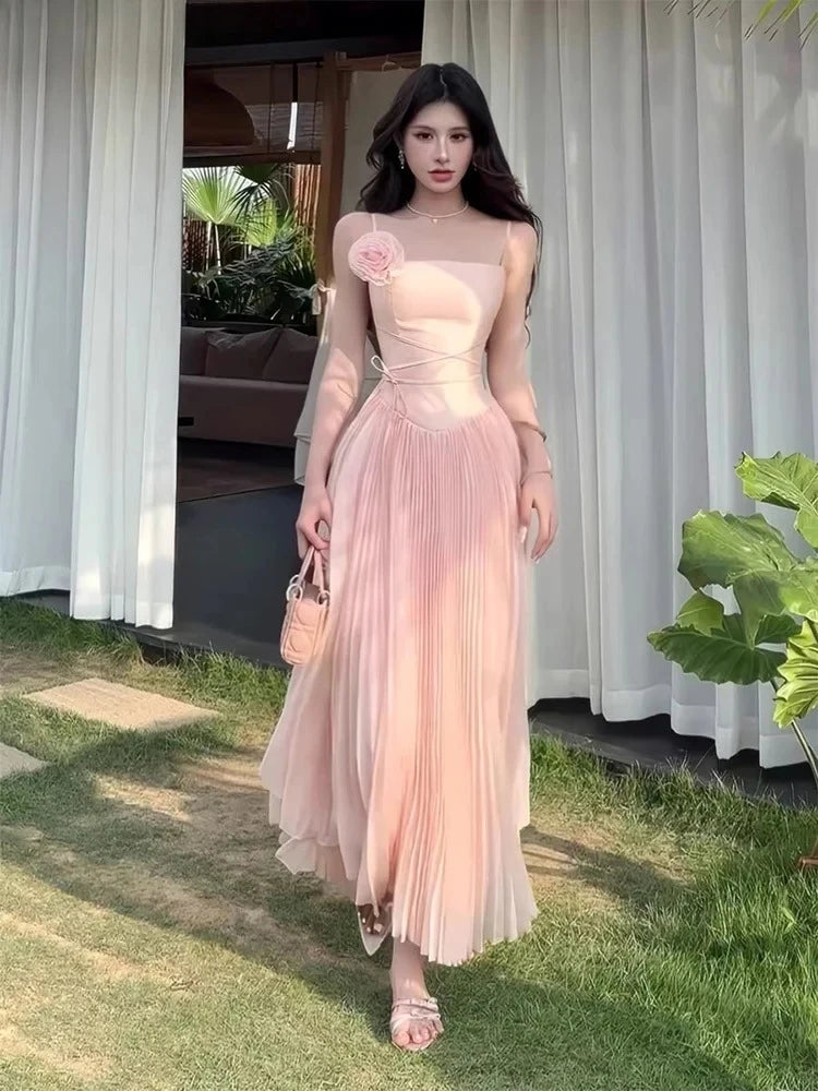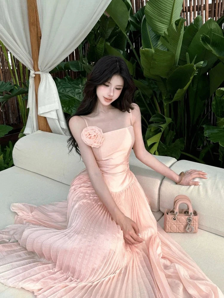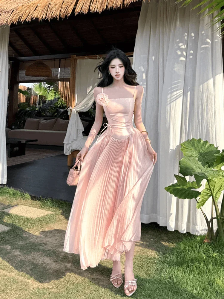 KYLETHOMASW - Holiday Style French Sexy Suspender Long Dress Women's High Sense Temperament Sweet High-waist Pendulum Party Maxi Dresses