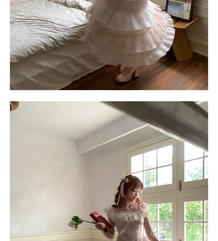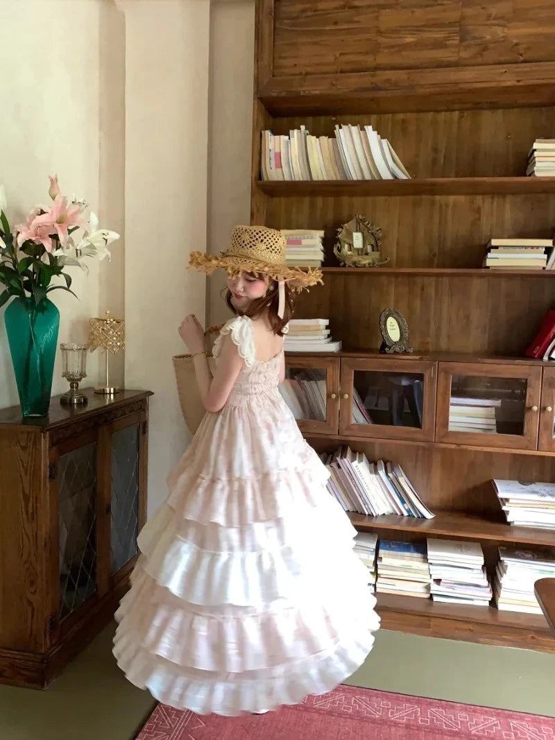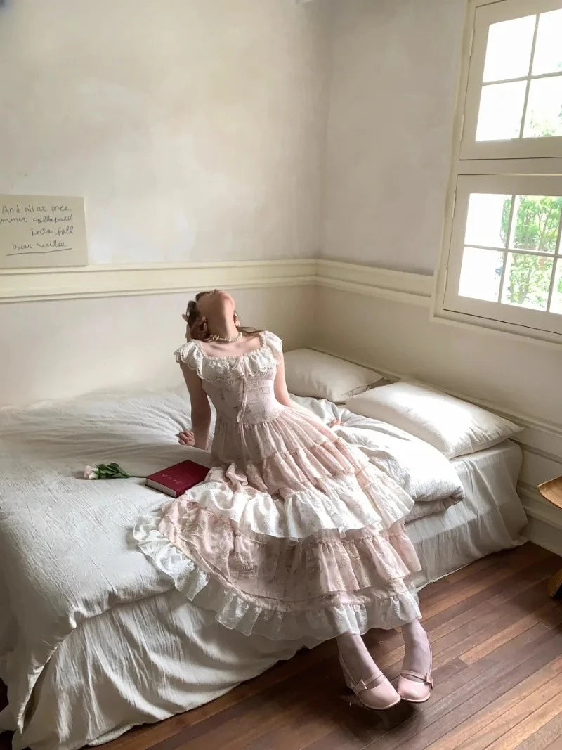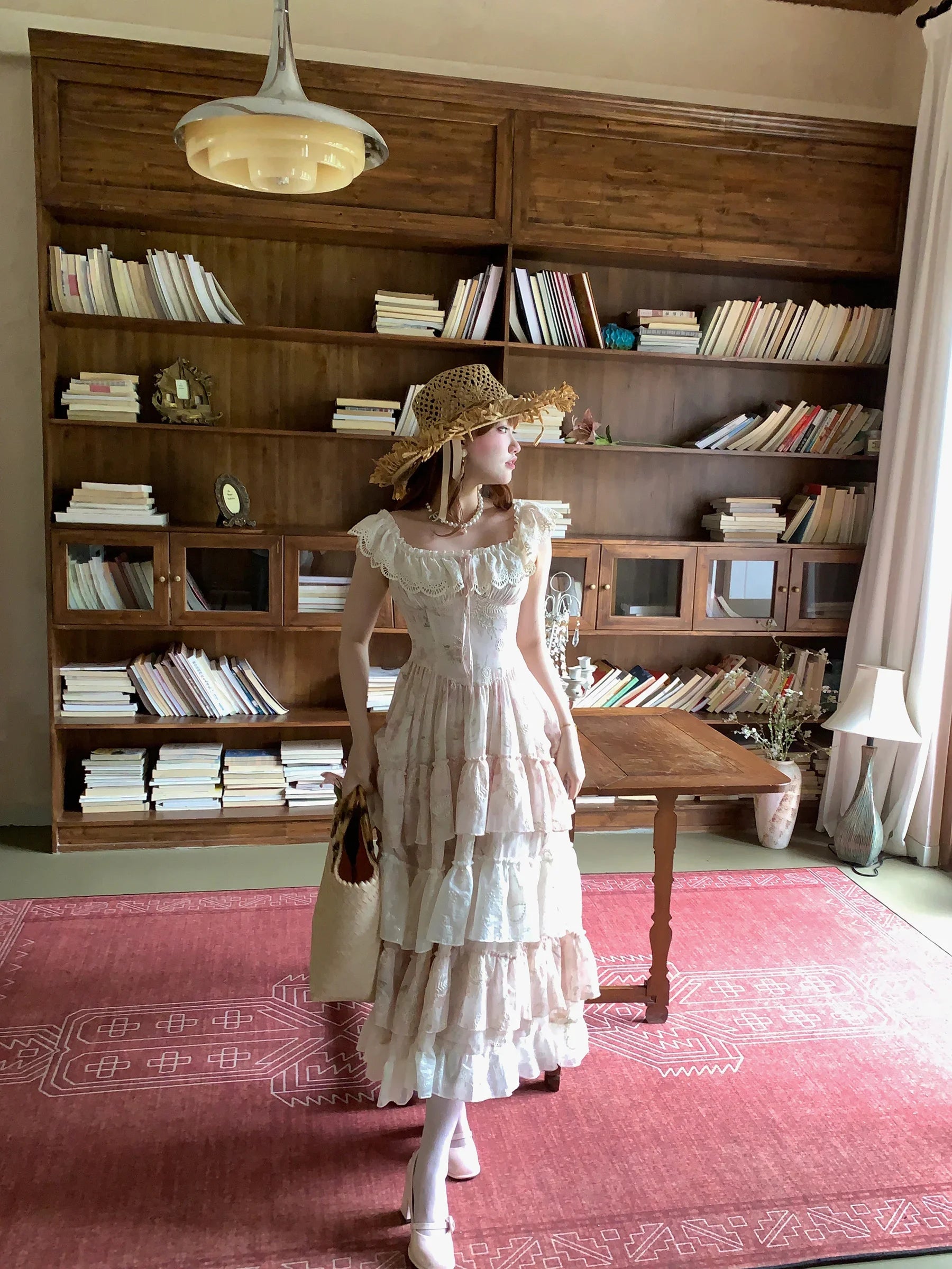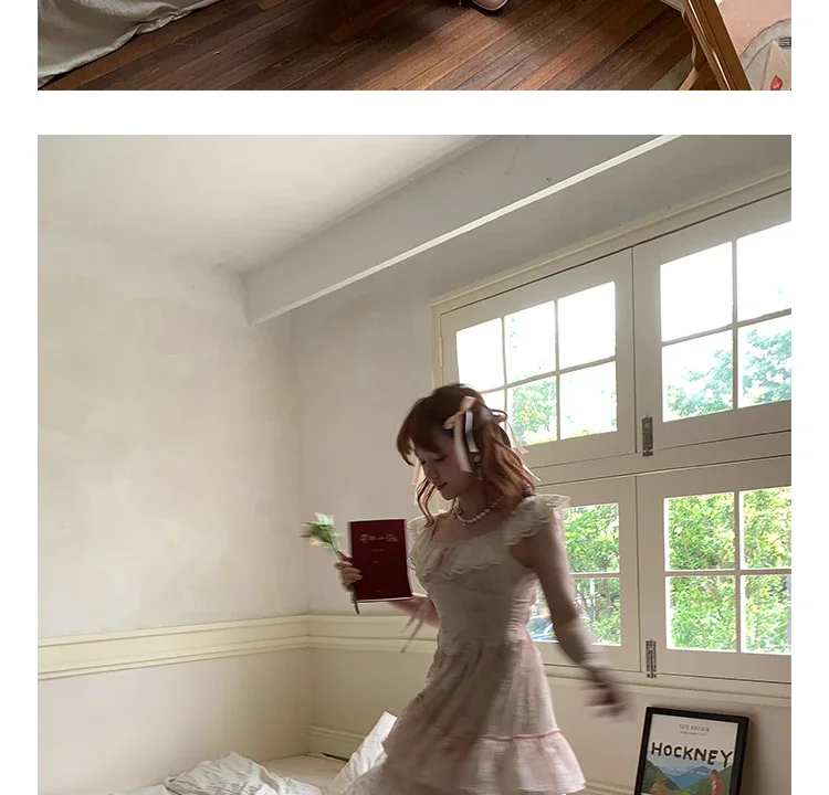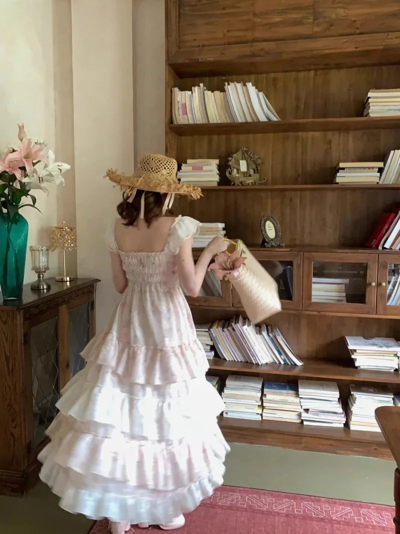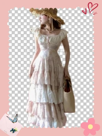 KYLETHOMASW - Original Gentle Floral Square Neck High Waist Long Dress Summer New Sweet Cute Girls Vacation Seaside Travel Slim Dresses