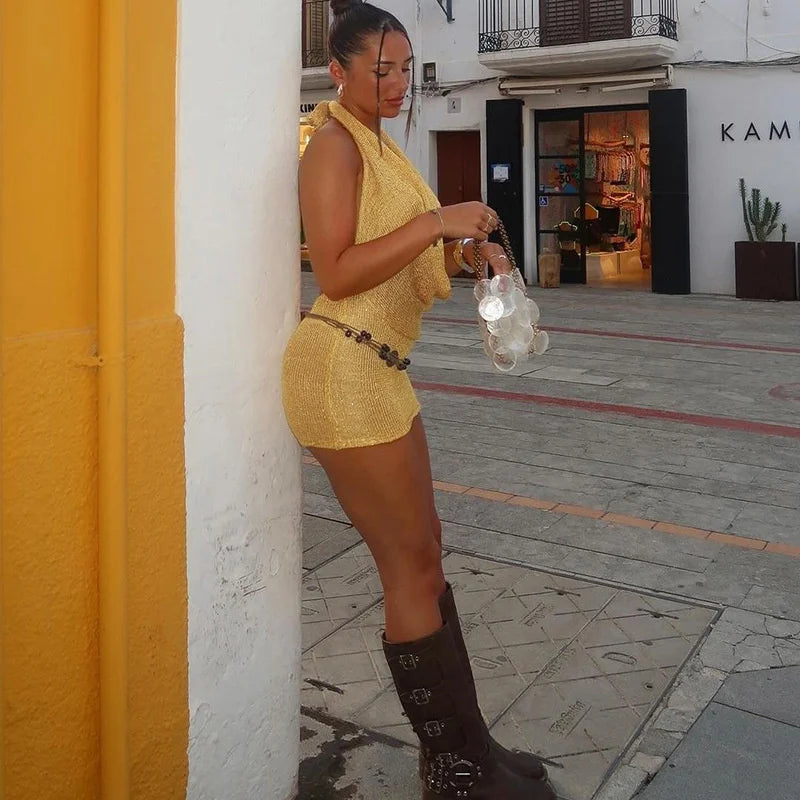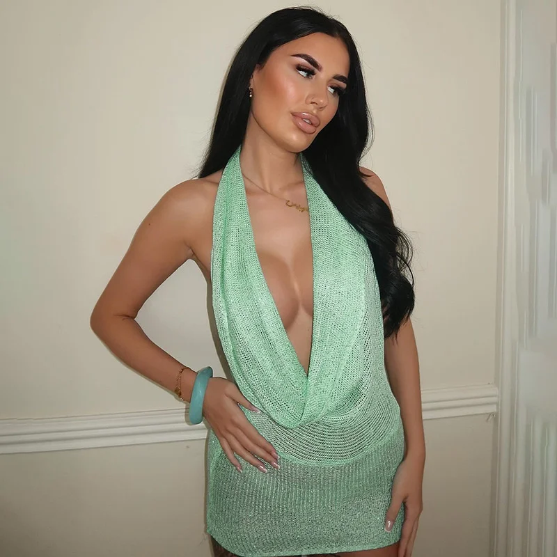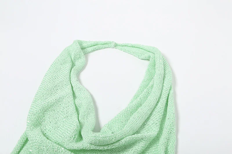 KYLETHOMASW - Sexy Sequin Halter Beach Mini Dress Women V Neck Backless Sleeveless Vestidos Female 2025 Spring Summer Chic Holiday Streetwears