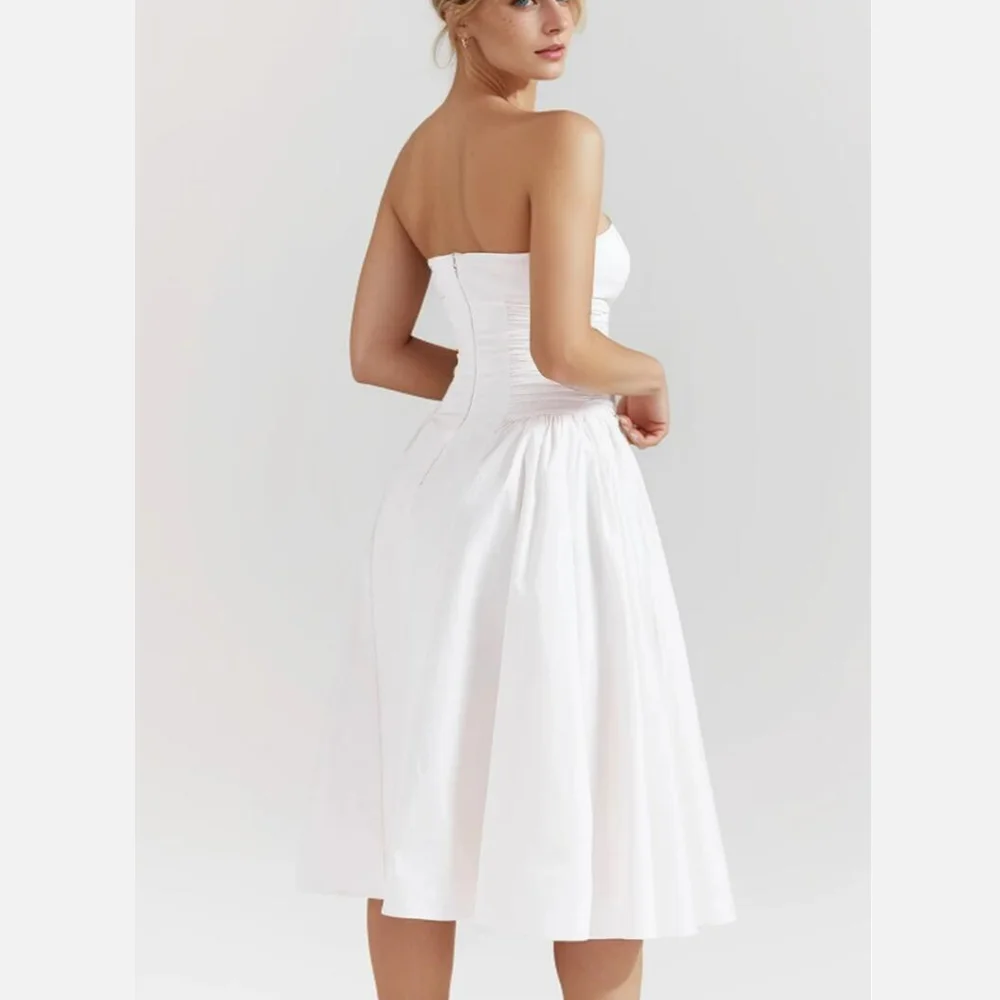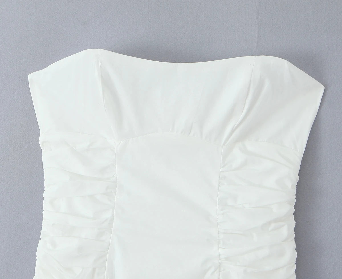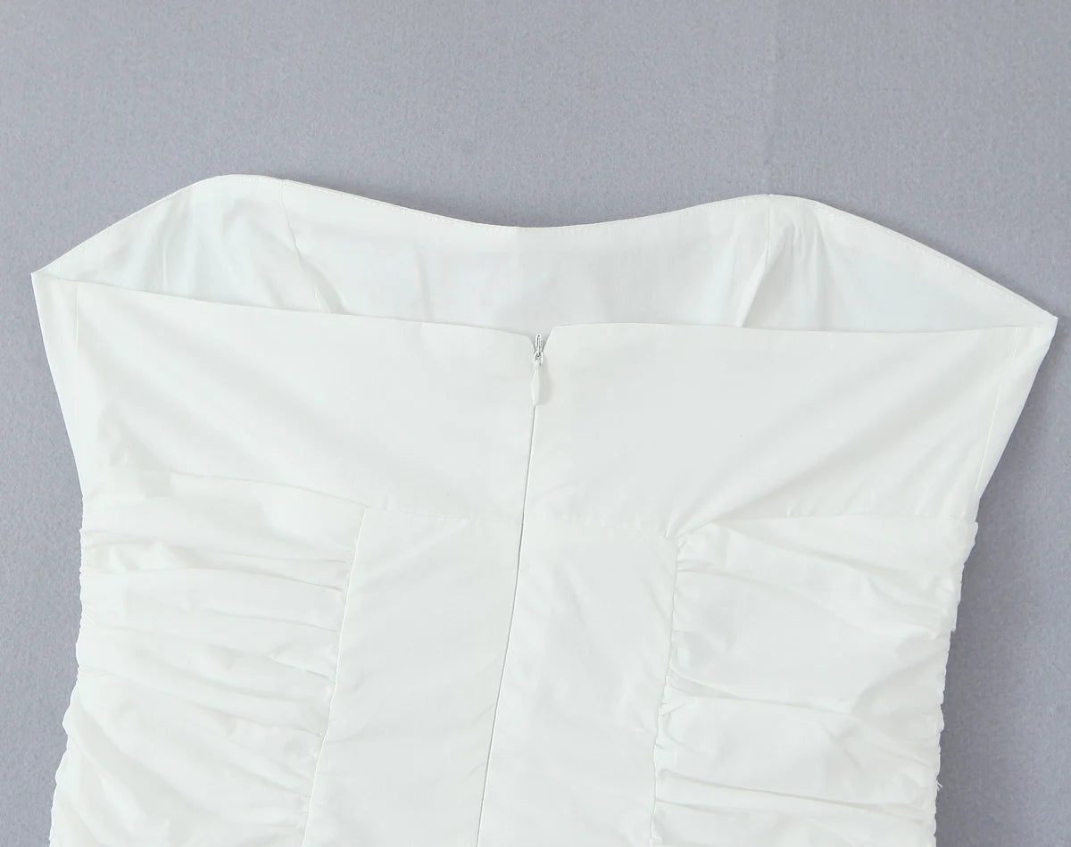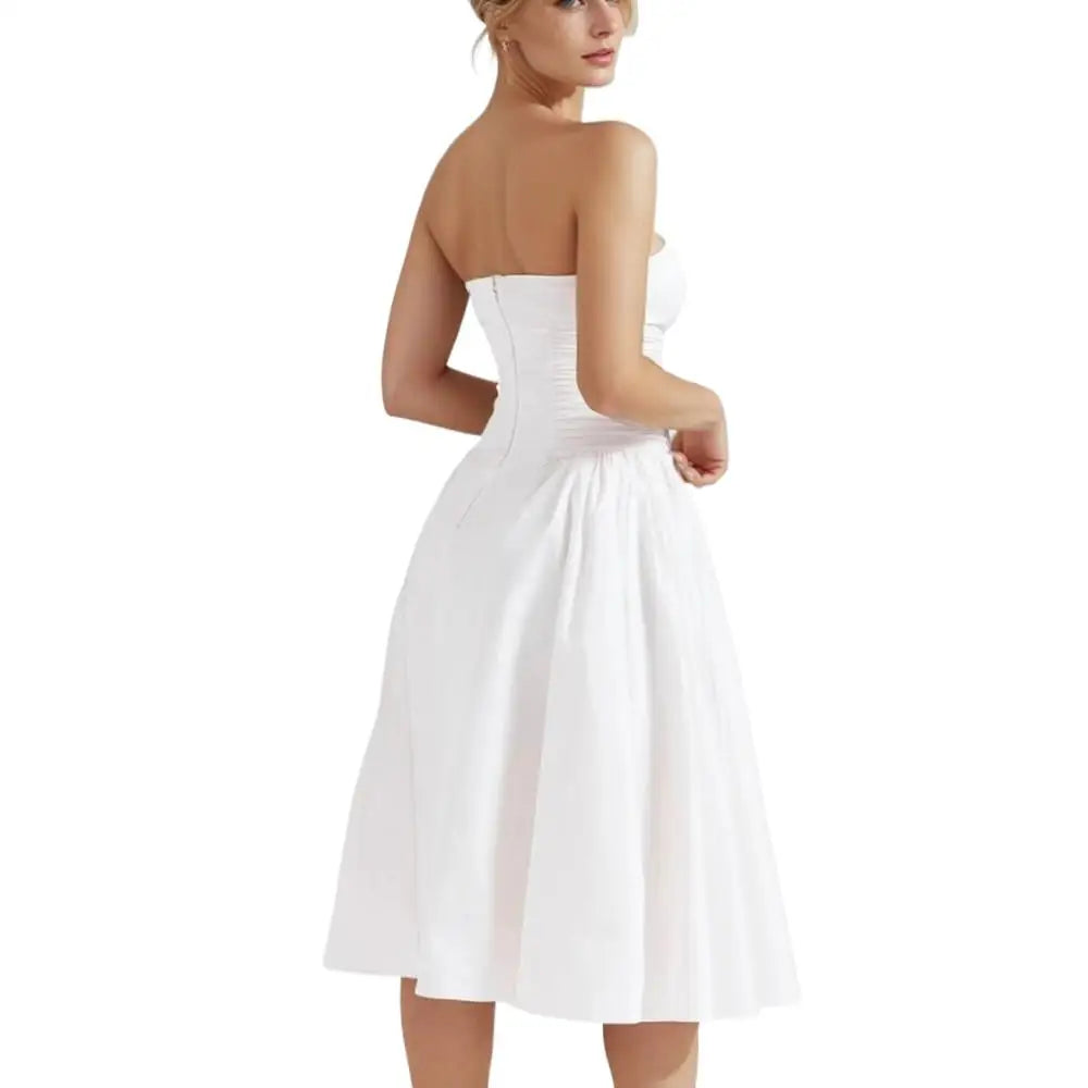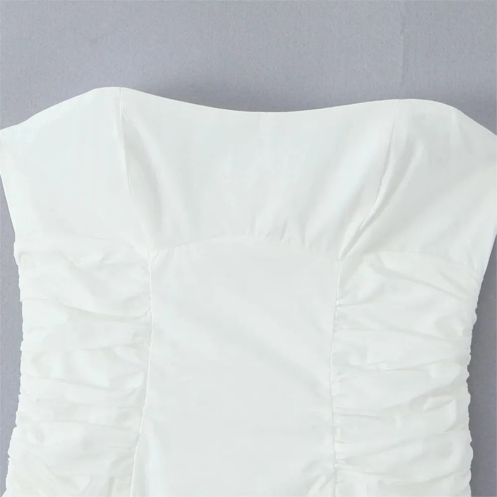 KYLETHOMASW - Sexy White Slash Collar Backless Midi Long Strapless Dress Women Pleated Folded Low Waist Pleated Ruched Hem Swing Party Robe
