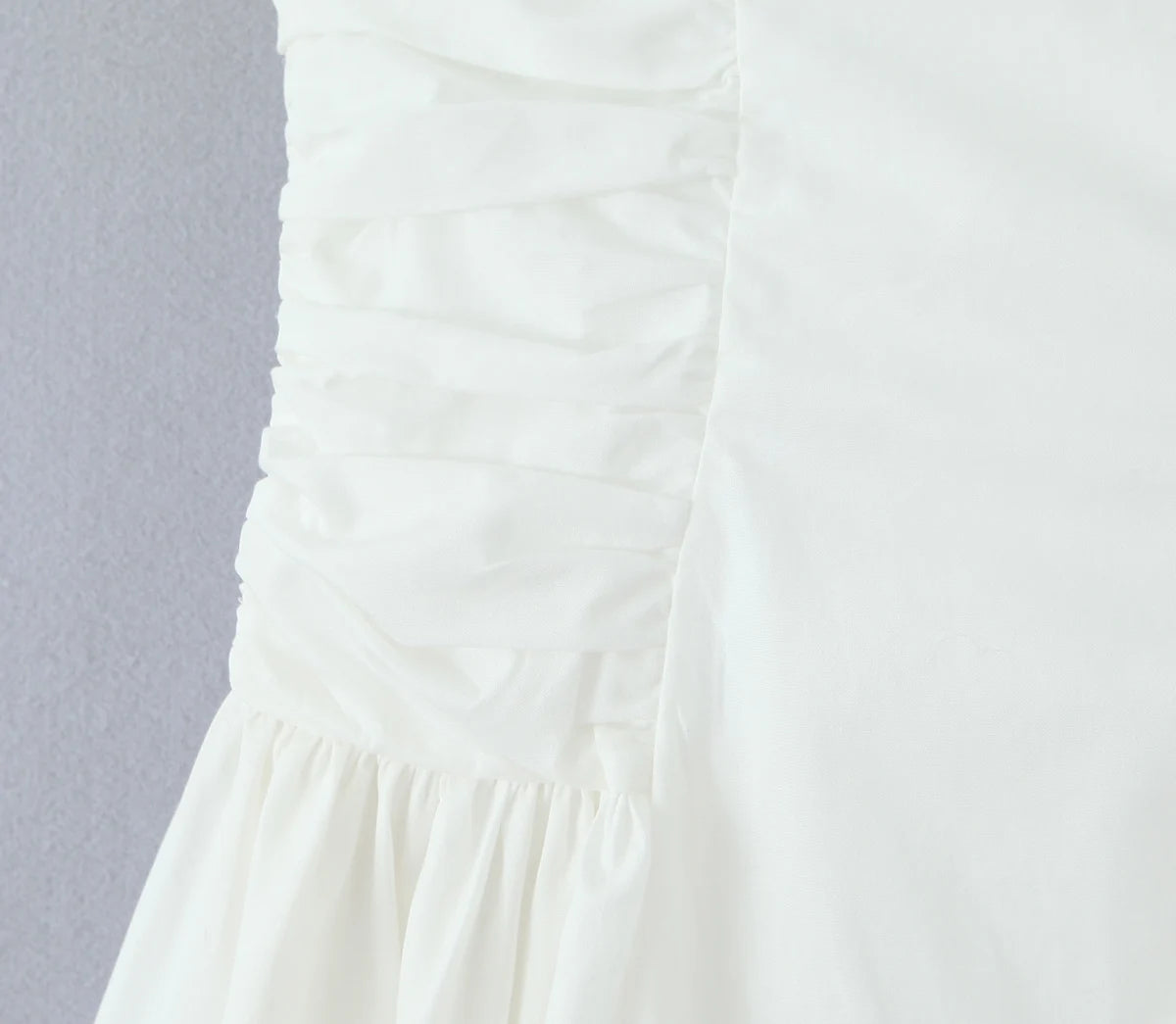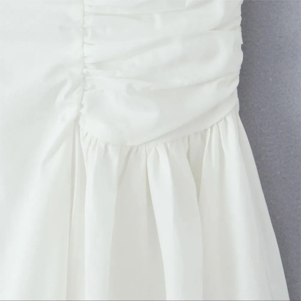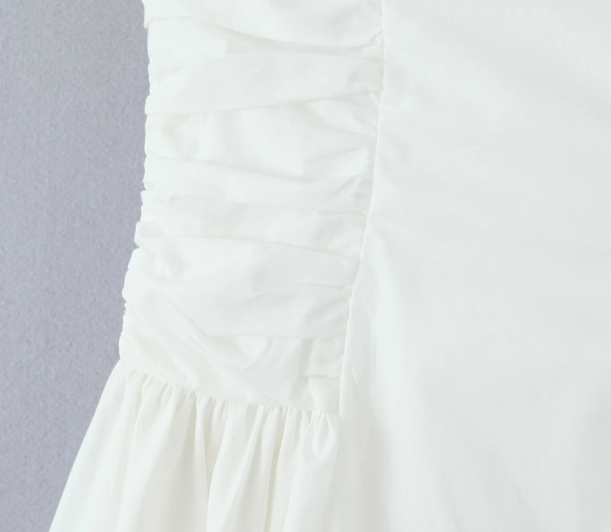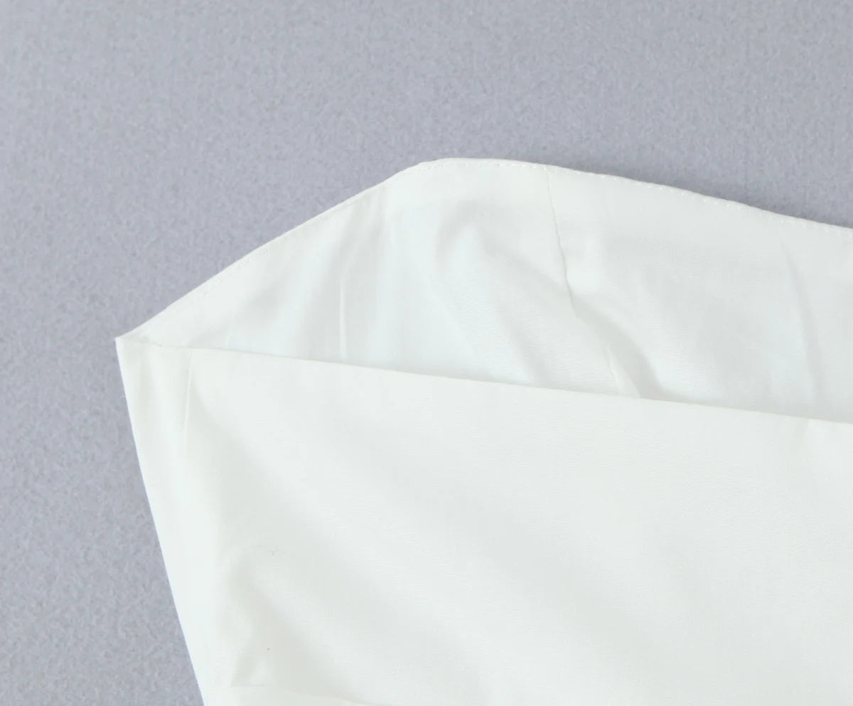 KYLETHOMASW - Sexy White Slash Collar Backless Midi Long Strapless Dress Women Pleated Folded Low Waist Pleated Ruched Hem Swing Party Robe