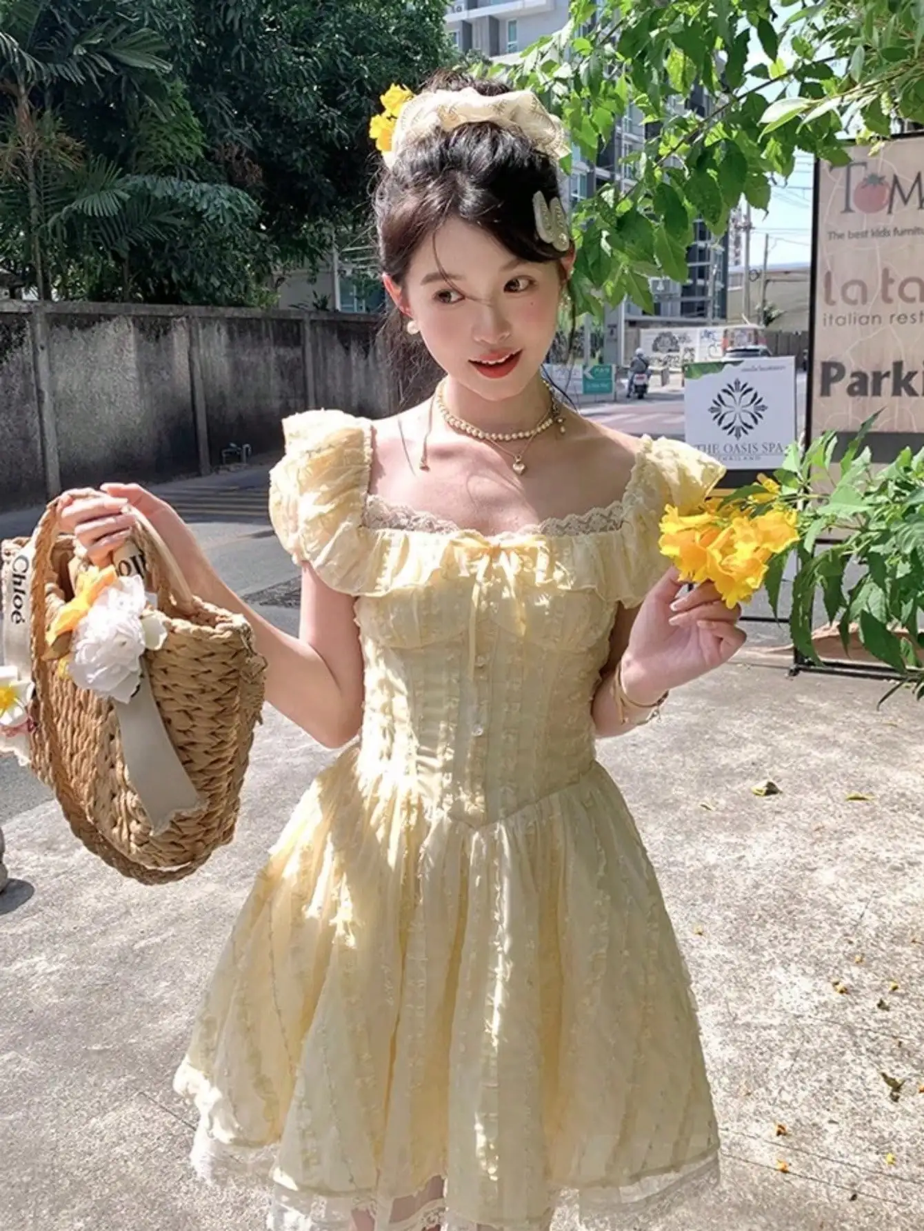 KYLETHOMASW - Summer New Sweet Lace Square-Collar Elegant Princess Woman Dresses Y2K Korean Preppy Style Slim A-Line Mini Dress Vacation Beach