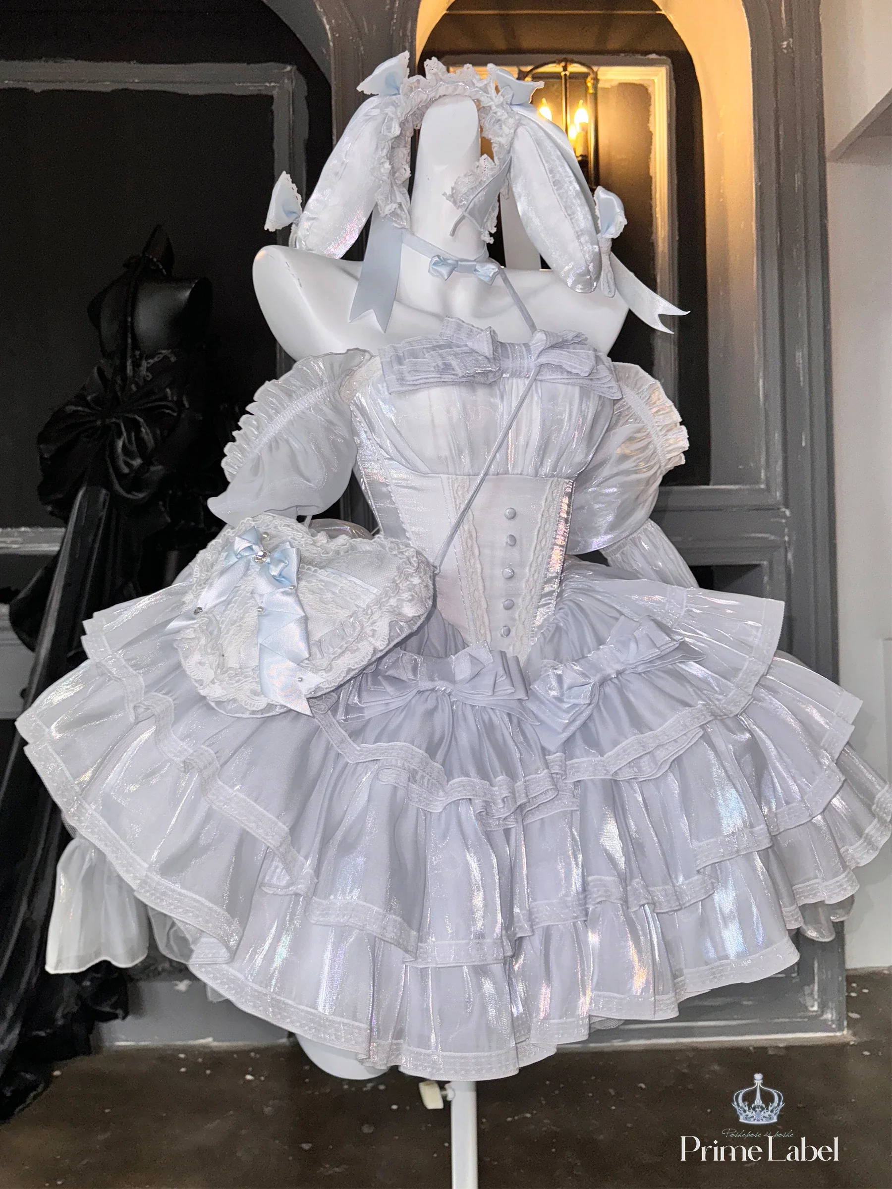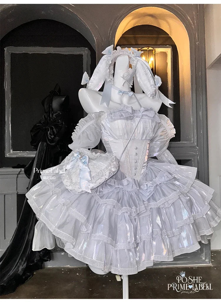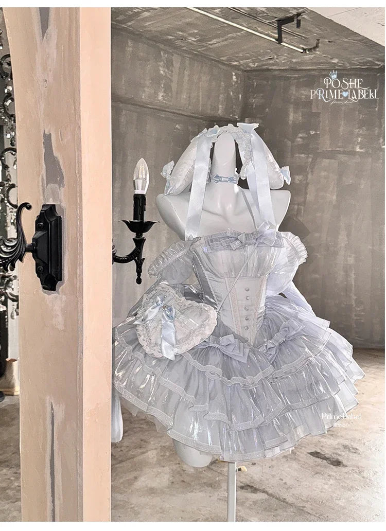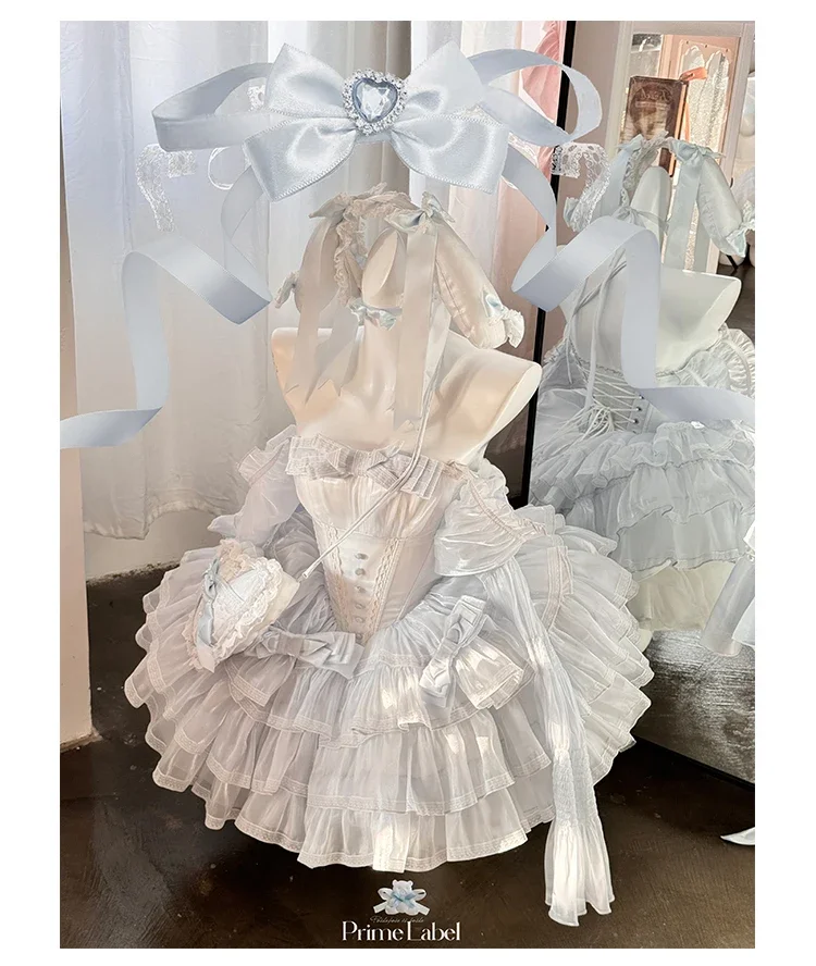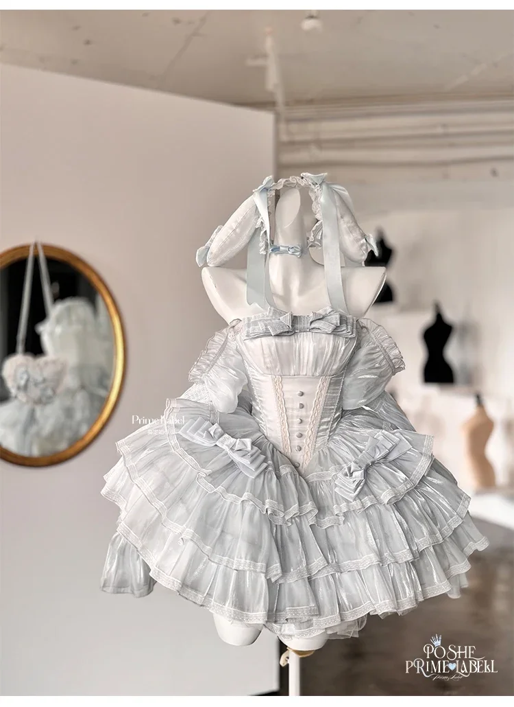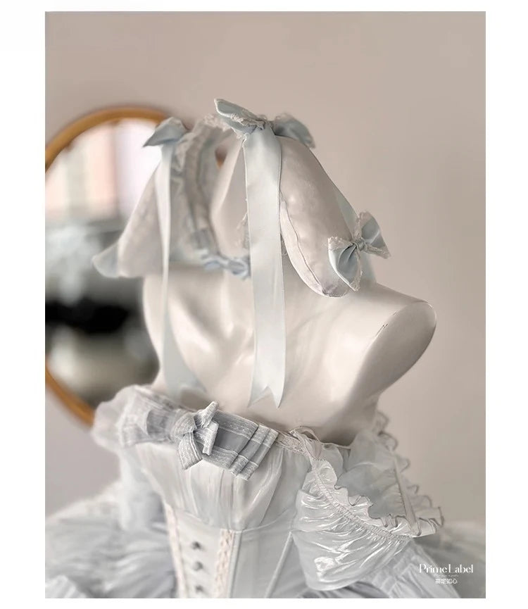 KYLETHOMASW - Sweet Princess Style High Waist Slimming Bow Dress Japanese Summer New Off-the-shoulder Lace-up Sleeveless Puffy Dresses