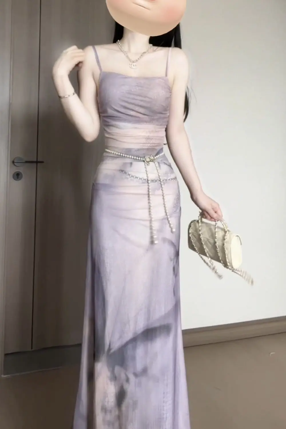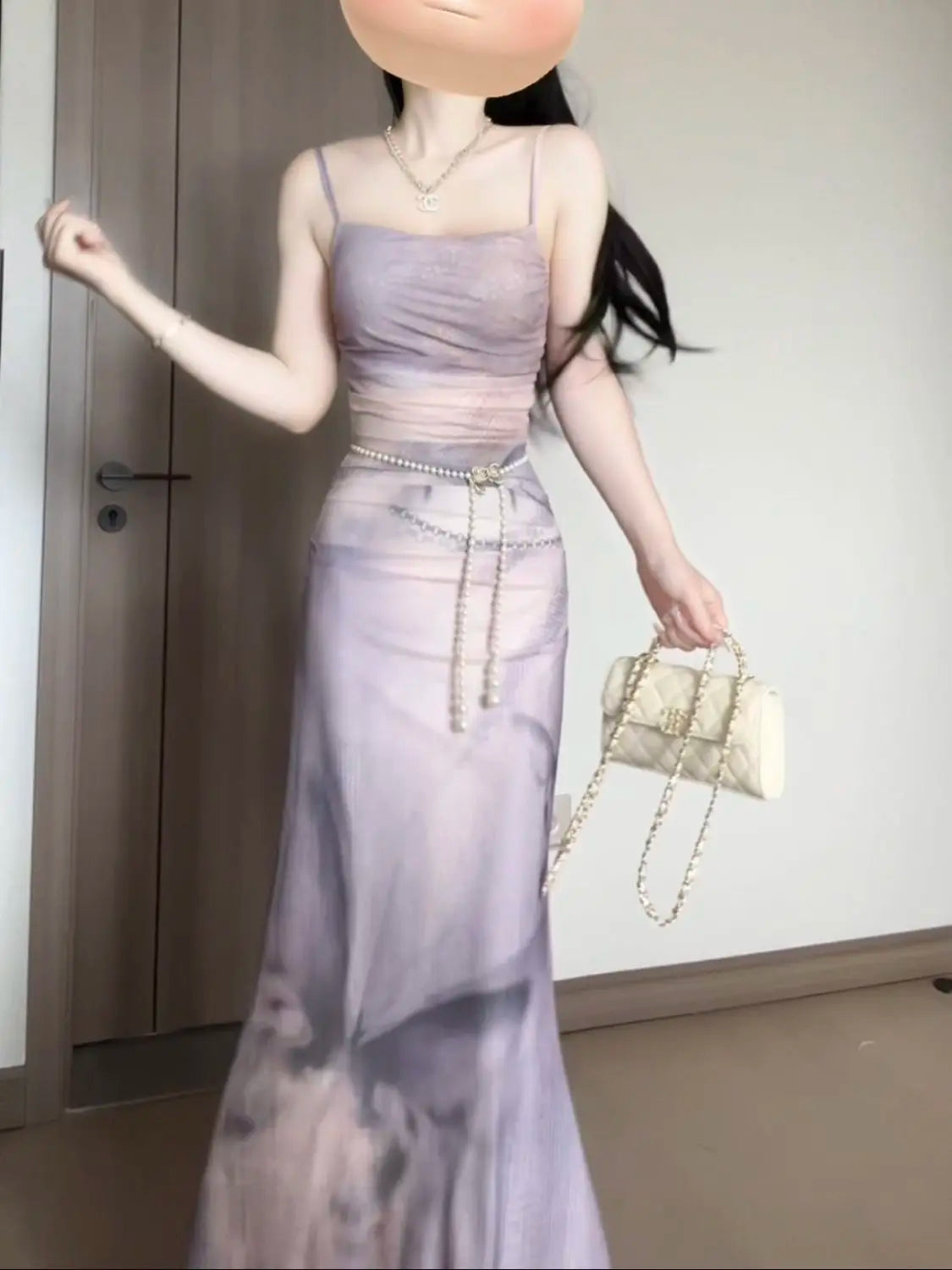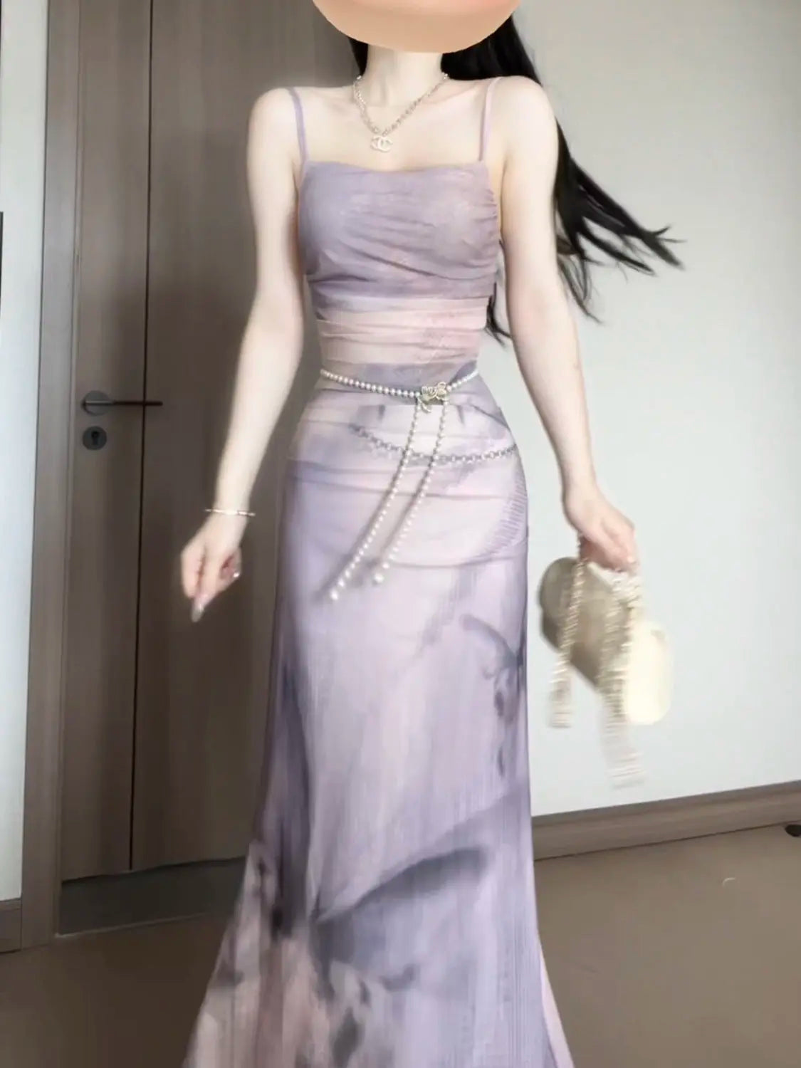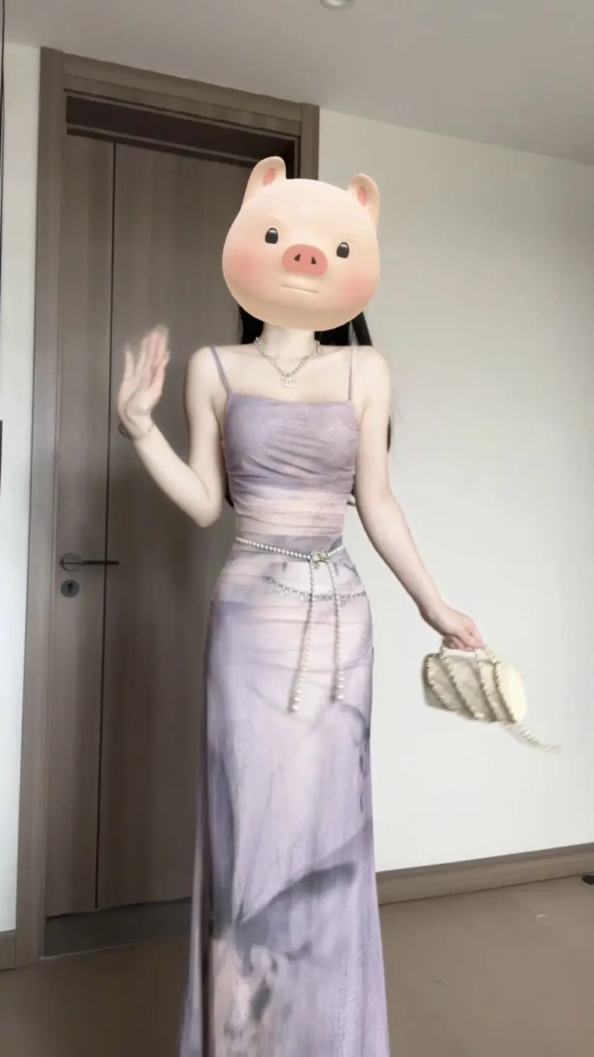 KYLETHOMASW - Sweet Purple Butterfly Printed Strap Camisole Dress for Women Summer Sexy Slim Fit Hip Wrapped Fishtail Long Dresses
