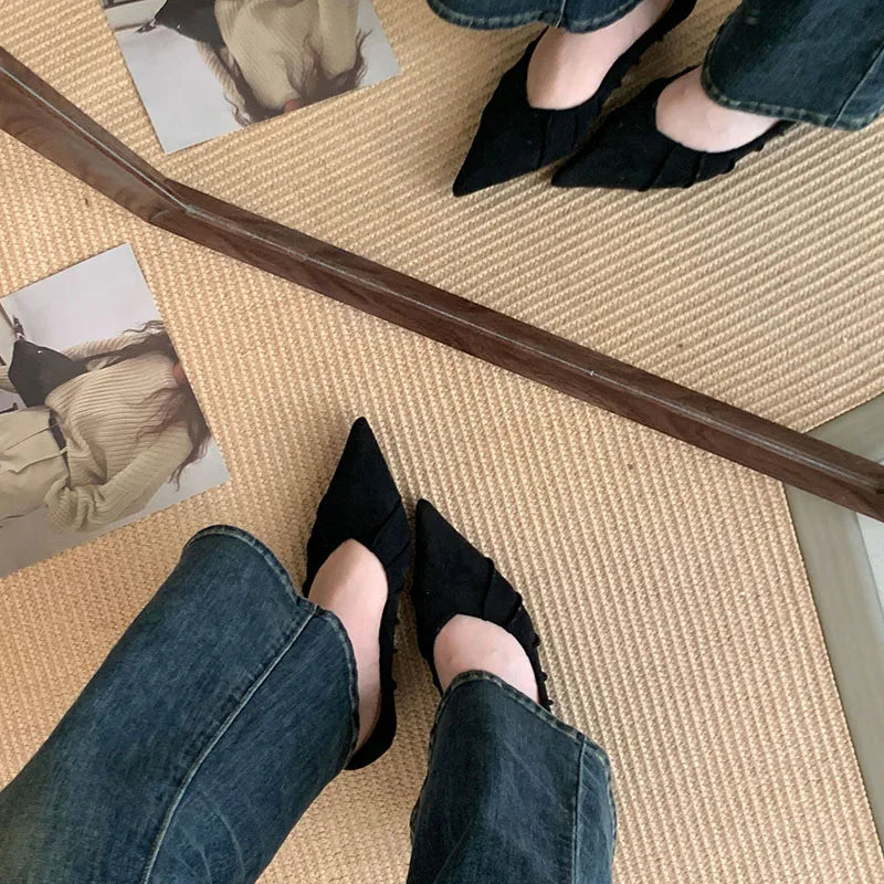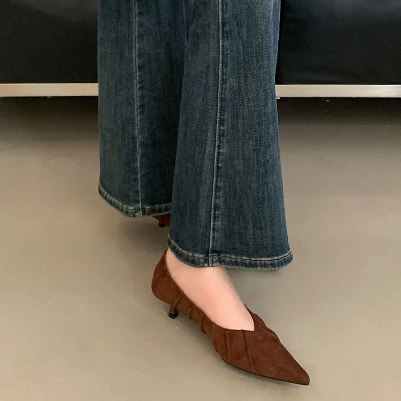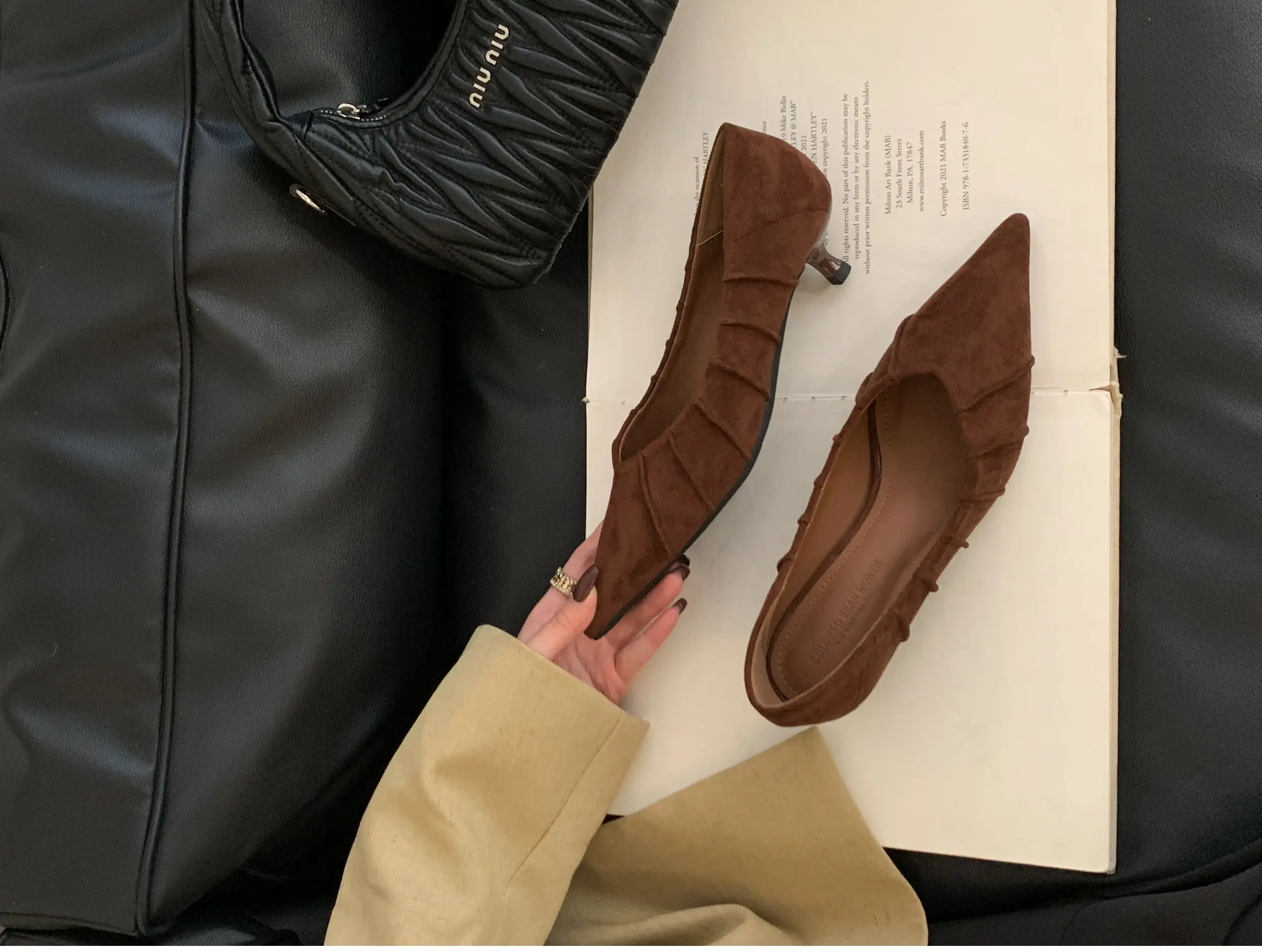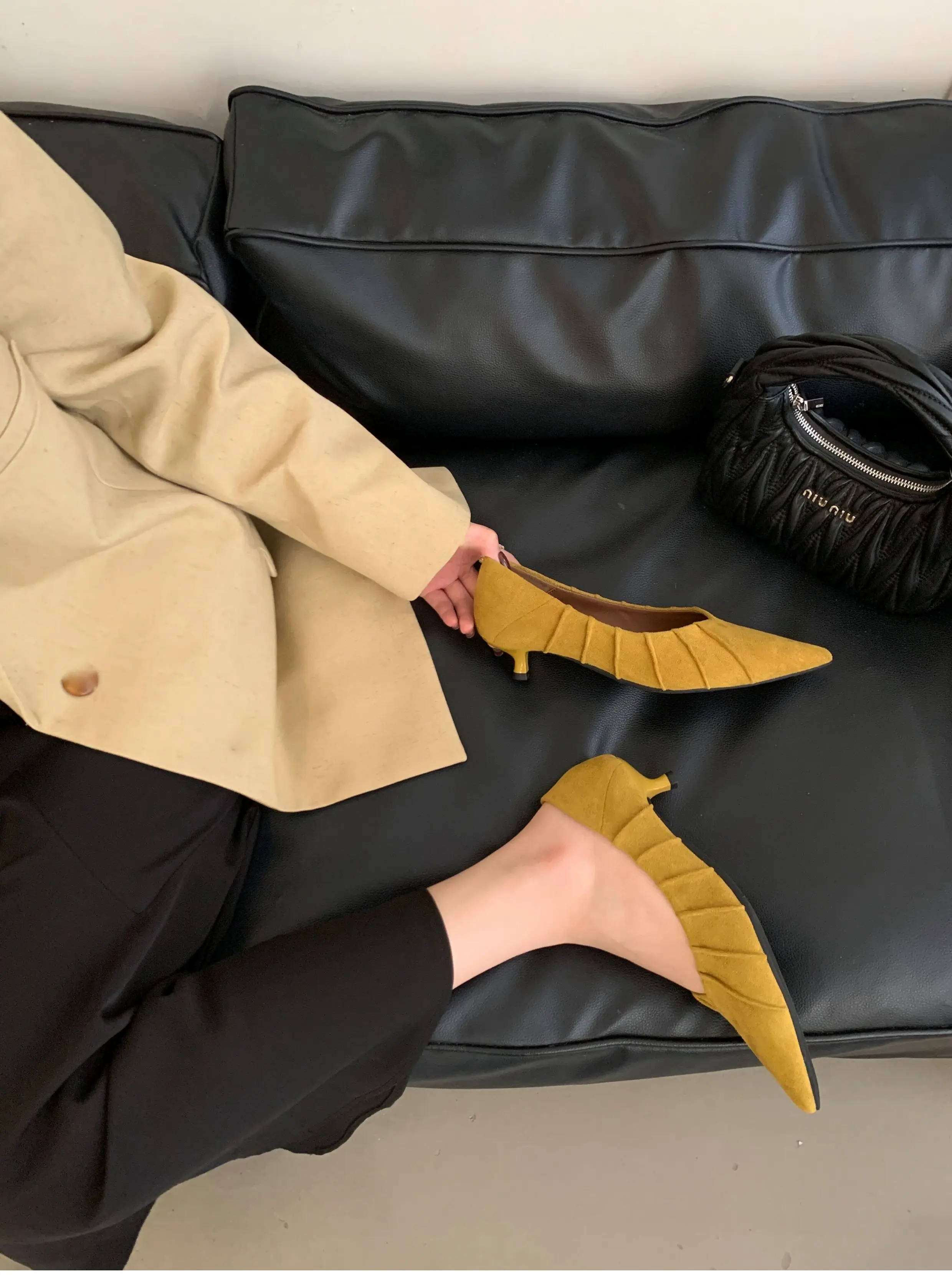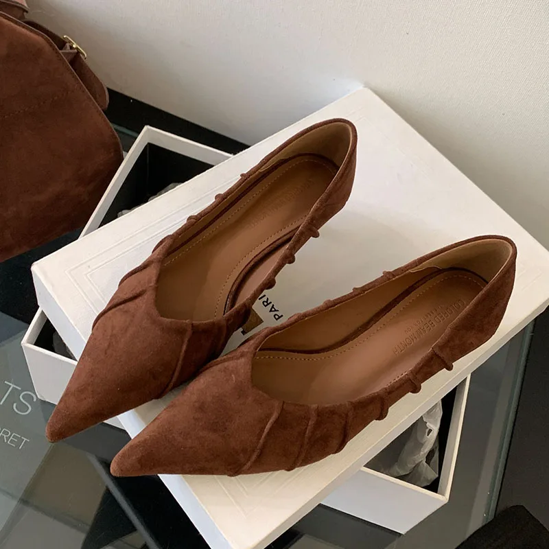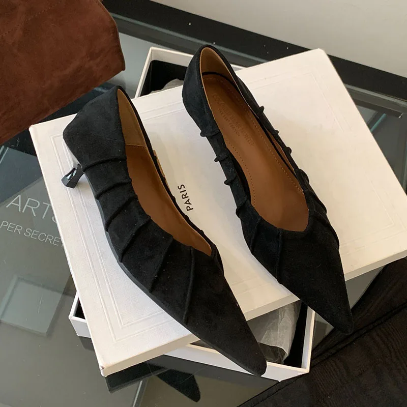 KYLETHOMASW - Autumn New Brand Women Pumps Shoes Fashion Pleated Pointed Toe Shallow Slip On Boat Shoes Thin Low Heel Single Shoes New