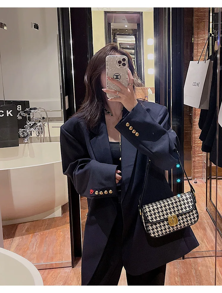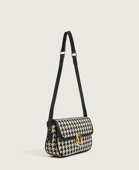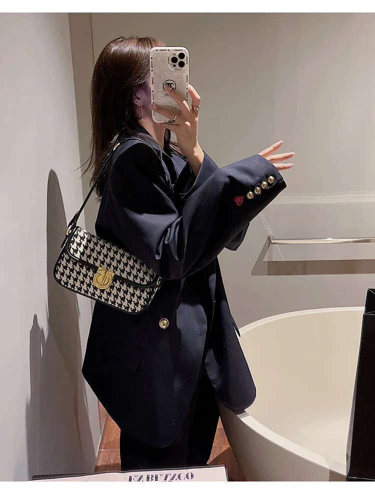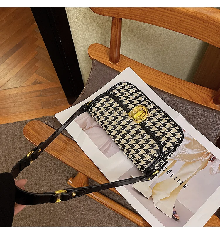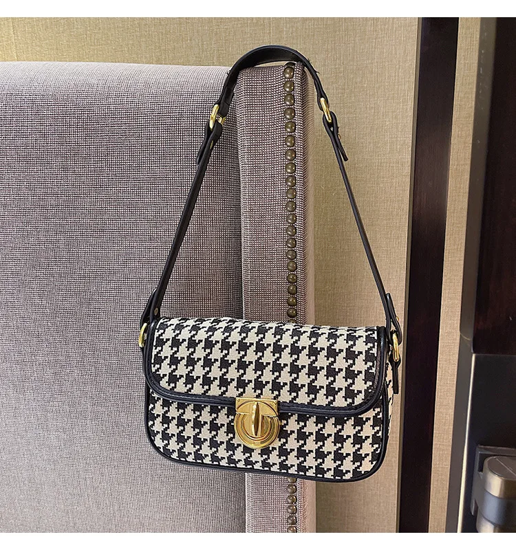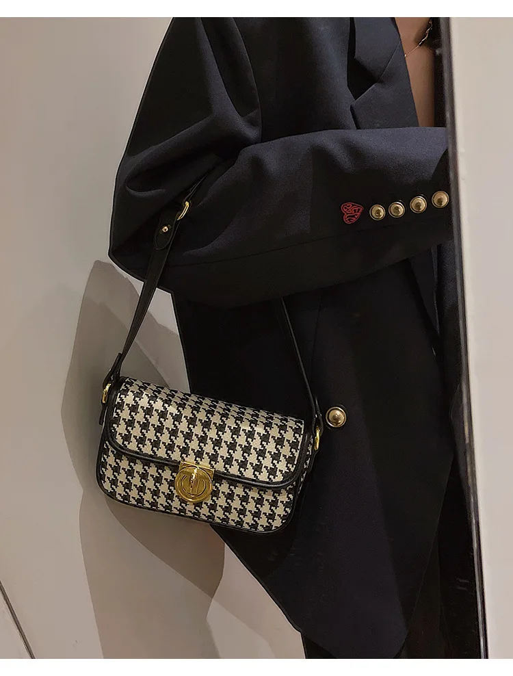 Kylethomasw 2024 Vintage Casual Elegant Fashion Women Handbag Daily Design Houndstooth Small Messenger Shoulder Bag Felt Plaid  Armpit Bag