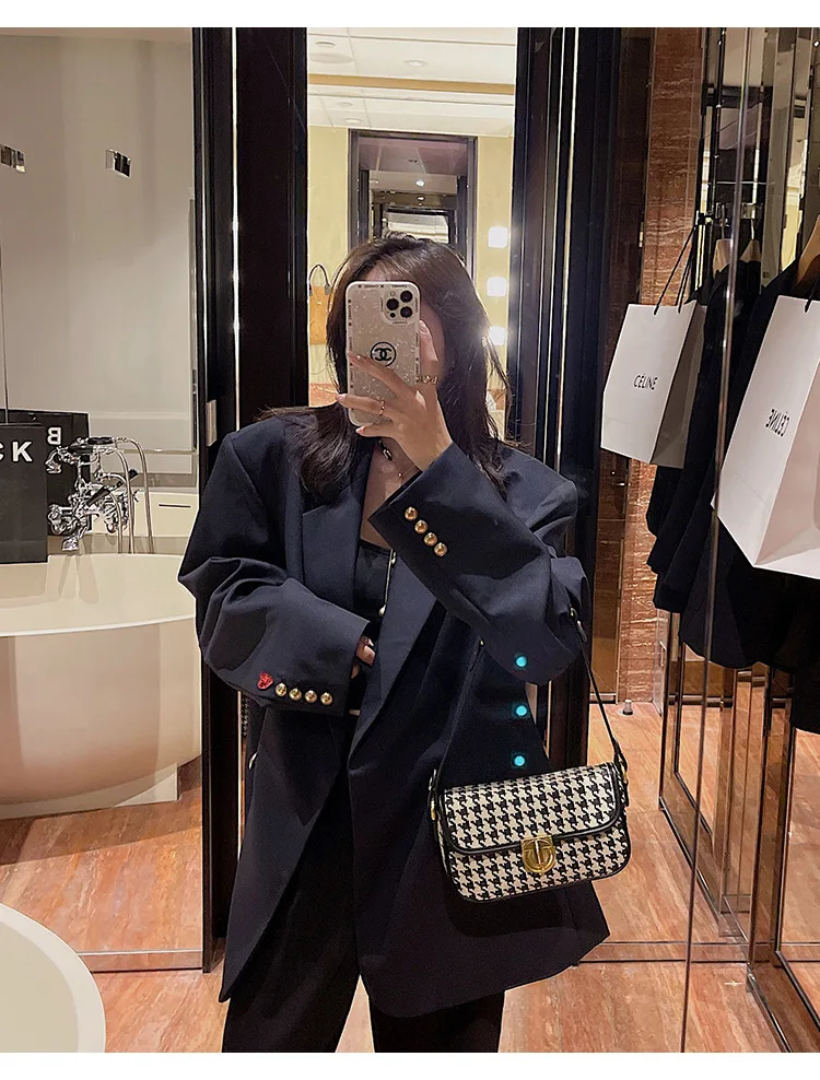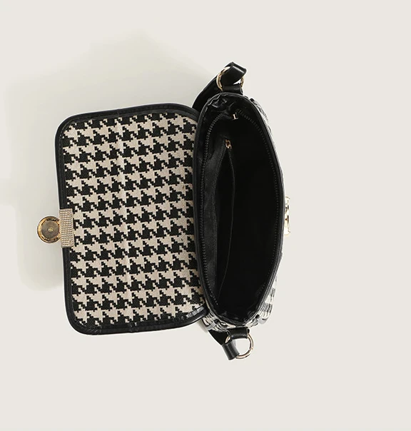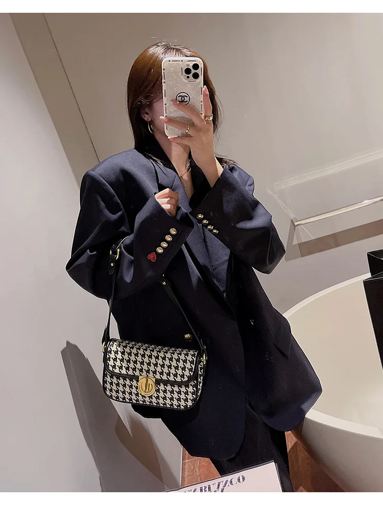 Kylethomasw 2024 Vintage Casual Elegant Fashion Women Handbag Daily Design Houndstooth Small Messenger Shoulder Bag Felt Plaid Armpit Bag