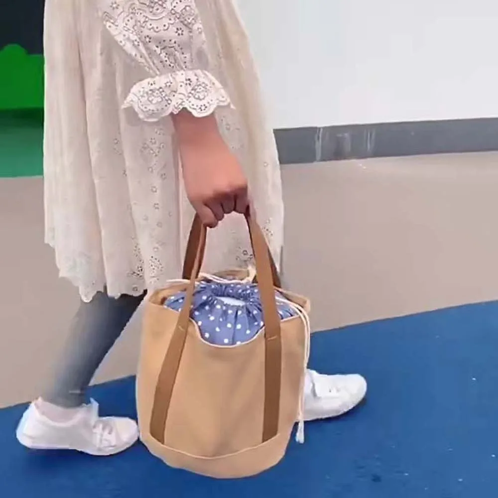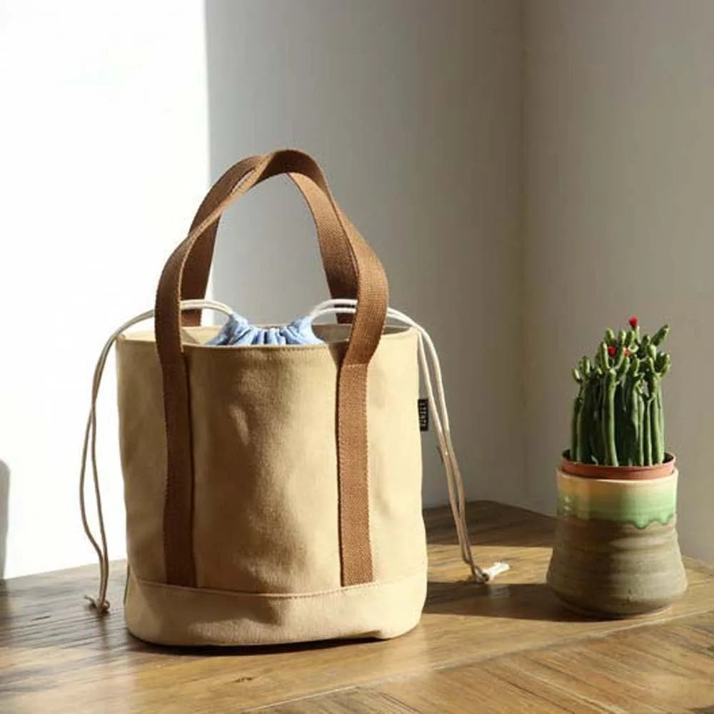 KYLETHOMASW - 3D Large Capacity Thermal Insulation Bag Canvas Thickened Drawstring Lunch Handbag Japanese Style Polyester Picnic Box Pouch Men