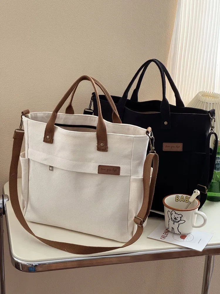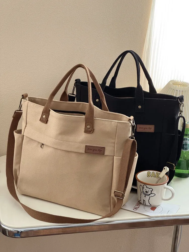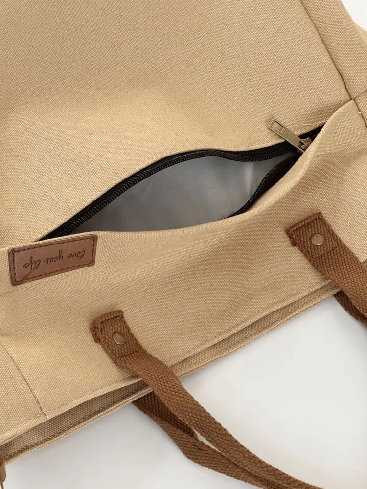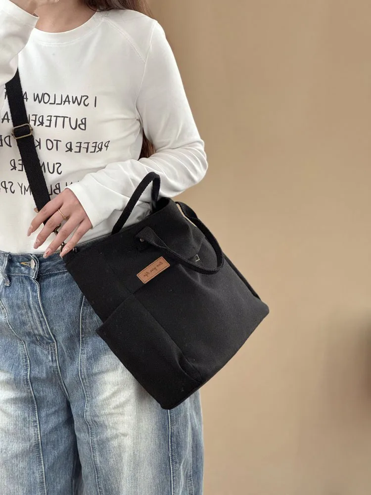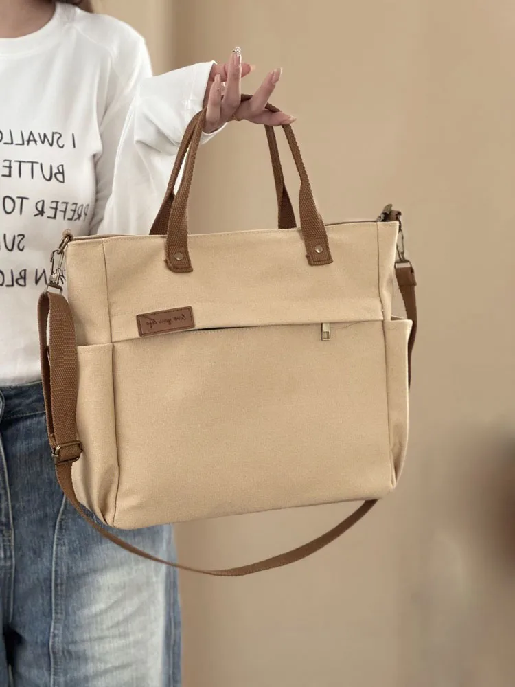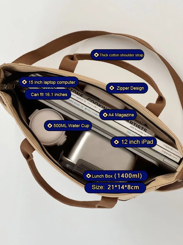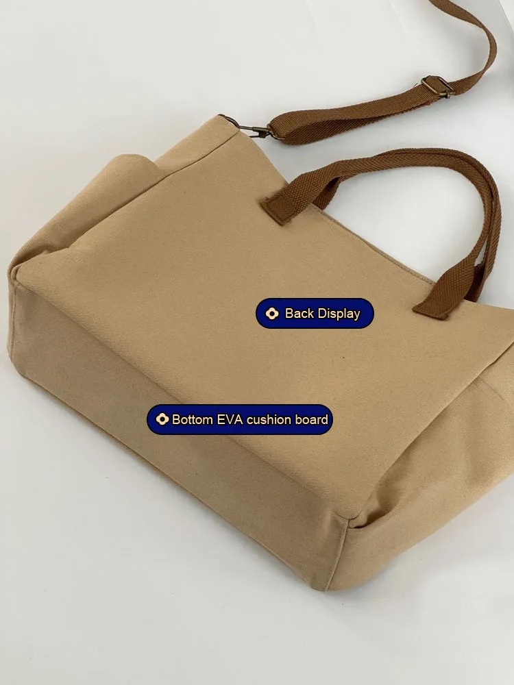 KYLETHOMASW - Cloth Handbag Thickened Canvas Shoulder Bag Simple Commuter Student Handheld Crossbody Tote Bags With Zipper