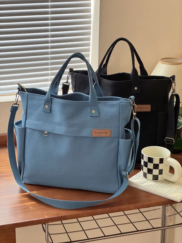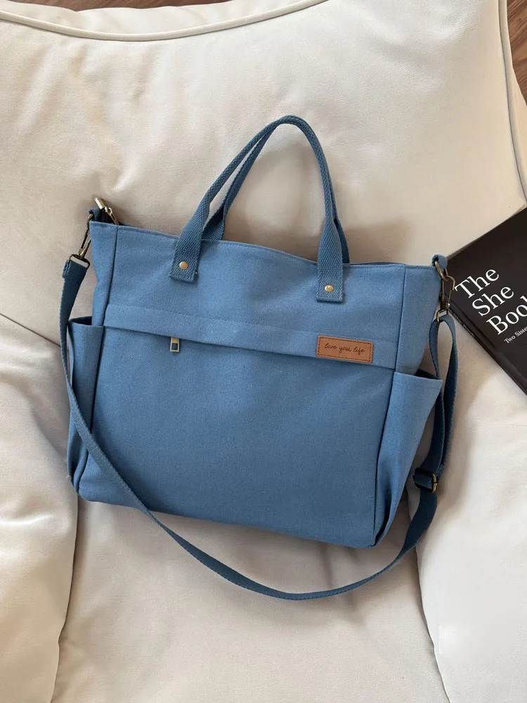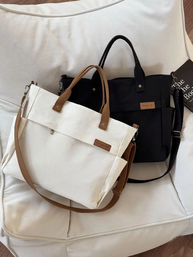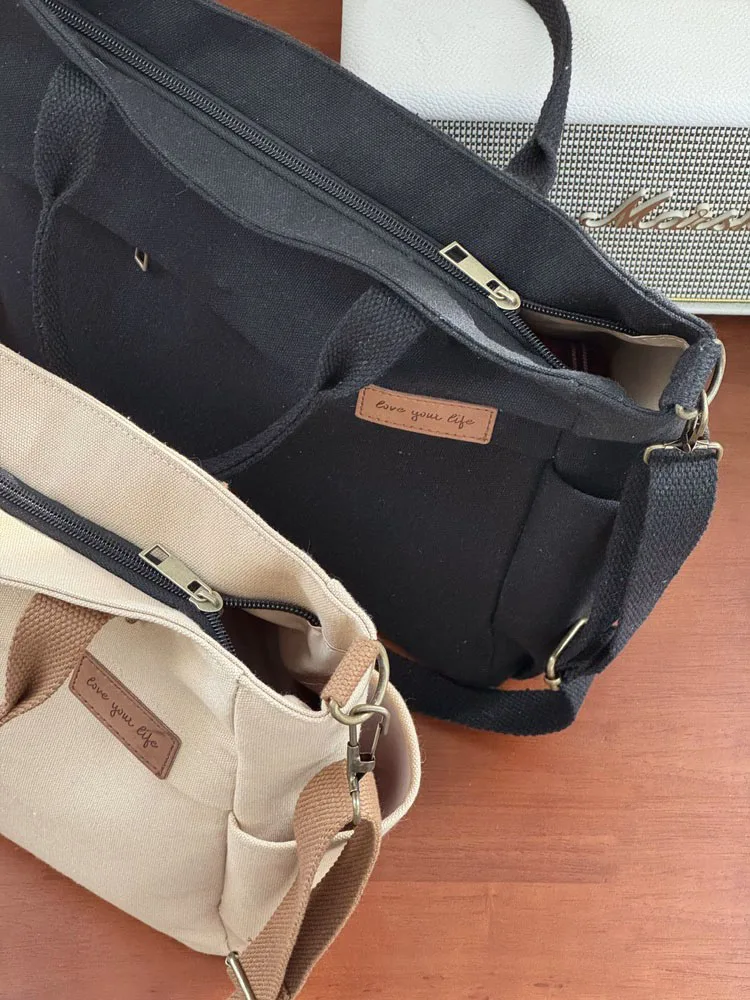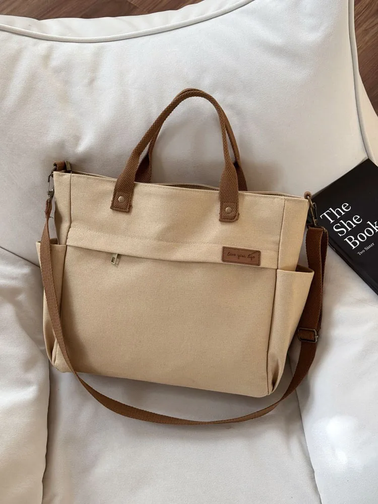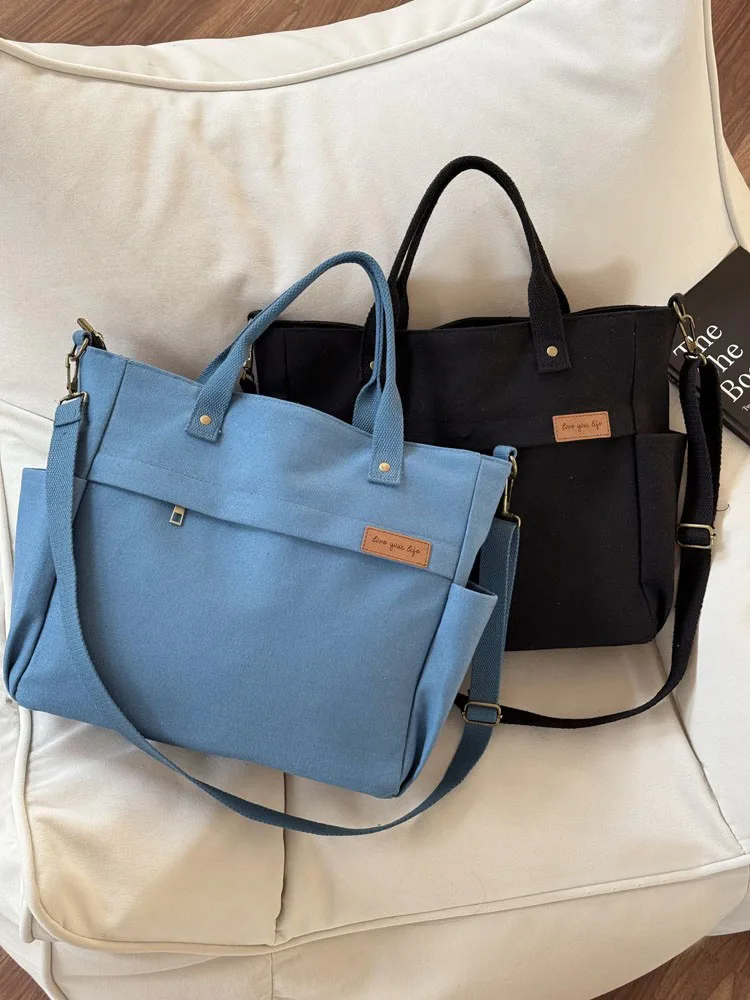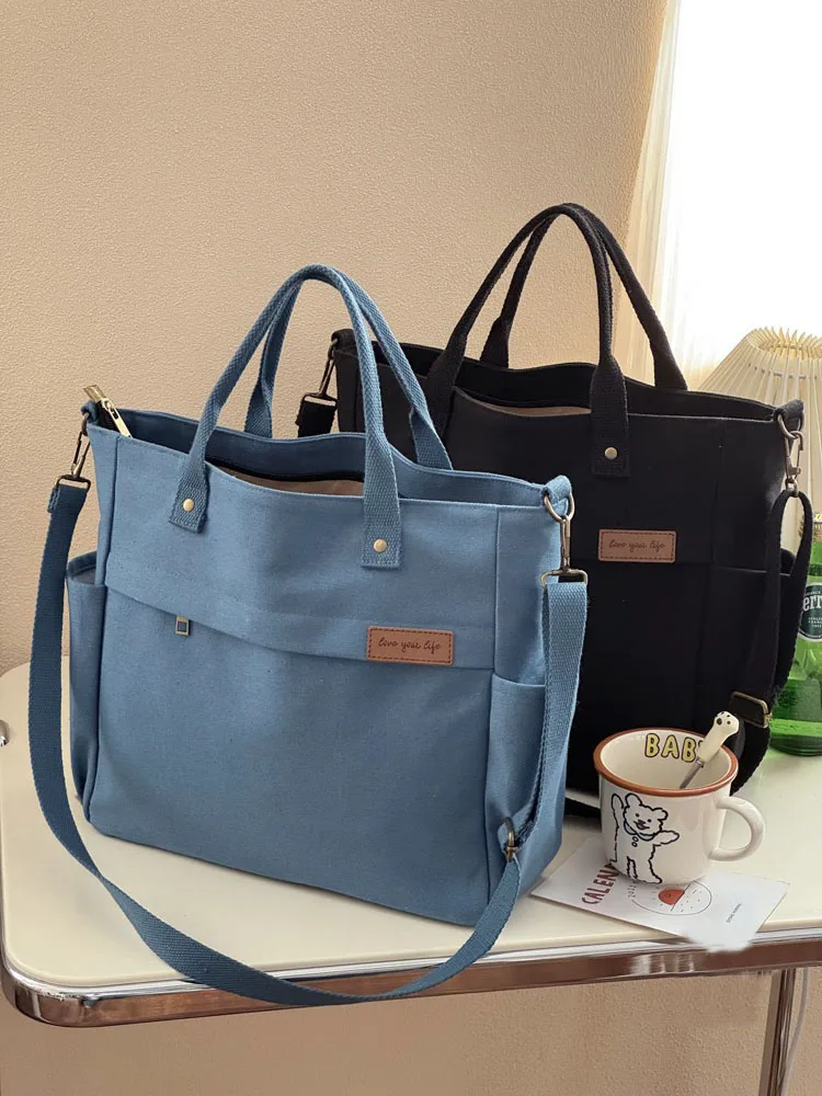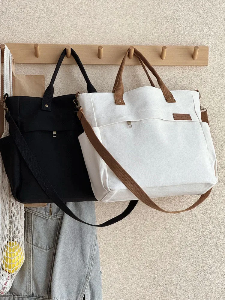 KYLETHOMASW - Cloth Handbag Thickened Canvas Shoulder Bag Simple Commuter Student Handheld Crossbody Tote Bags With Zipper