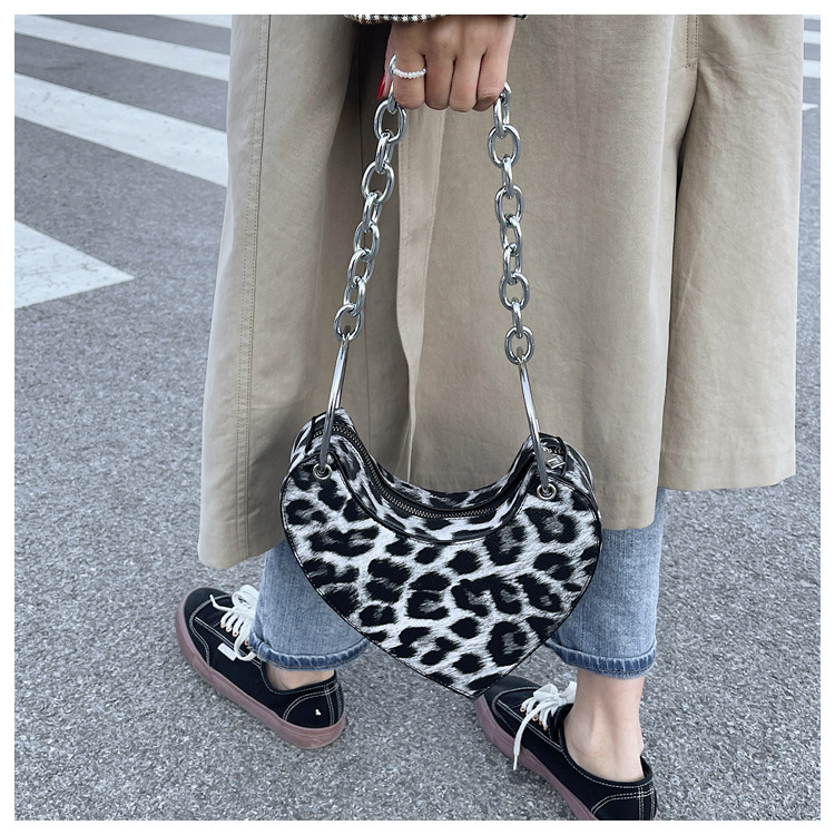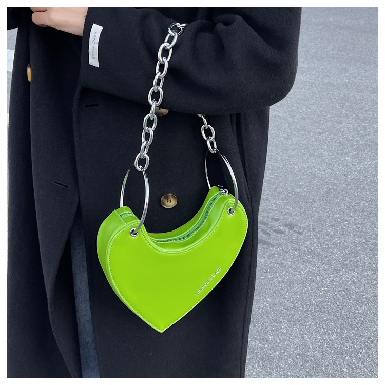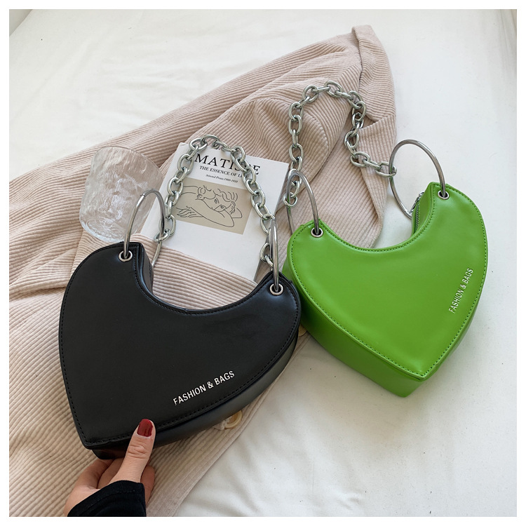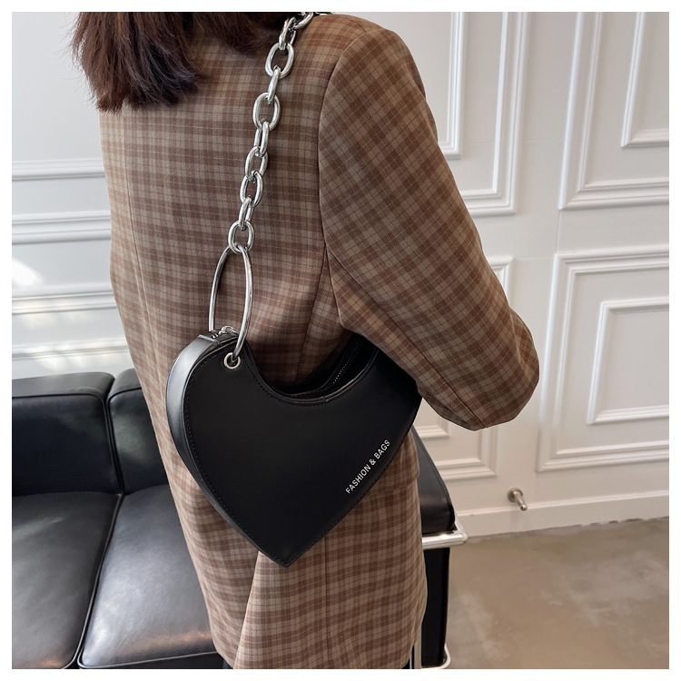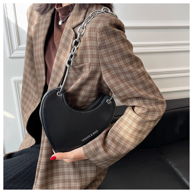 Kylethomasw Designer Thick Chain Handbags Women Luxury Ladies Heart Shaped Shoulder Bag Cute Female Clutch Purse Fashion Love Underarm Bag