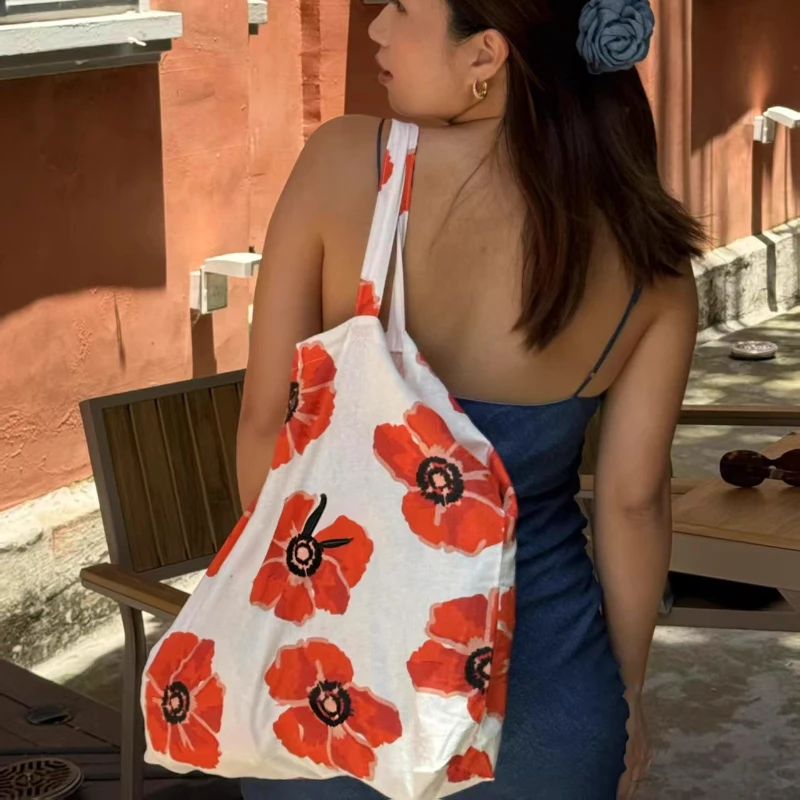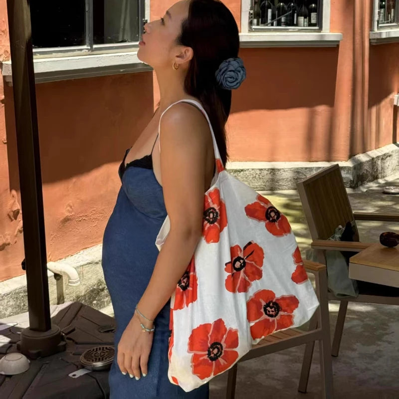 KYLETHOMASW - High-capacity Chic Floral Printing Women's Handbags Y2k Aesthetic Fashion Simple All Match Shoulder Bags Streetwear Underarm Bag