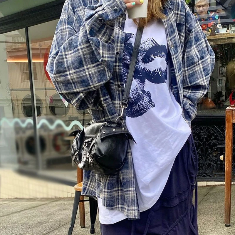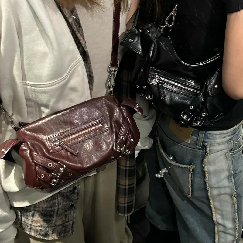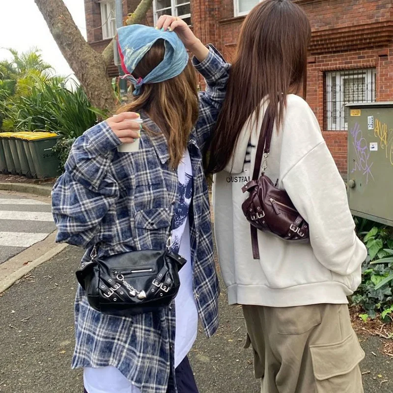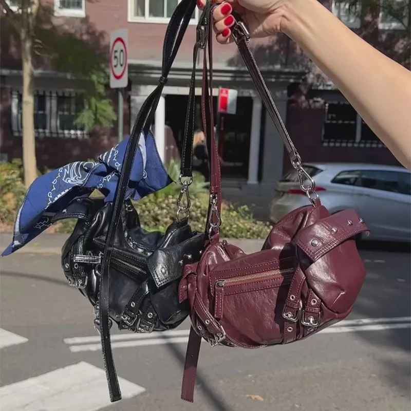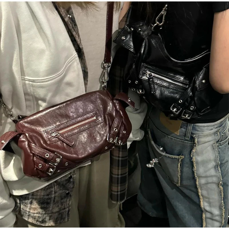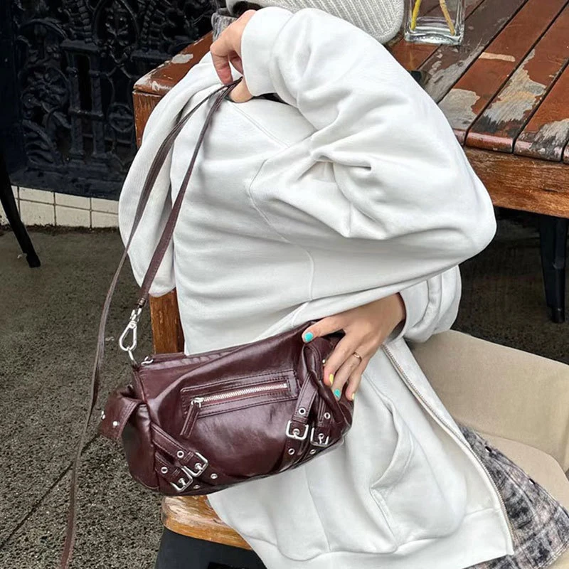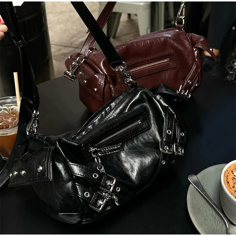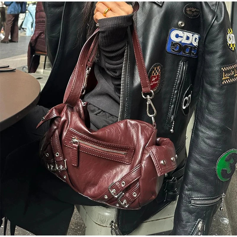 KYLETHOMASW - Korean Brand Women's Shoulder Bag Retro Rivet Underarm Bag 2025 Zipper Design Motorcycle Bag High Quality Large Capacity Handbag