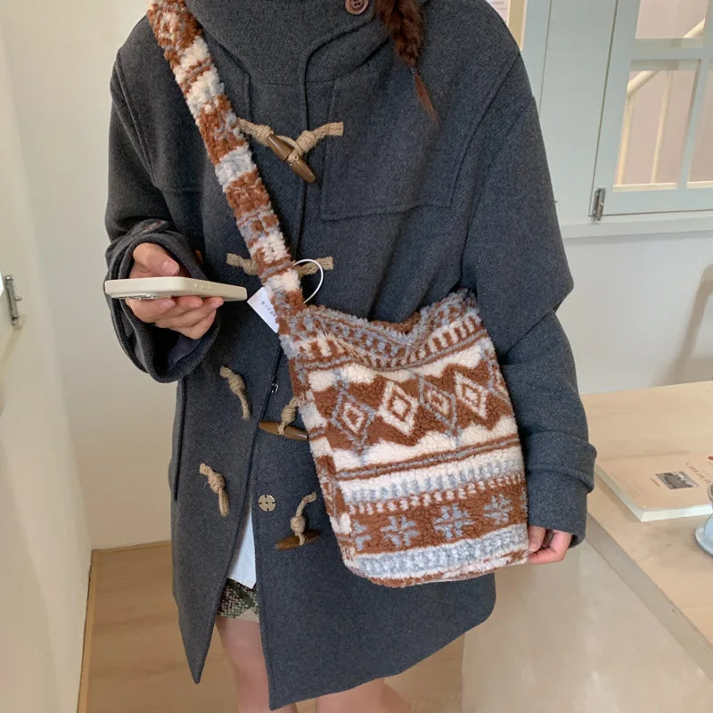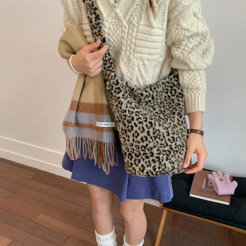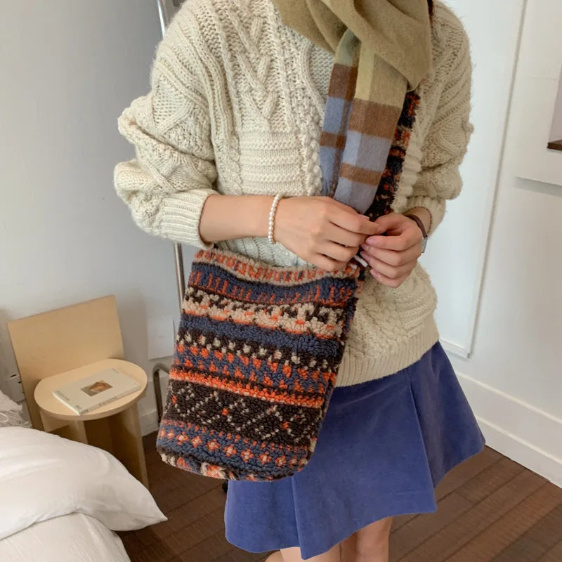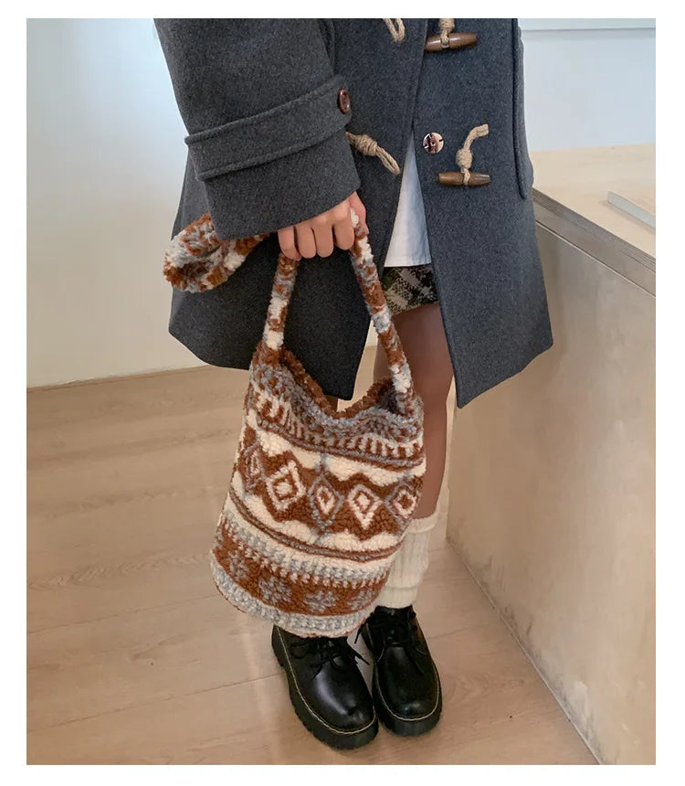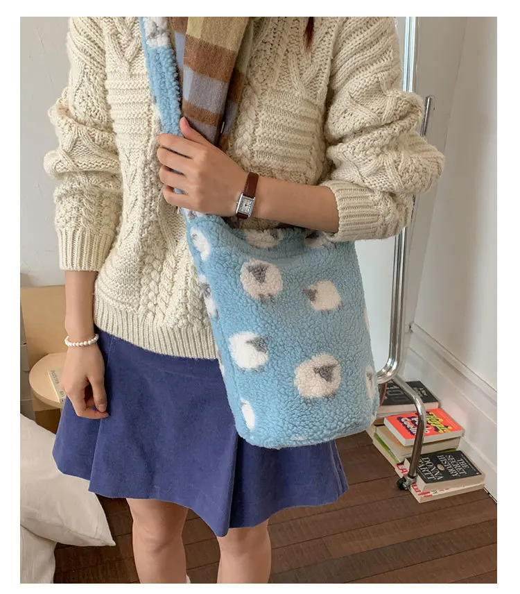 KYLETHOMASW - Lamb Wool Kawaii Cute Crossbody Bag Y2k Aesthetic All Match Knitted Bags for Women Harajuku Grunge Fluffy Shoulder Handbags