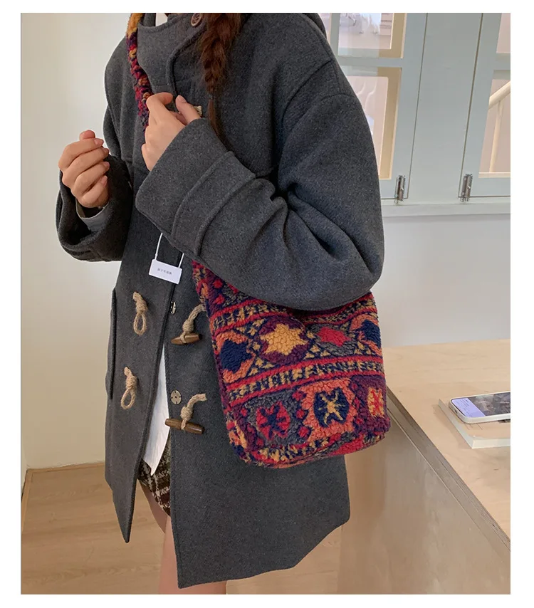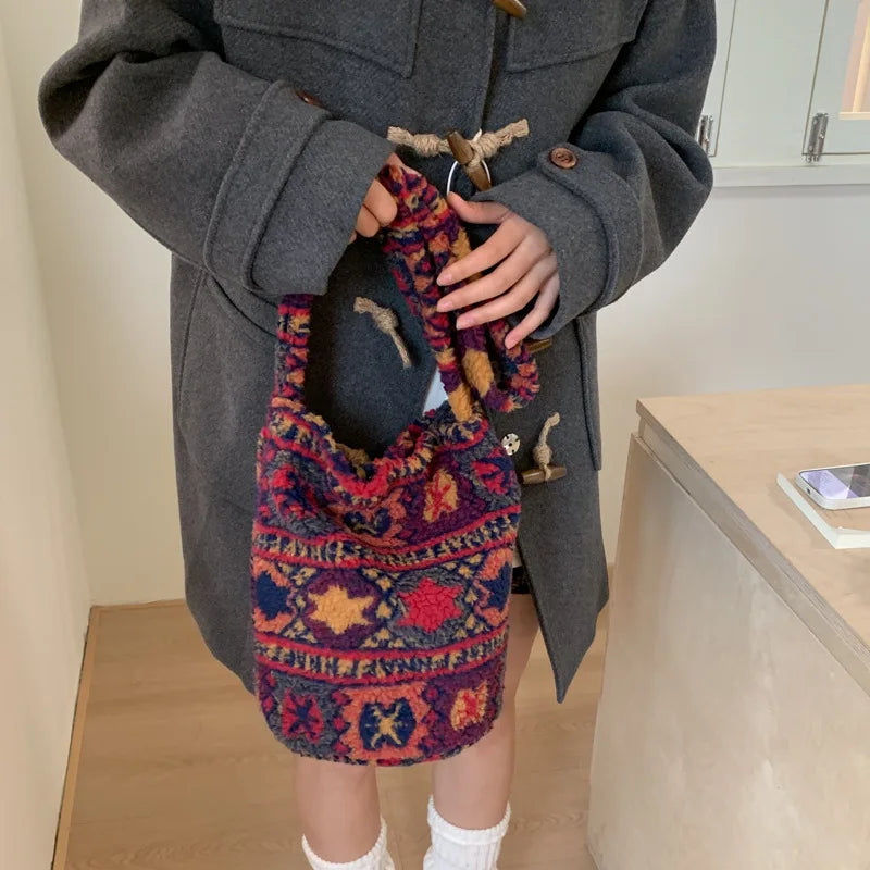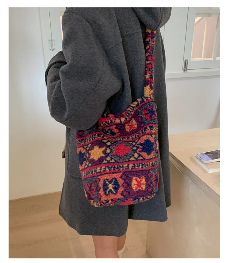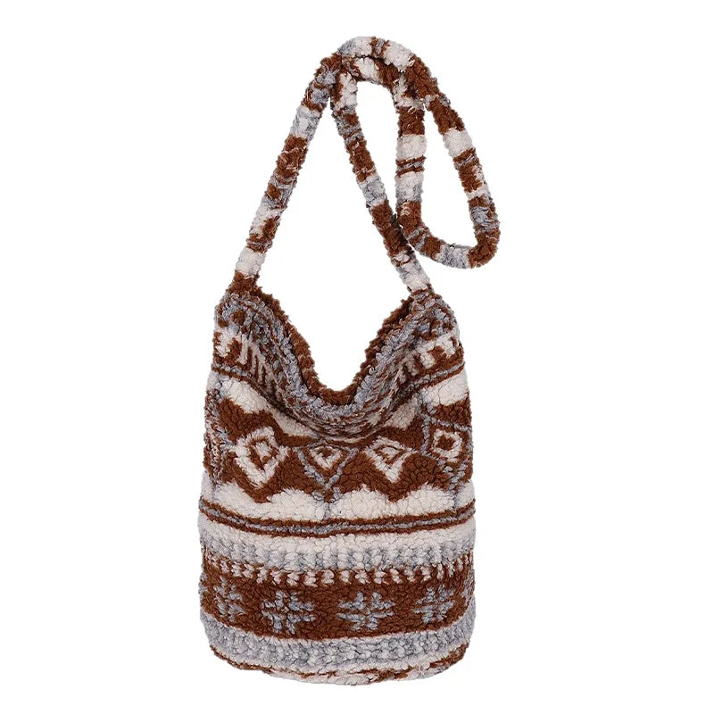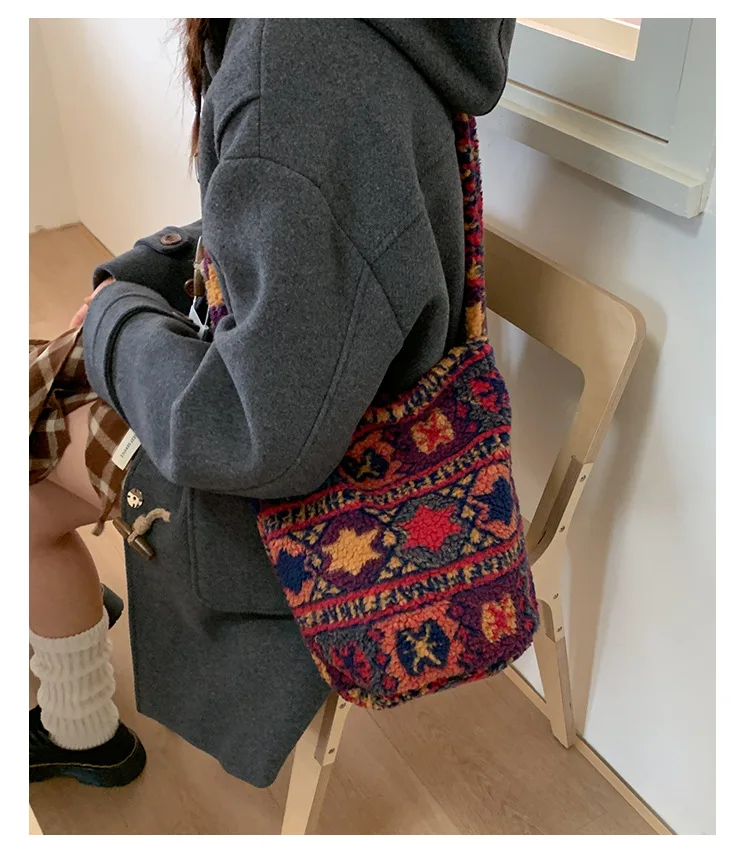 KYLETHOMASW - Lamb Wool Kawaii Cute Crossbody Bag Y2k Aesthetic All Match Knitted Bags for Women Harajuku Grunge Fluffy Shoulder Handbags
