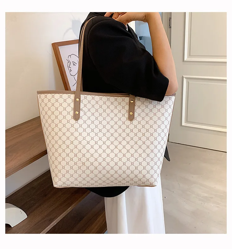 Kylethomasw Luxury Designer Big Tote Handbag for Women Trends Brand Designer Striped Shopper Shoulder Shopping Bag Large Capacity 2 Pcs/set