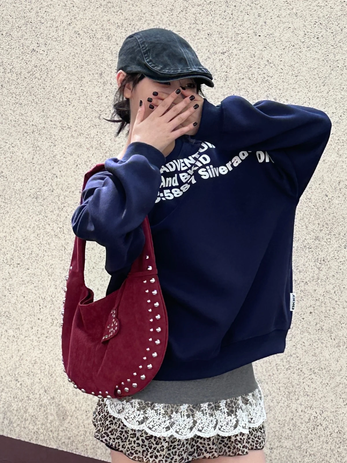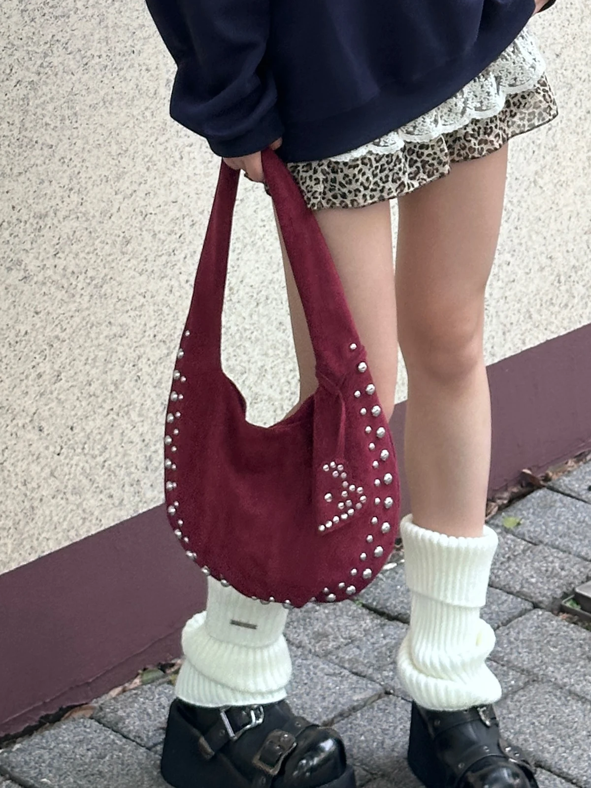 KYLETHOMASW - Women's Shoulder Bag European and American Style Rivet Handbag Suede Retro Motorcycle Soft Armpit Bag