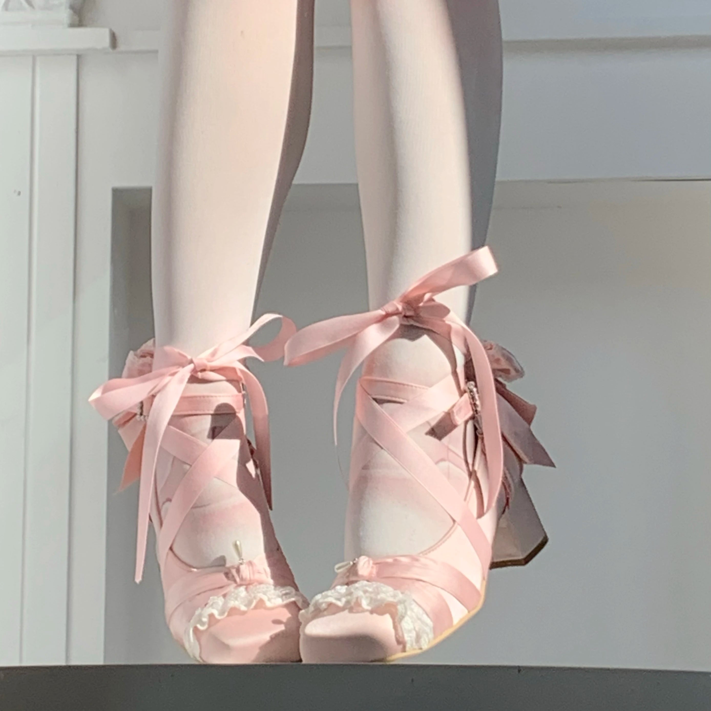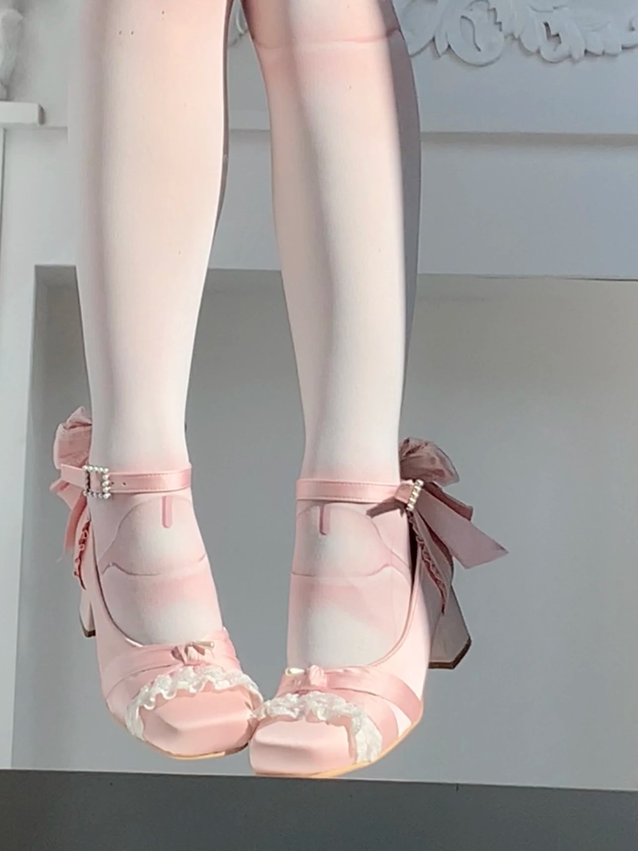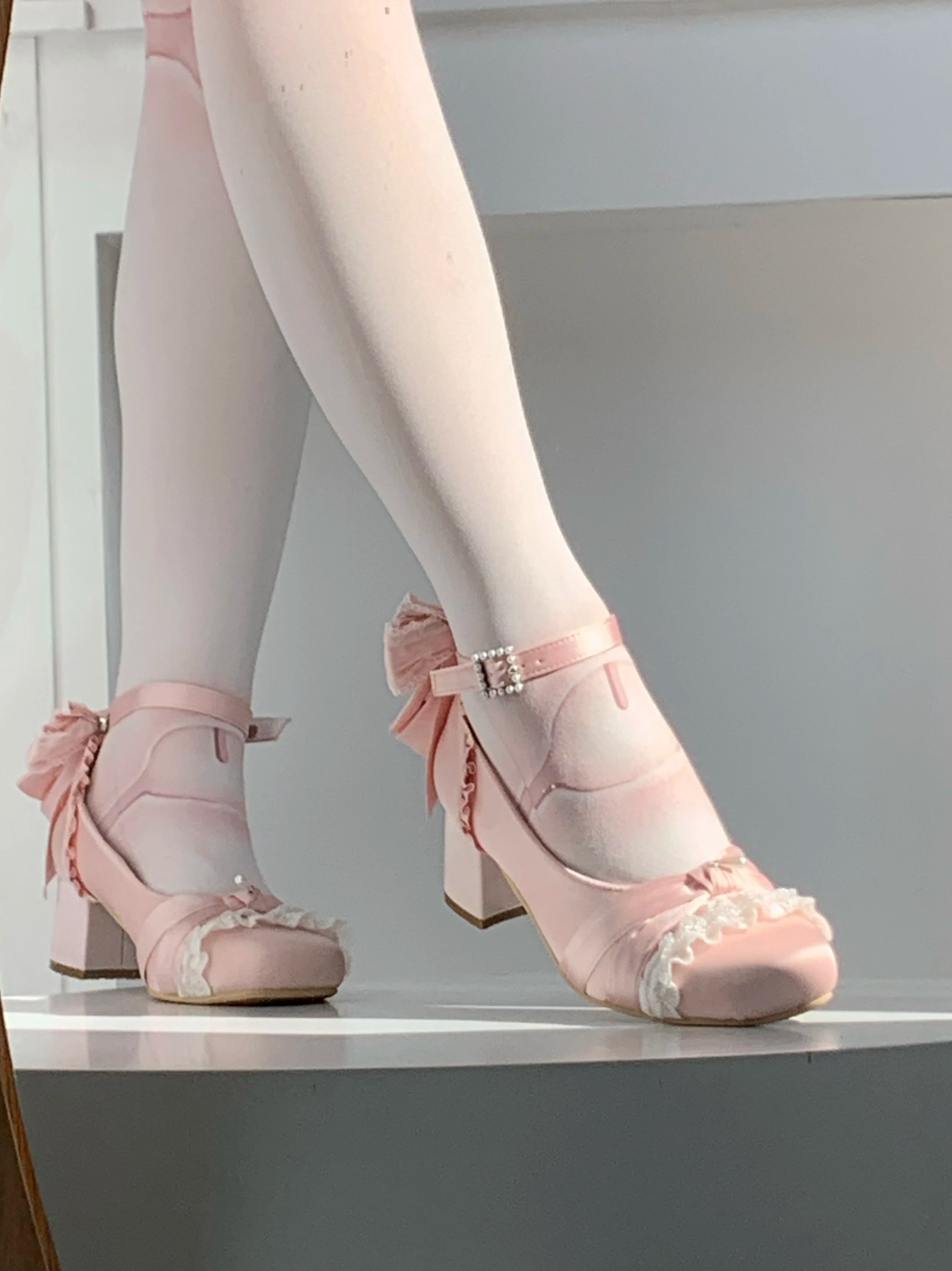 KYLETHOMASW - Pink Lolita Women's Shoes Ballet Thick Heel High Heels Mary Jane Shoes Satin Elegant Platform Waterproof Pumps Original