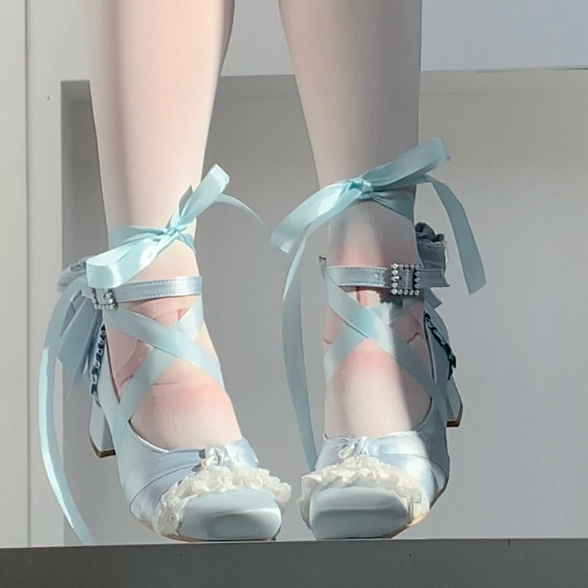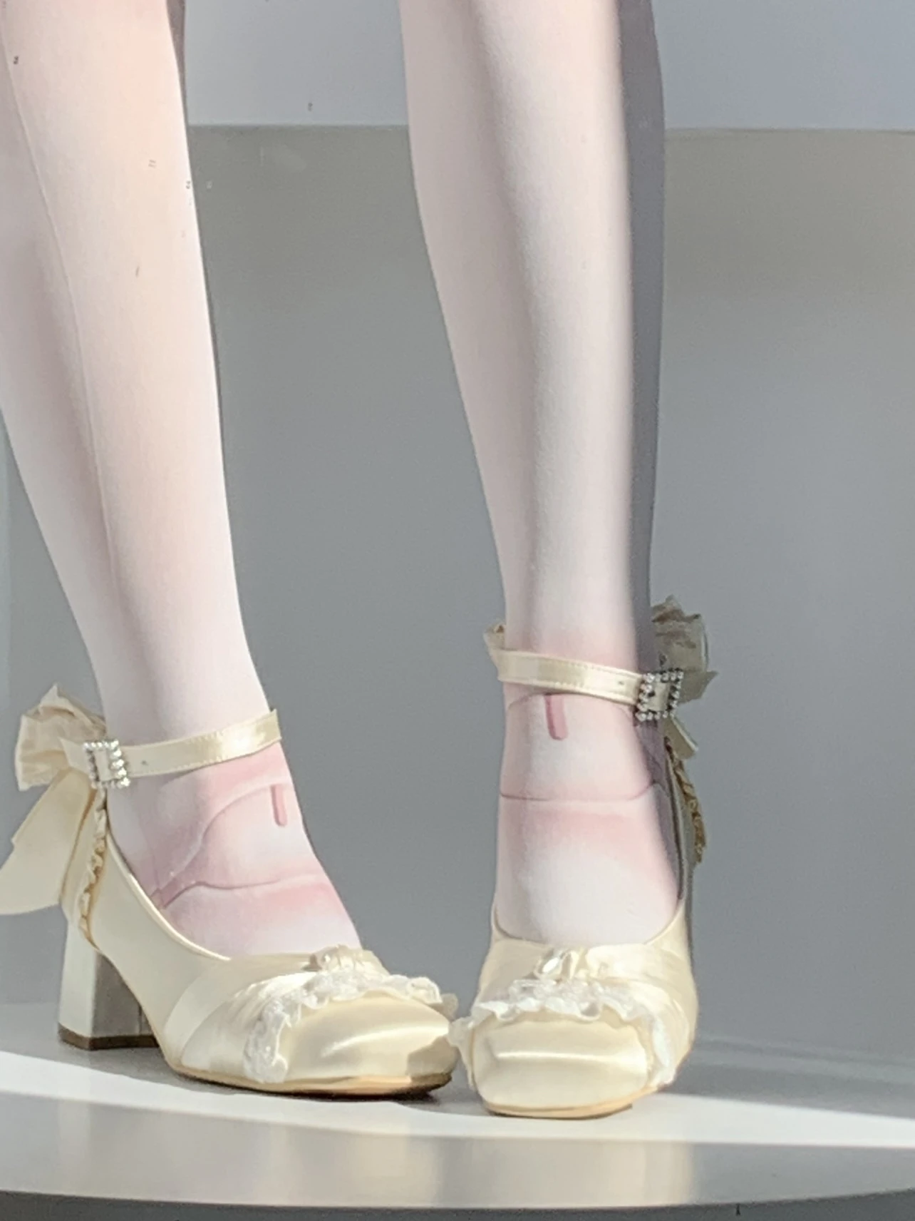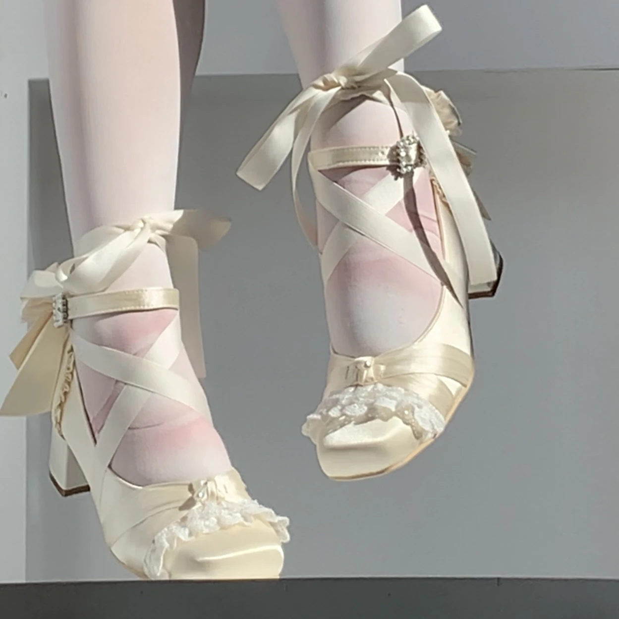 KYLETHOMASW - Pink Lolita Women's Shoes Ballet Thick Heel High Heels Mary Jane Shoes Satin Elegant Platform Waterproof Pumps Original