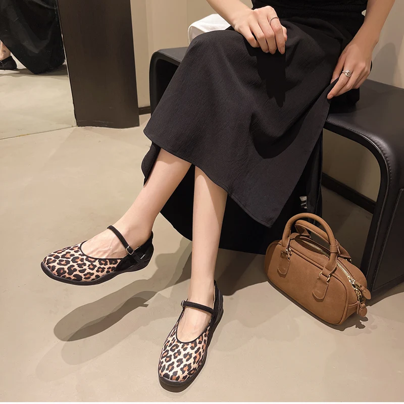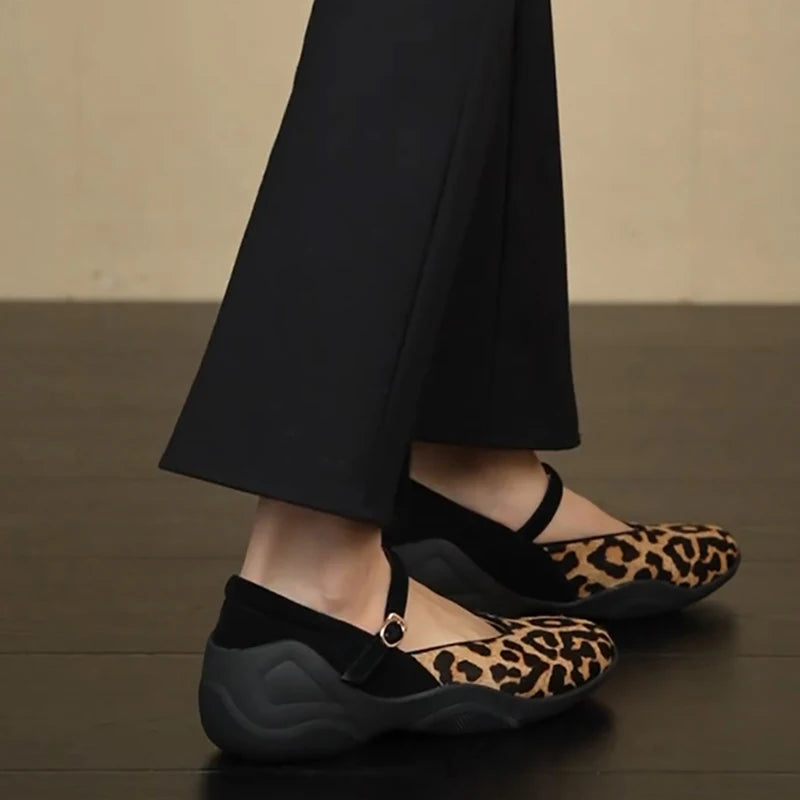 KYLETHOMASW - Spring Autumn Leopard Women's Internal Elevation Mary Jane Shoes Comfrot Shallow Shoes Ladies Casaul Sport Footwear