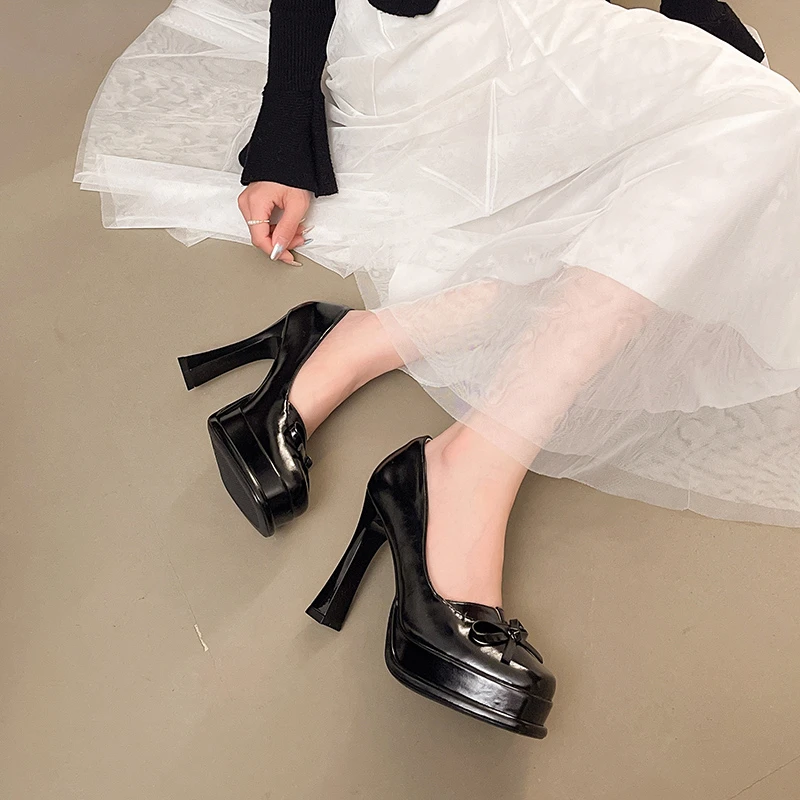 KYLETHOMASW - Spring Platform Thick Heel Women Mary Jane Shoes Concise Shallow Slip On Work Shoes Elegant Women's Stripper Party Dress Pumps