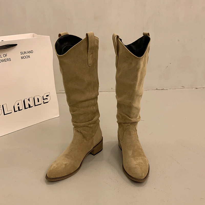 KYLETHOMASW - Autumn Winter Vintage Woman Knight Knee High Boots Shoes Ladies Concise Slip On Western Cowboy Botas