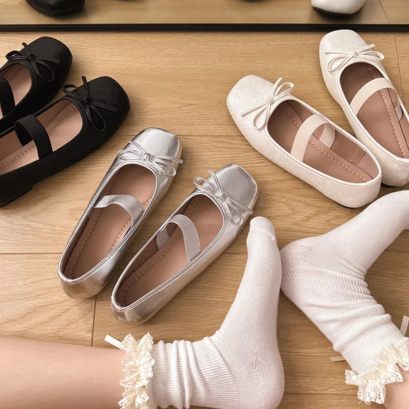 Kylethomasw Ballerina Women's Shoes Spring Autumn Comfort Non-slip Ladies Loafers Leather Flats Elegant Bowknot Mary Janes Shoes for Women