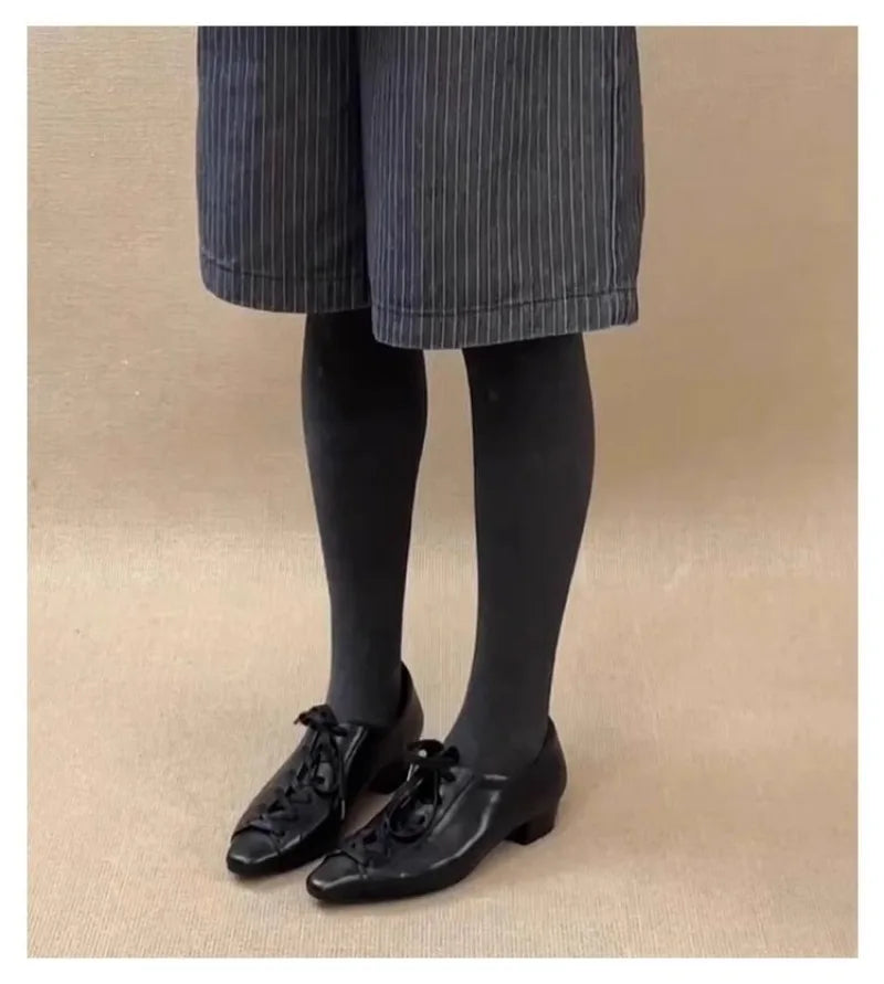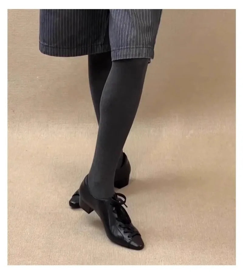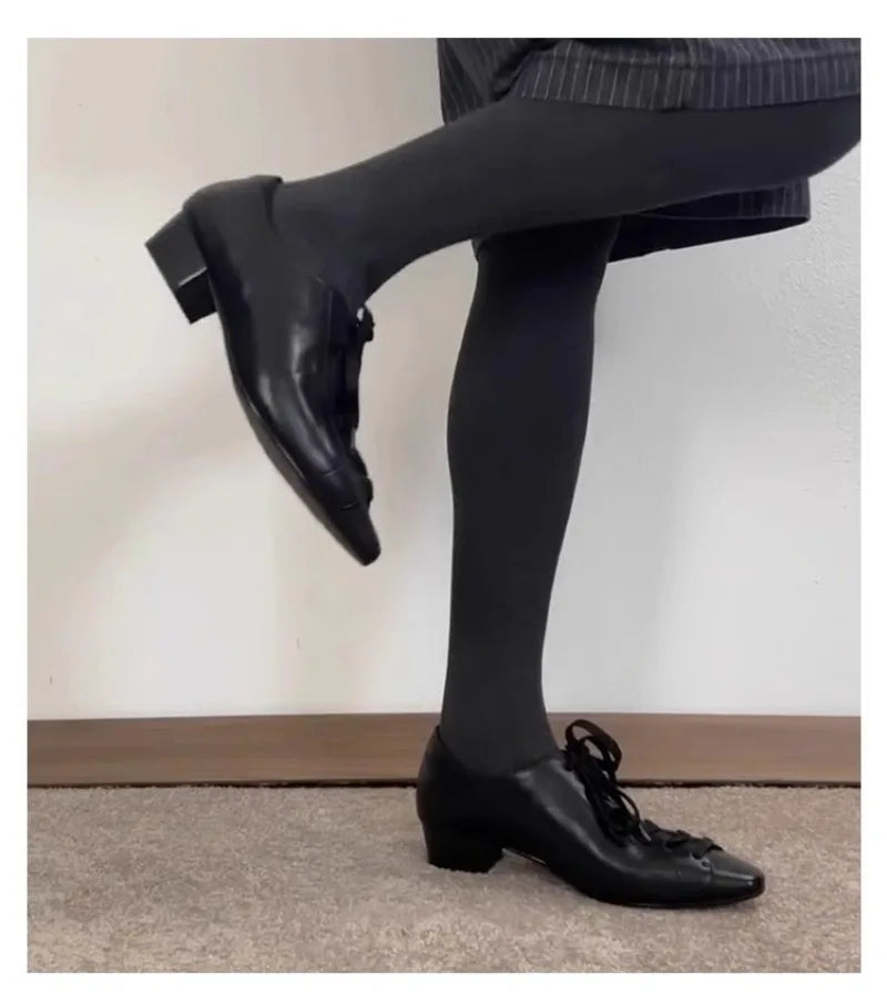 KYLETHOMASW - Black British Style Leather Shoes Women Retro Lace Up Mid Heel Pumps Comfortable Elegant Commuter Office Shoes Zapatos De Mujer