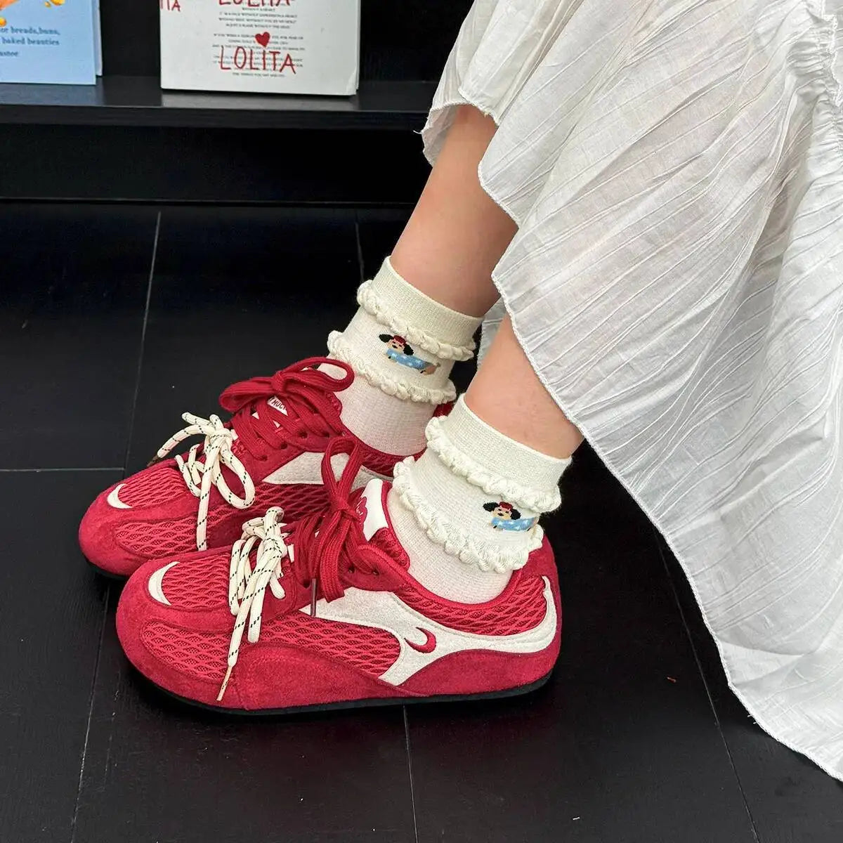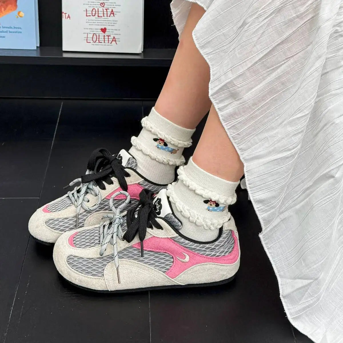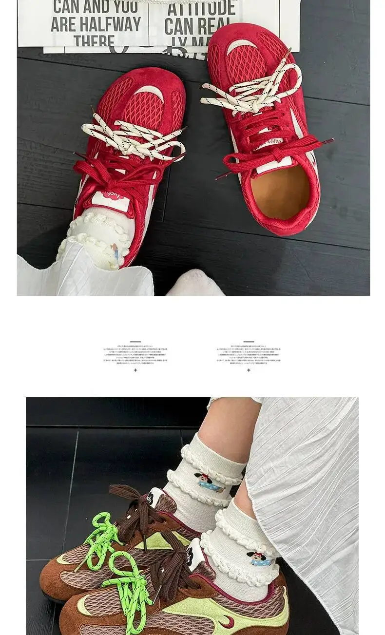 KYLETHOMASW - Casual Sneakers Women's Soft Soled Mesh Sneakers Lightweight Breathable Casual Shoes Ins Trendy Color Block Japanese Style