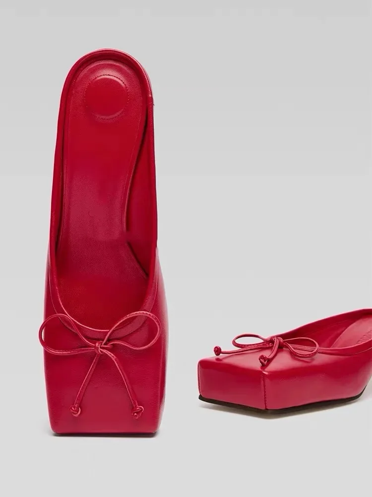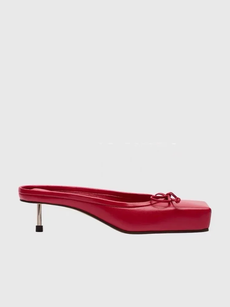 Kylethomasw Designer Mule Pumps Women Slippers Bow Square Toe Party Dress Shoes Women Red Elegant Sexy Luxury High Heels Sandals Women