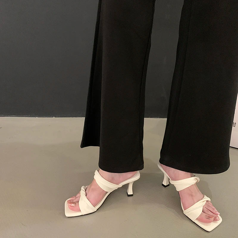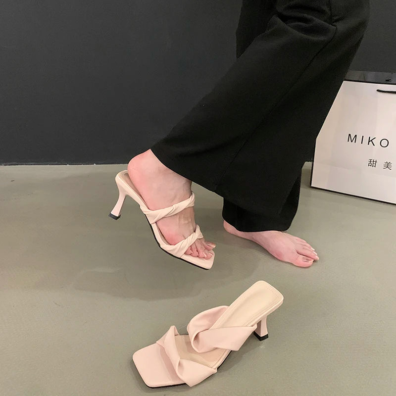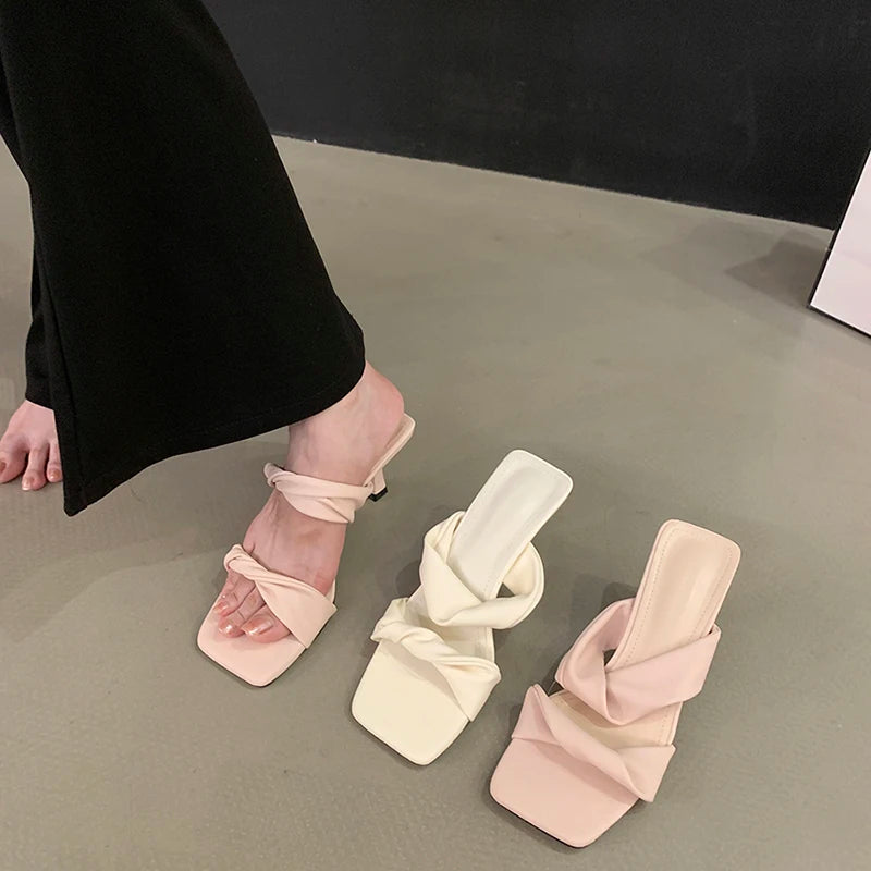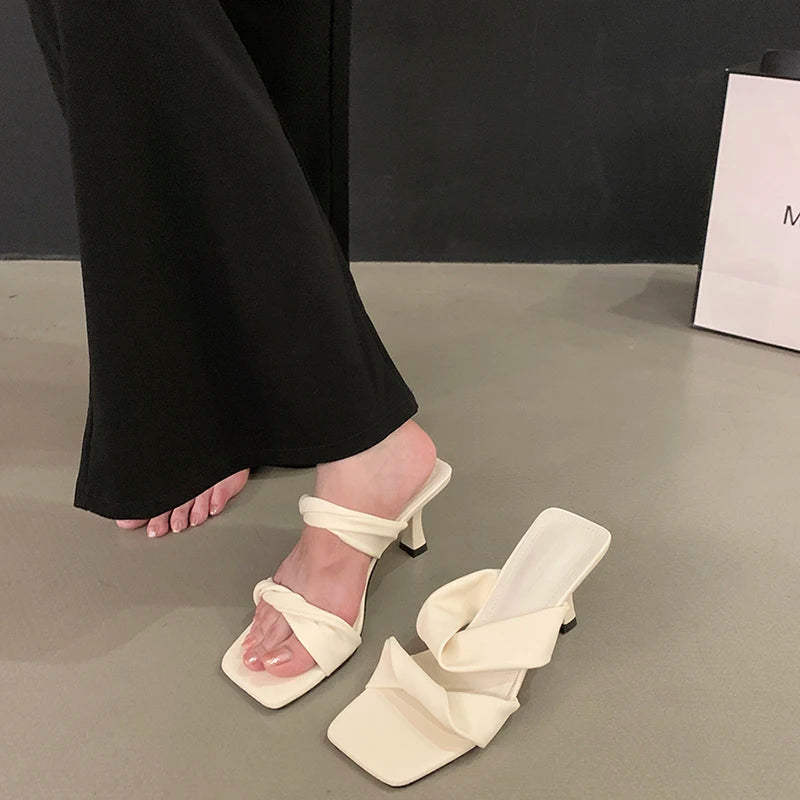 KYLETHOMASW - Designer Summer Women Open Toe Slippers Fashion Comfort High Heel Party Dress Slides Shoes