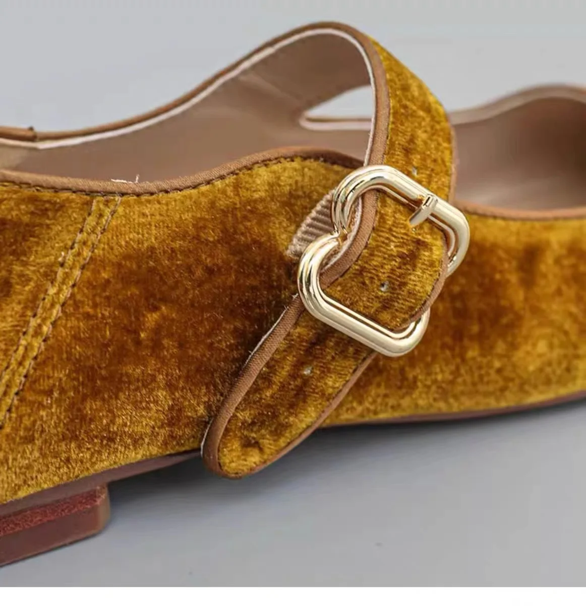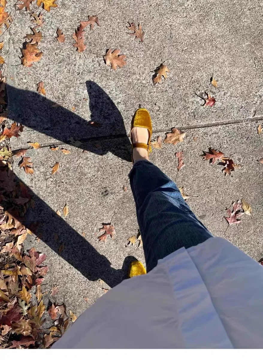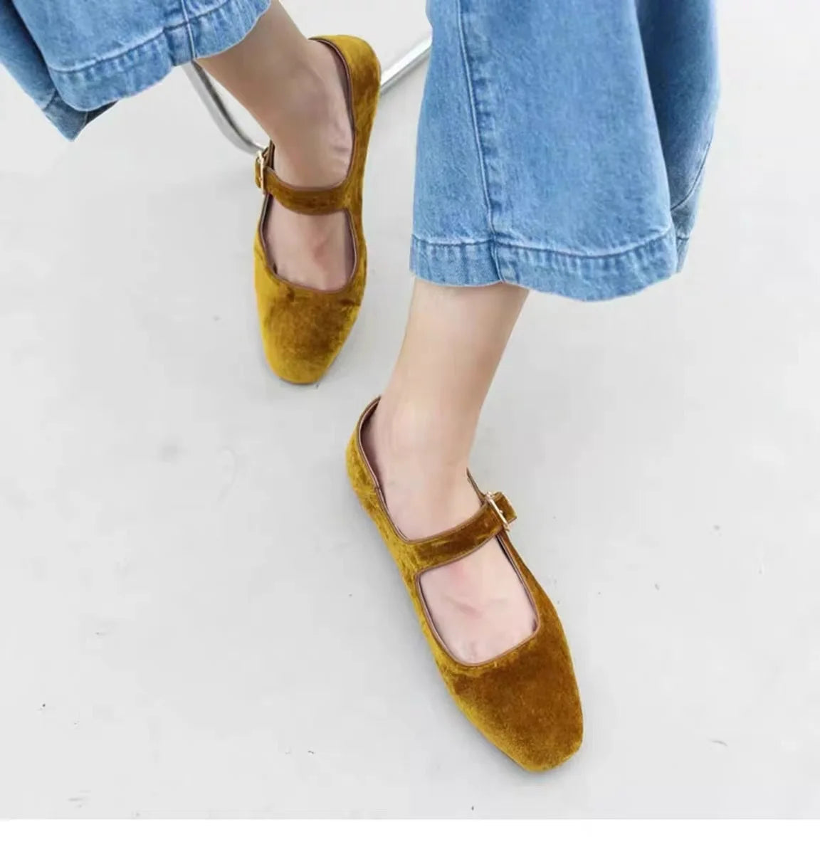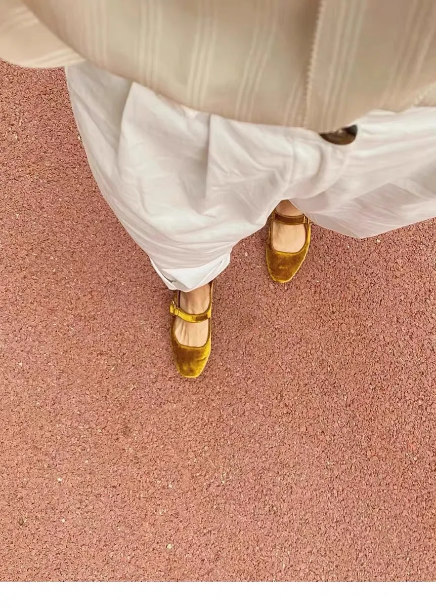 KYLETHOMASW - Designer Women Velvet Mary Janes Belt Strap Shoes Ladies Square Toe Flats Ballerina Dress Barefoot Loafers Brides Ballets Femmes